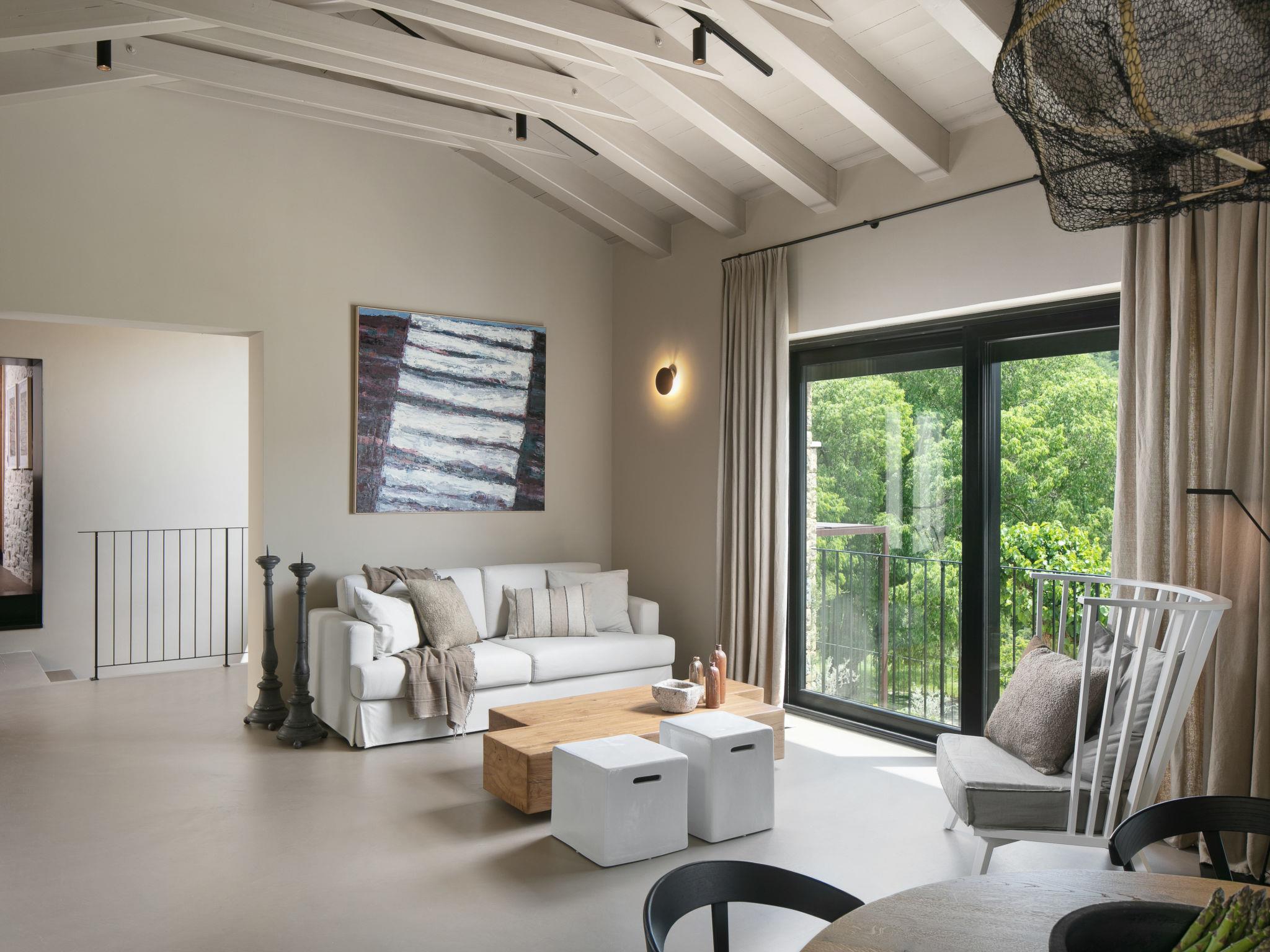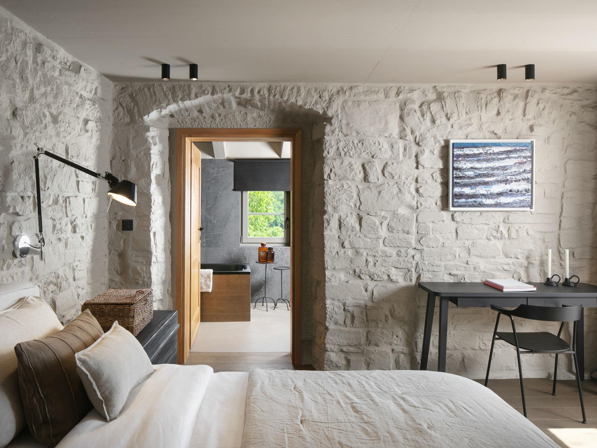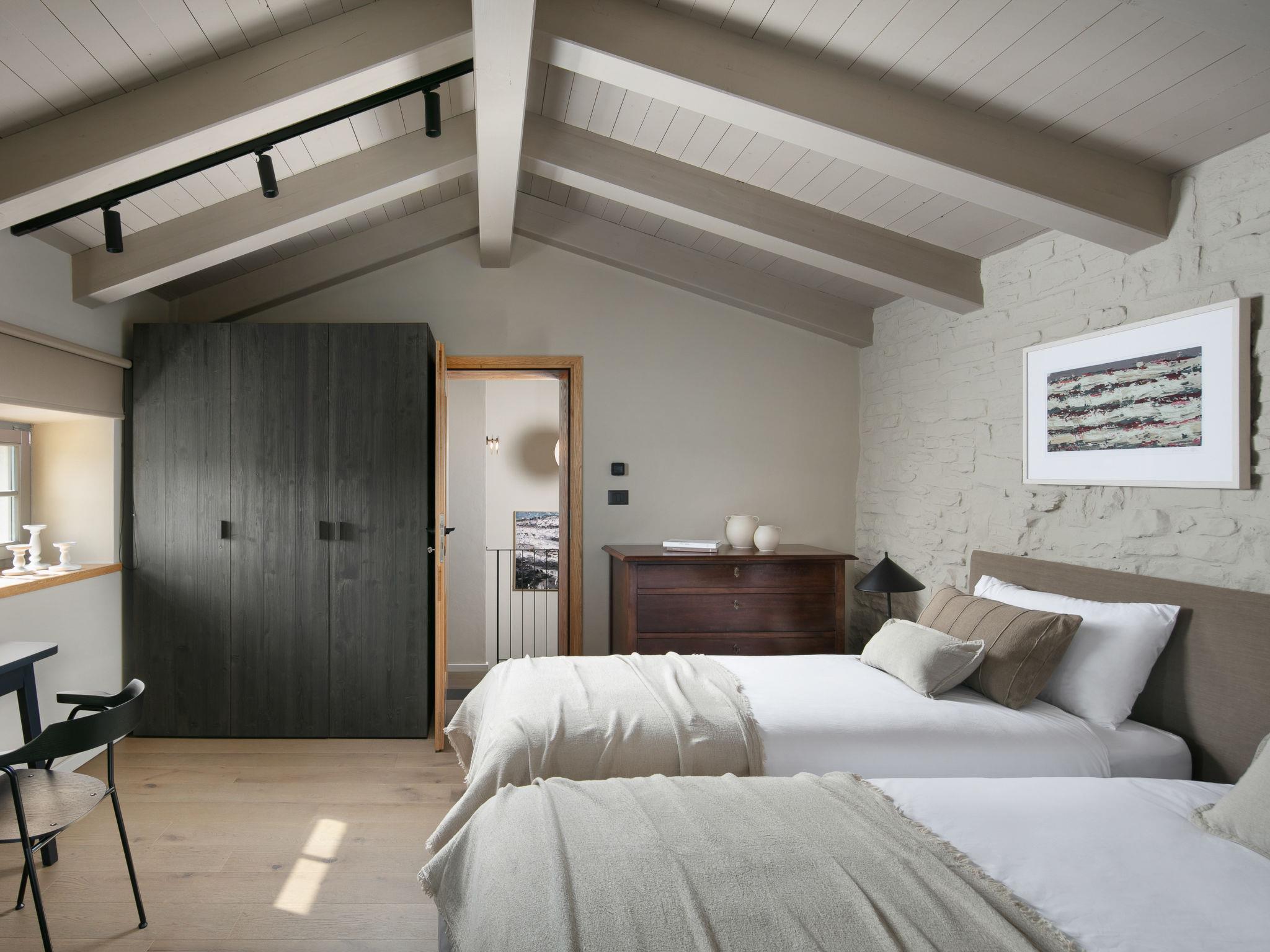 5-room villa 270 m2 on 3 levels. Living/dining room with satellite TV. Exit to the terrace, to the swimming pool. 1 room with 1 french bed (180 cm, length 200 cm), bath/shower/WC and satellite TV. Exit to the balcony. Open kitchen (oven, dishwasher, 6 induction hot plates, toaster, kettle, microwave, freezer, electric coffee machine). Sep. WC. On the lower ground floor: living room with satellite TV. Exit to the terrace. 1 room with 1 french bed (180 cm, length 200 cm), shower/WC, double hand-basin and satellite TV. Exit to the terrace. Sep. WC. Upper floor: 1 room with 2 beds (90 cm, length 200 cm), satellite TV. Shower/WC. Balcony 4 m2, terrace 10 m2. Terrace furniture, deck chairs. View of the countryside. Facilities: safe, children's high chair, baby cot, hair dryer. Internet (WiFi, free). Please note: non-smoking house.