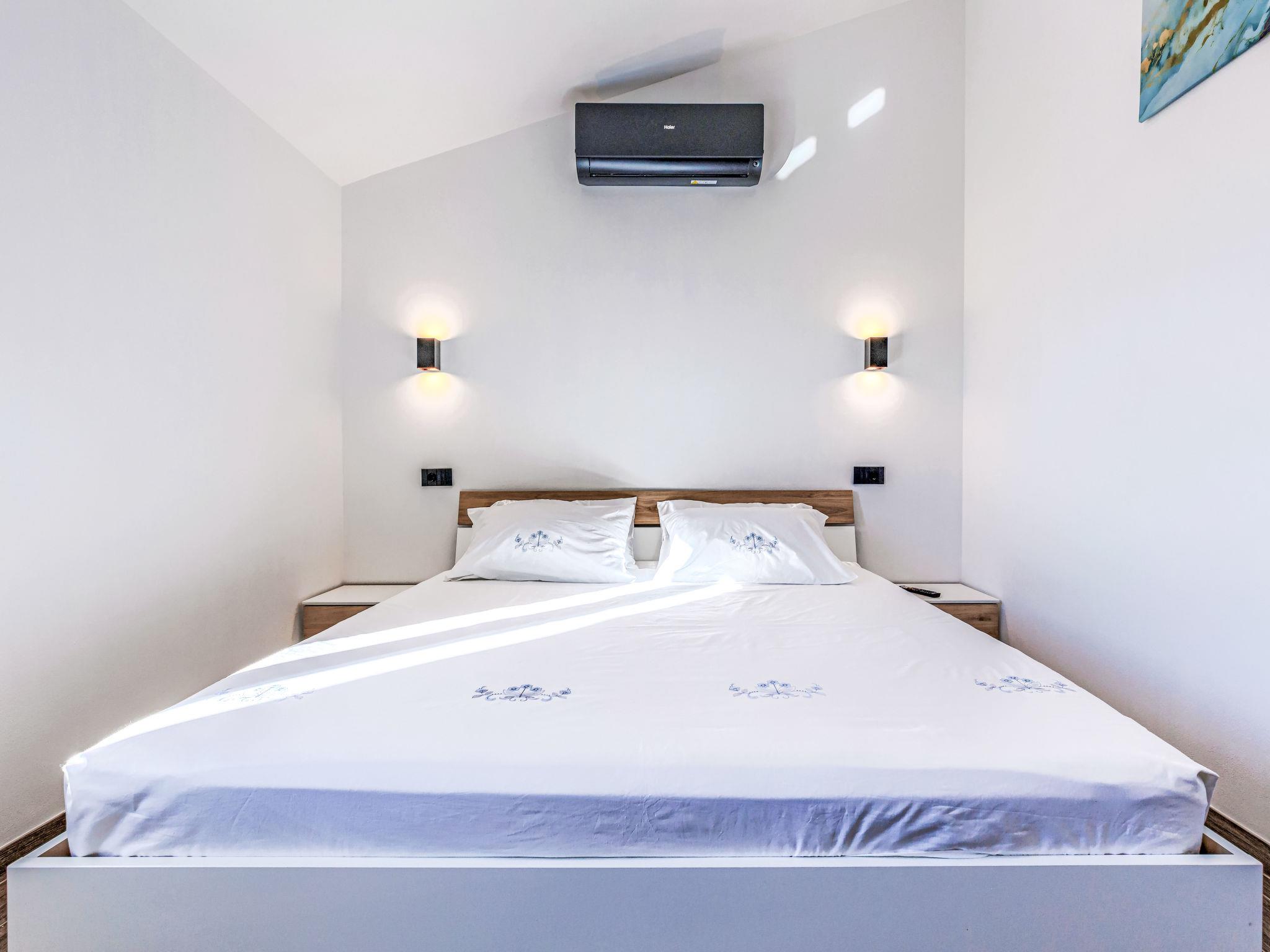 4-room villa 100 m2 on 2 levels. Modern and tasteful furnishings: living/dining room with satellite TV and air conditioning. Exit to the swimming pool. Open kitchen (oven, dishwasher, 4 induction hot plates, toaster, kettle, microwave, freezer, electric coffee machine). Shower/WC. Upper floor: 1 room with 1 french bed (140 cm, length 200 cm), satellite TV and air conditioning. Exit to the terrace. 1 room with 1 french bed (180 cm, length 200 cm), satellite TV and air conditioning. 1 children's room with 1 x 2 bunk beds (90 cm, length 200 cm). Bath/WC with corner bath. Forced-air heating. Terrace 10 m2, roofed. Terrace furniture, deck chairs. View of the swimming pool and the countryside. Facilities: Internet (WiFi, free).