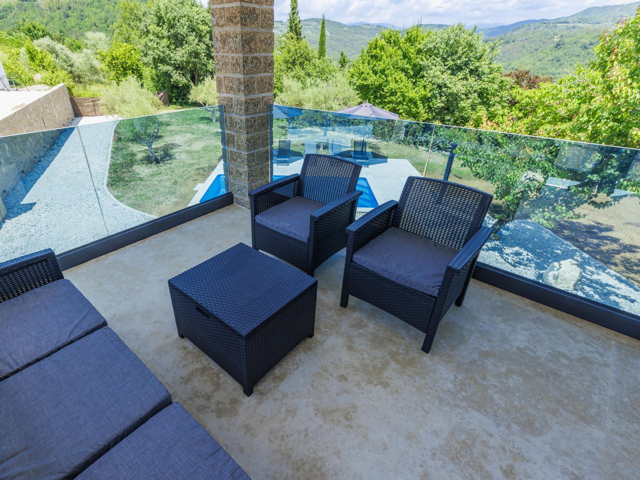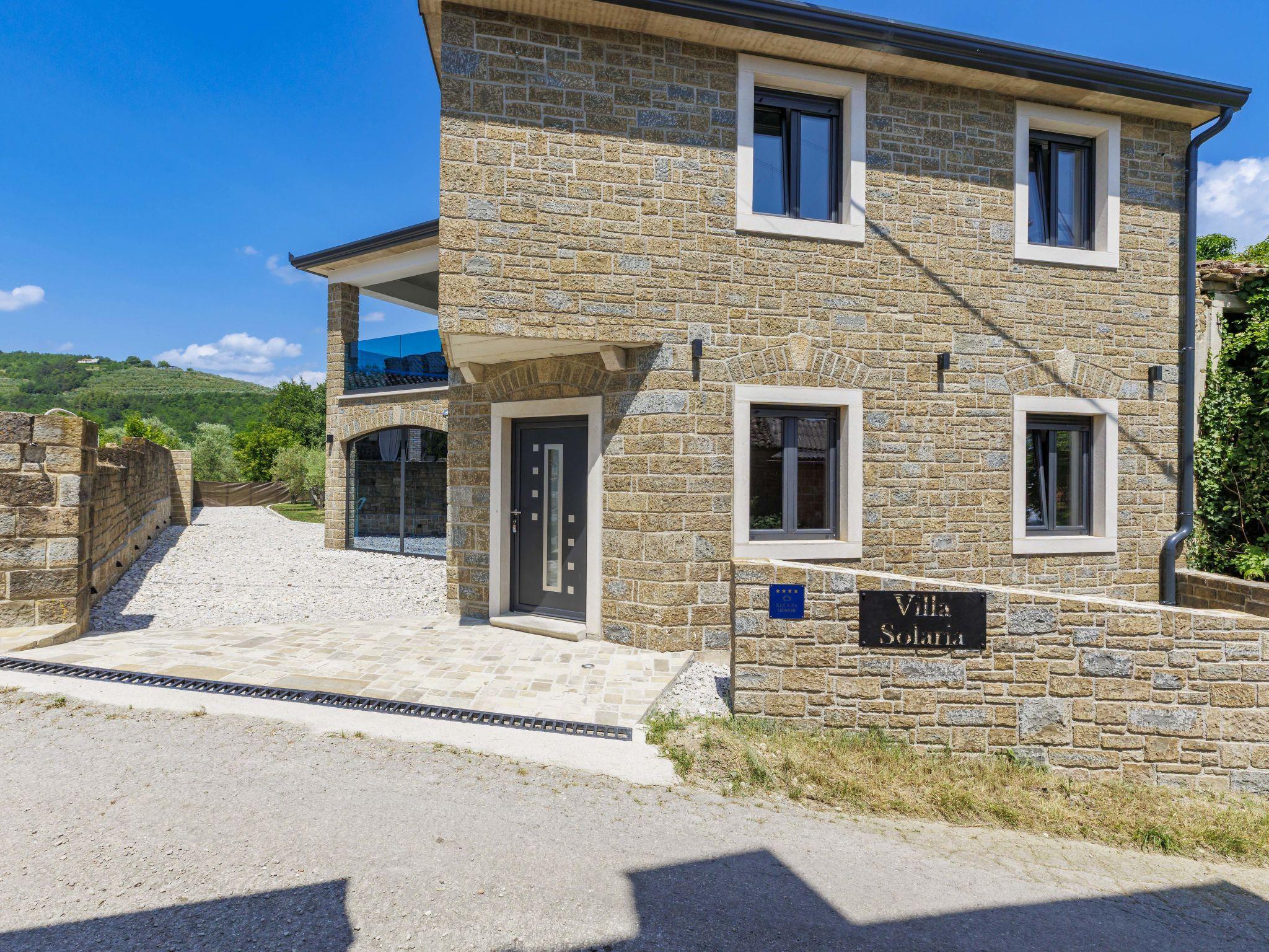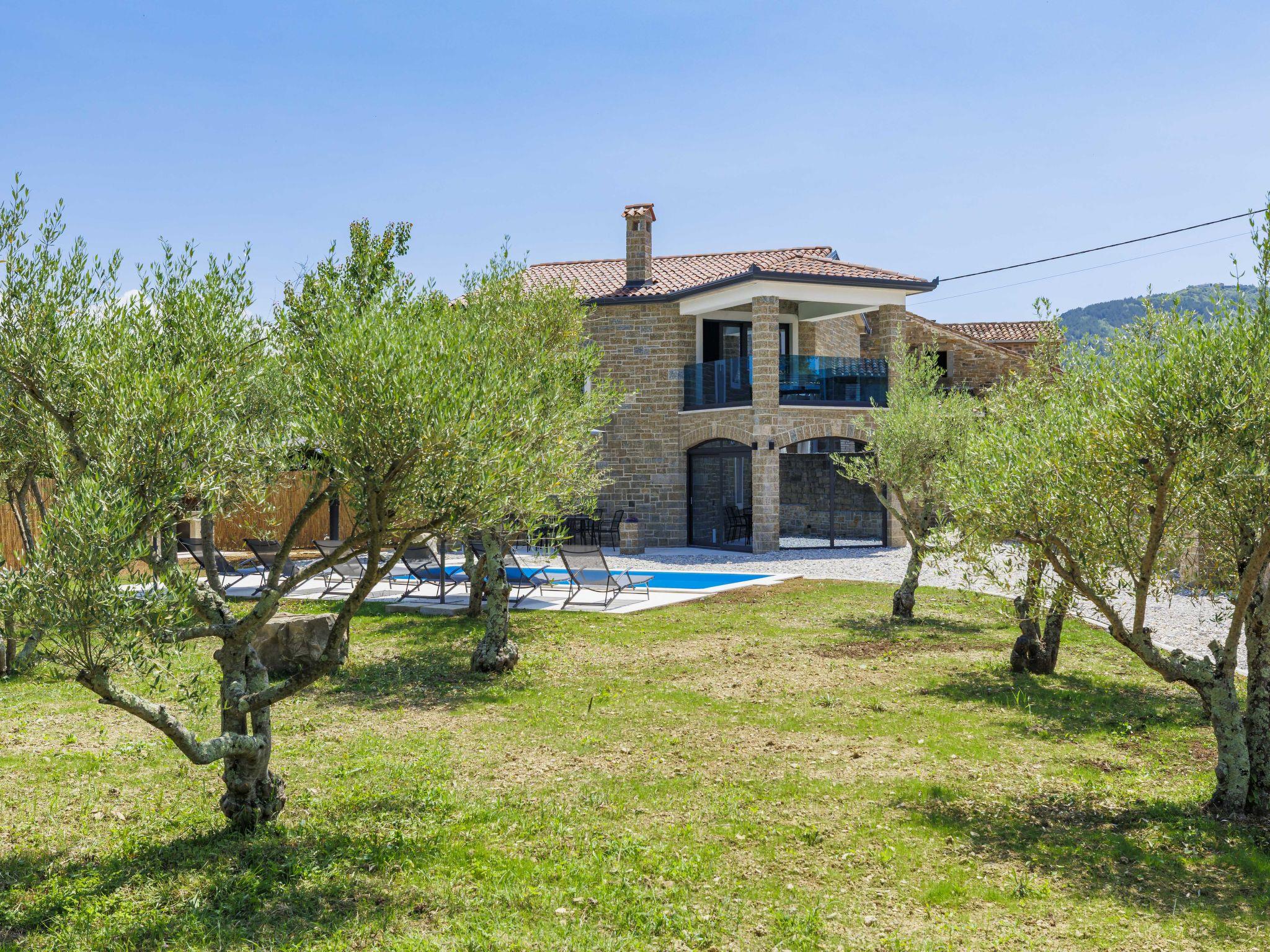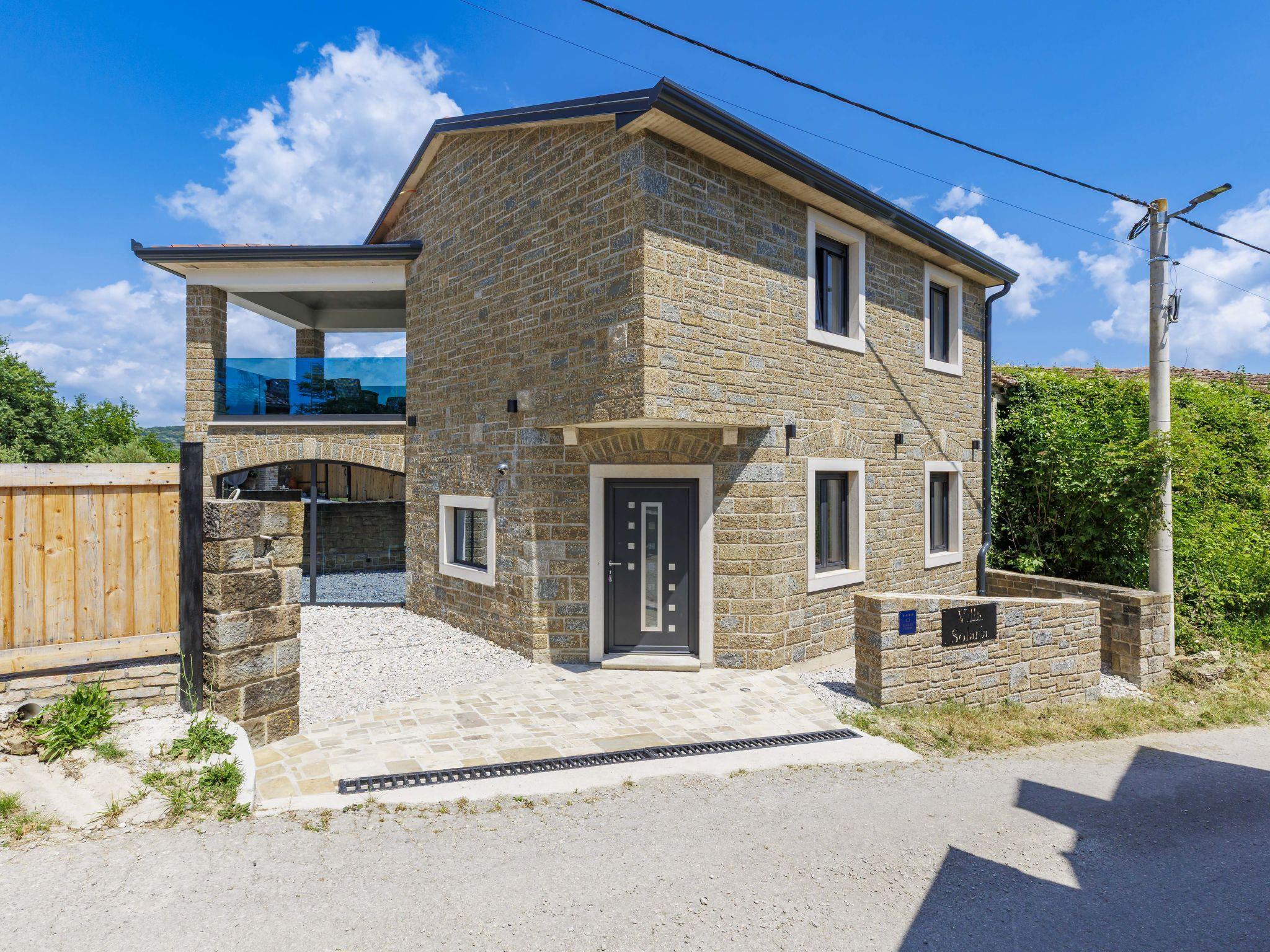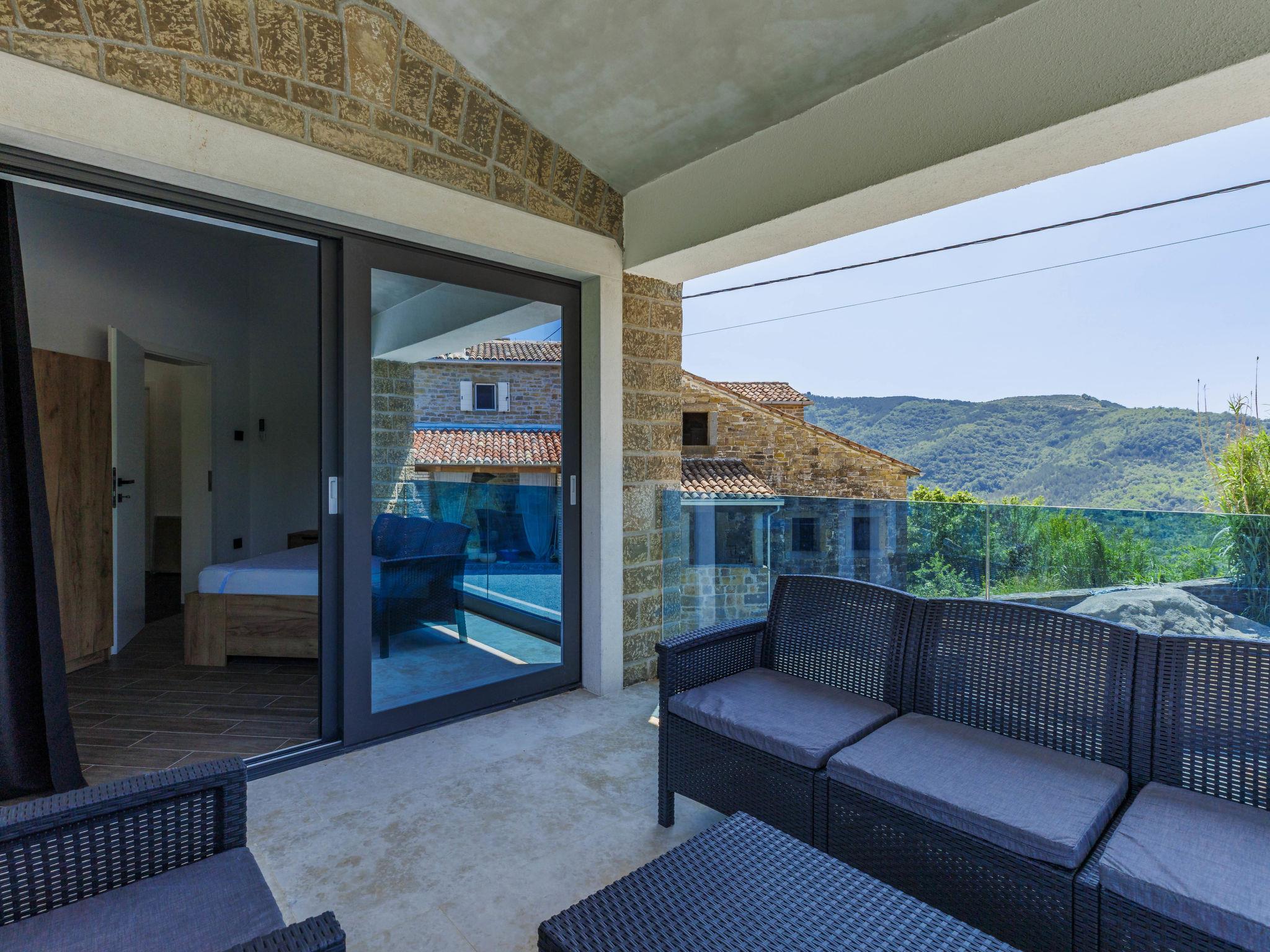 Beautiful, luxurious villa "Solaria", 2 storeys in 2024. In the hamlet Krti 8 km from the centre of Motovun, 15 km from the centre of Buzet, in a quiet position, 30 km from the sea. Private: property 450 m2 (fenced), swimming pool angular (3 x 6 m, depth 140 cm, seasonal availability: 15.Apr. - 01.Nov.) with internal staircase. Outdoor shower, terrace, garden furniture, barbecue. In the house: internet access, washing machine, tumble dryer. Parking (for 2 cars) at the house on the premises. Shop 7 km, supermarket 10 km, restaurant 7 km, bus stop 15 km, 5 km. Walking paths from the house 50 m. Nearby attractions: Winery 8 km. Please note: airfield 45 km from the property.