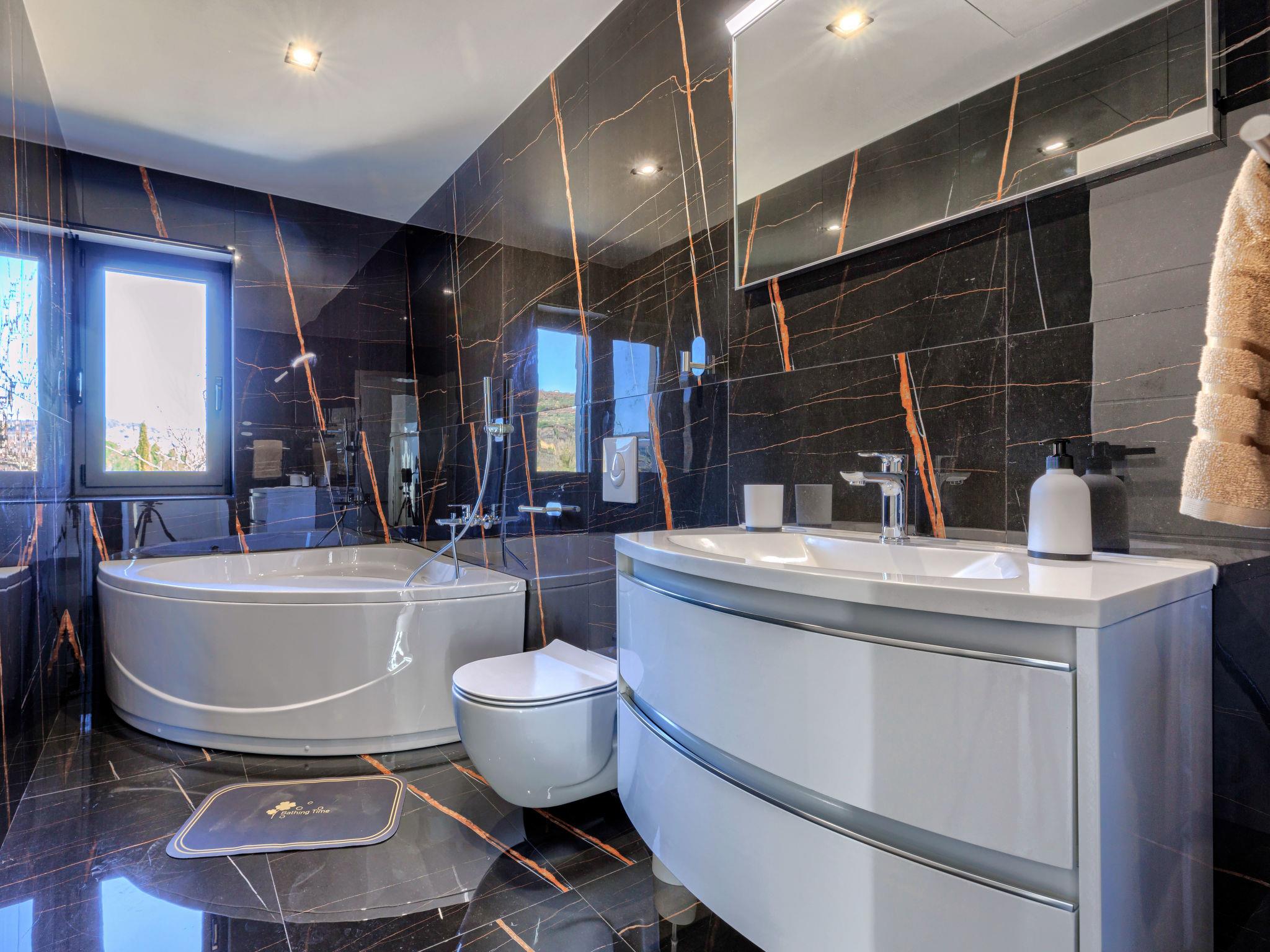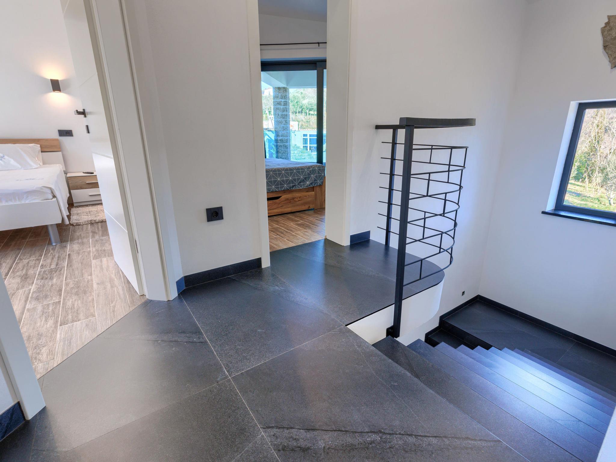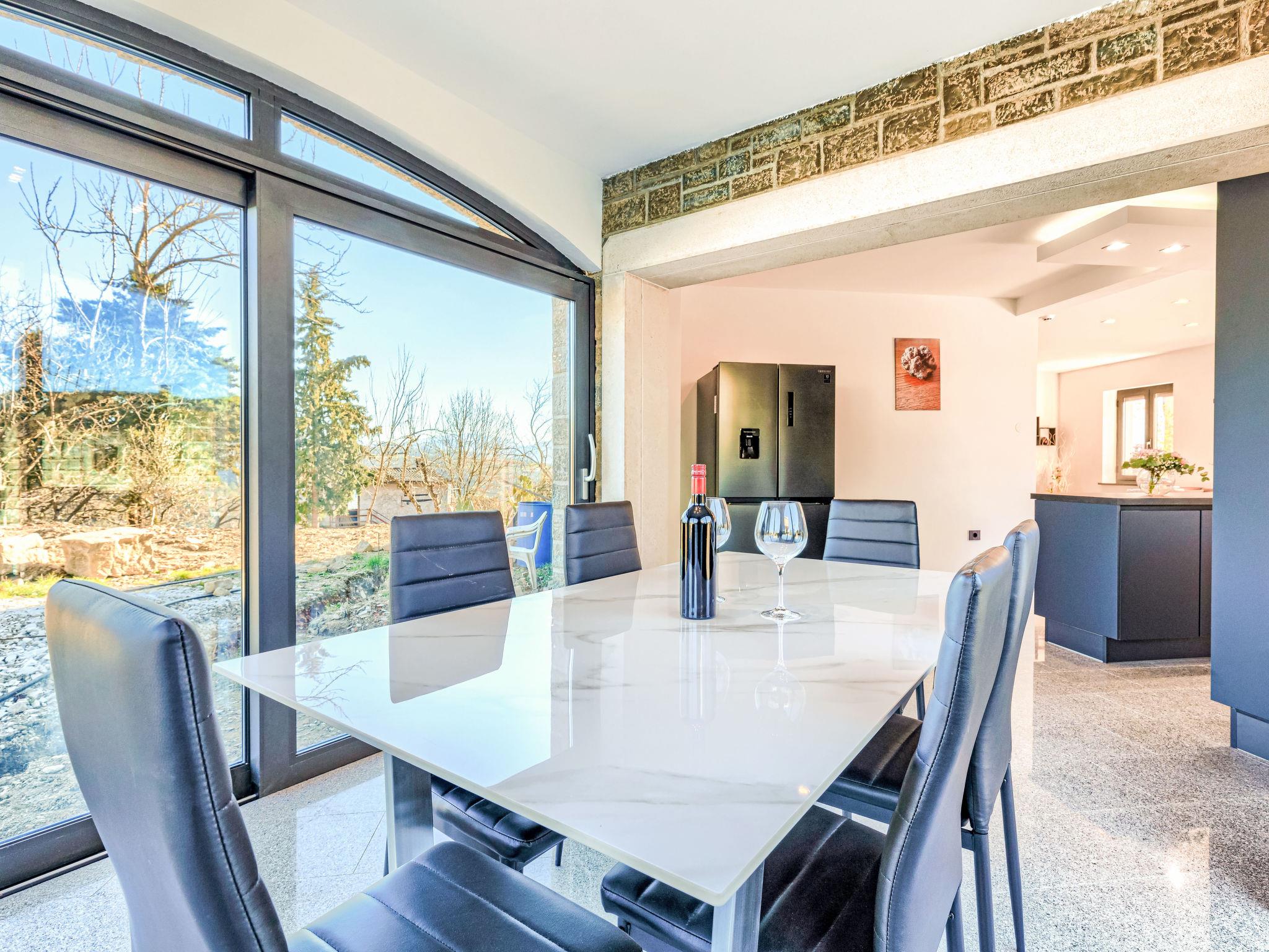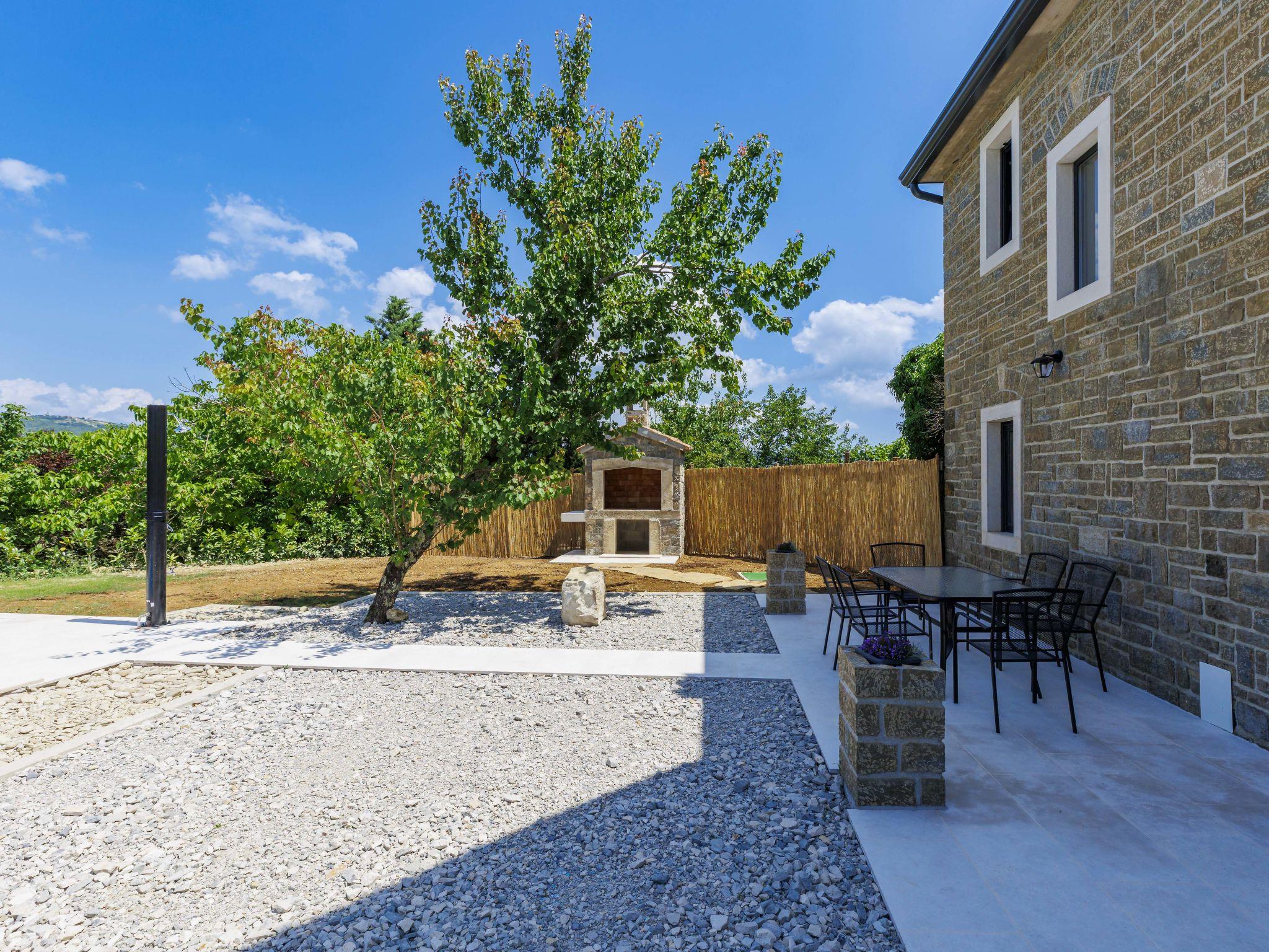 Beautiful, luxurious villa "Solaria", 2 storeys in 2024. In the hamlet Krti 8 km from the centre of Motovun, 15 km from the centre of Buzet, in a quiet position, 30 km from the sea. Private: property 450 m2 (fenced), swimming pool angular (3 x 6 m, depth 140 cm, seasonal availability: 15.Apr. - 01.Nov.) with internal staircase. Outdoor shower, terrace, garden furniture, barbecue. In the house: internet access, washing machine, tumble dryer. Parking (for 2 cars) at the house on the premises. Shop 7 km, supermarket 10 km, restaurant 7 km, bus stop 15 km, 5 km. Walking paths from the house 50 m. Nearby attractions: Winery 8 km. Please note: airfield 45 km from the property.