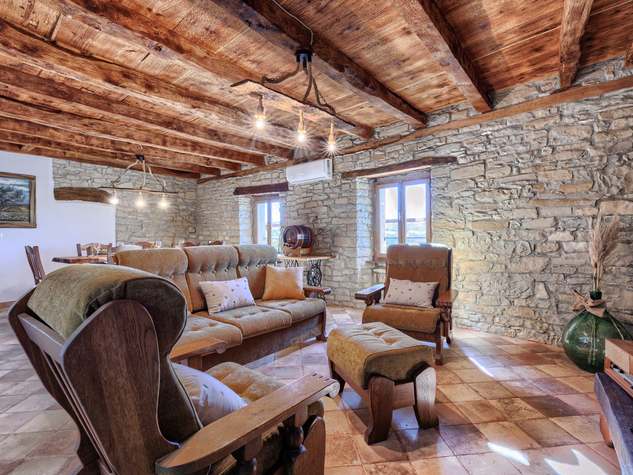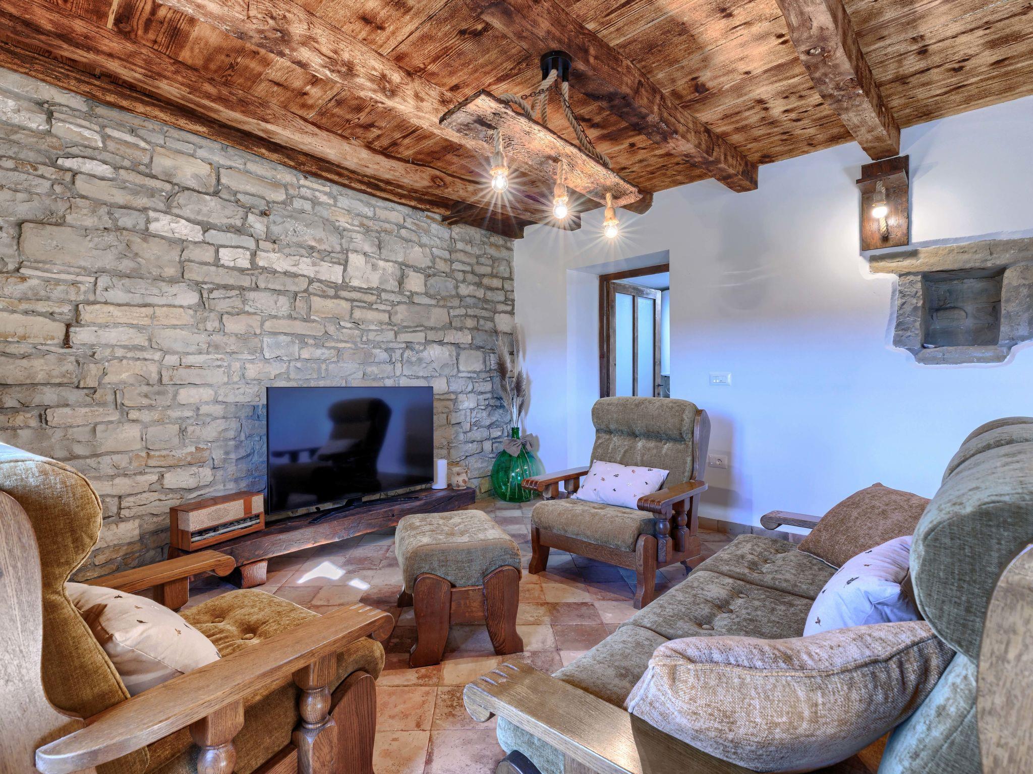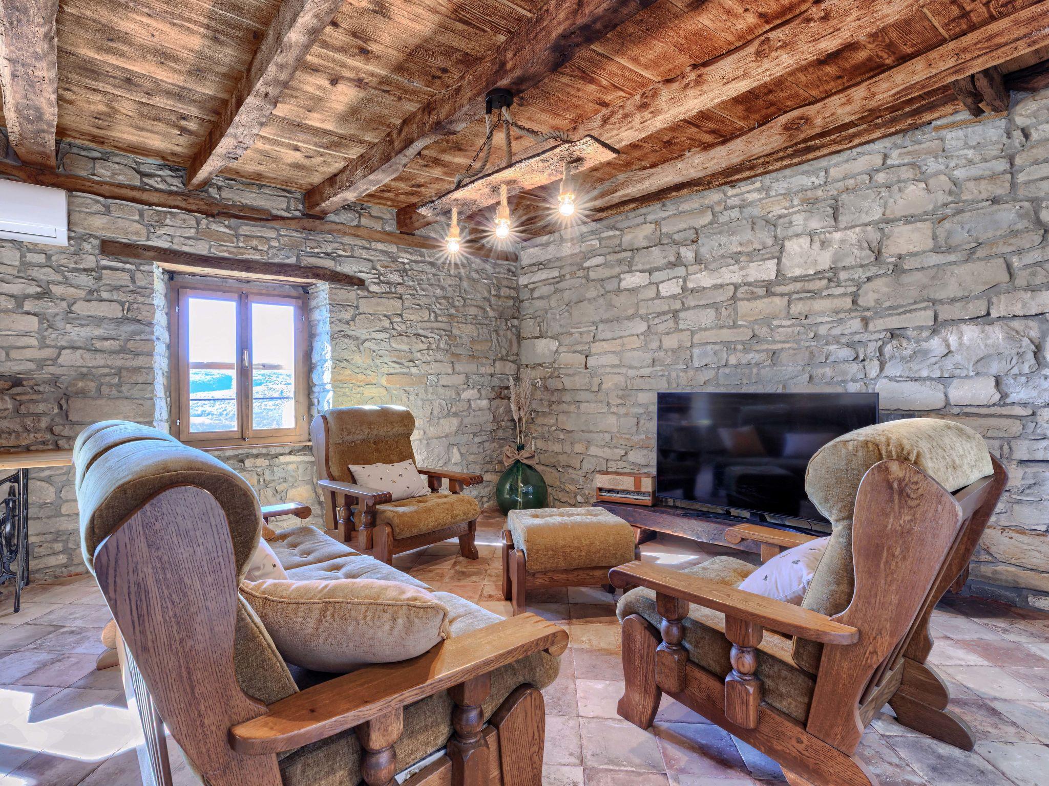 Beautiful terraced house "Marla", 2 storeys, renovated in 2025. In the hamlet Pirelici 4 km from the centre of Livade, in a sunny position, 30 km from the sea. Private: property 150 m2, swimming pool (above ground) (12 m2, depth 150 cm, seasonal availability: 01.Jan. - 31.Dec.) with internal staircase. Outdoor shower, terrace (15 m2), garden furniture, barbecue, pool maintenance by the owner/gardener. In the house: internet access, infrared sauna, washing machine. Parking (for 2 cars) at the house on the premises. Shop 4 km, supermarket 20 km, restaurant 4 km, bar 4 km, bus stop 4 km, pebble beach 30 km, rocky beach 30 km. Walking paths from the house 100 m, cycle lane 150 m. Nearby attractions: Aquapark 24 km. The owner does not accept any youth groups.
