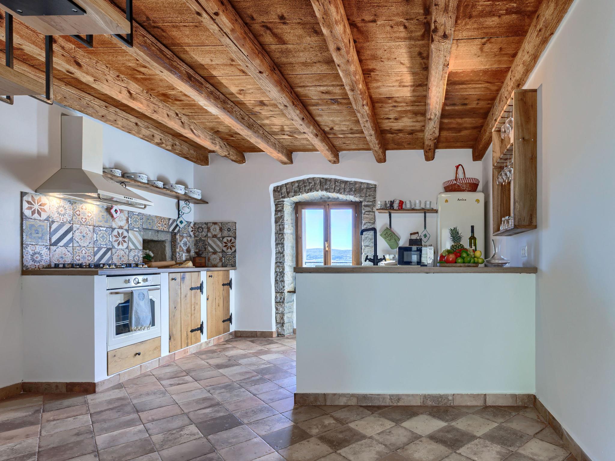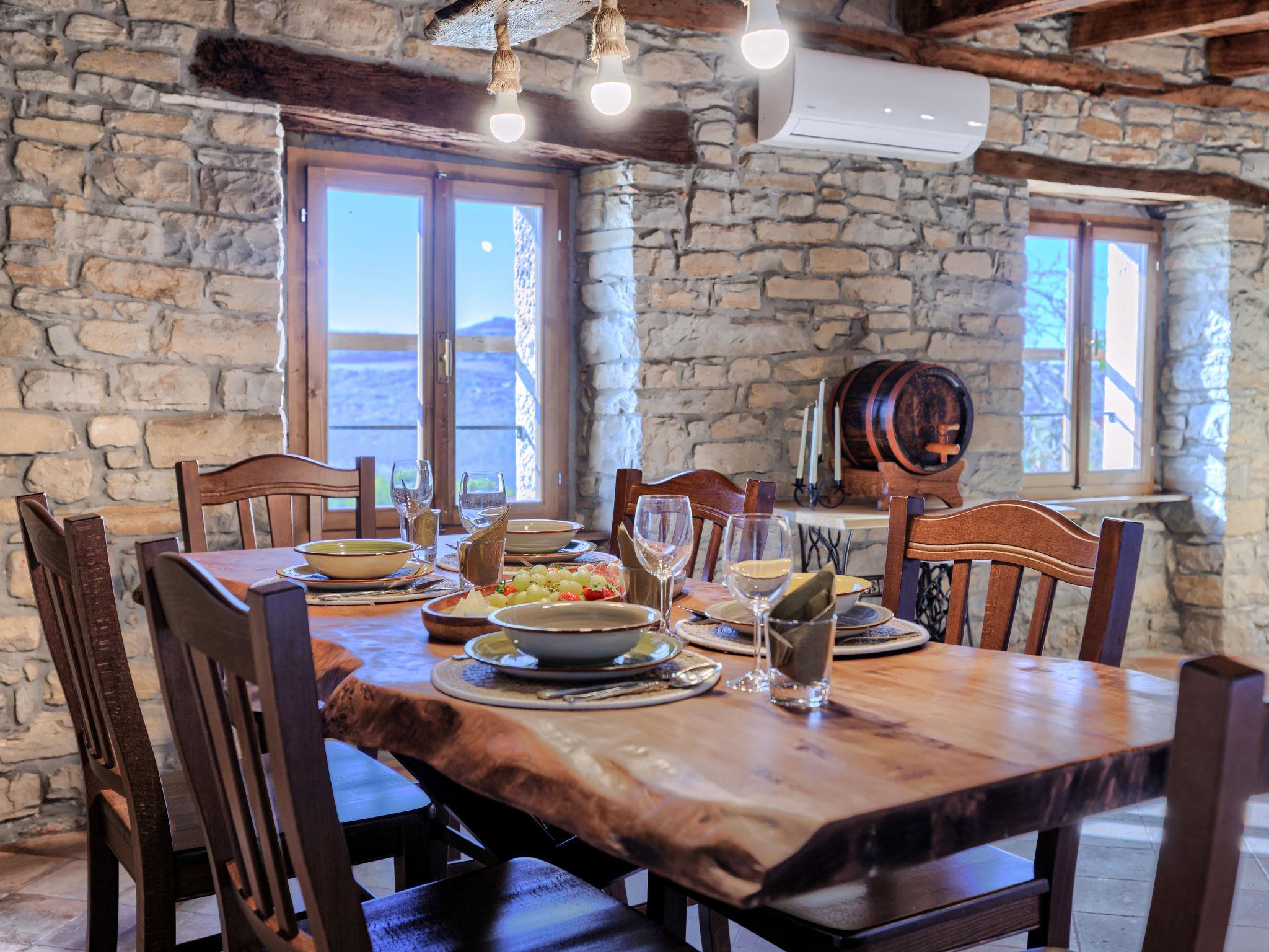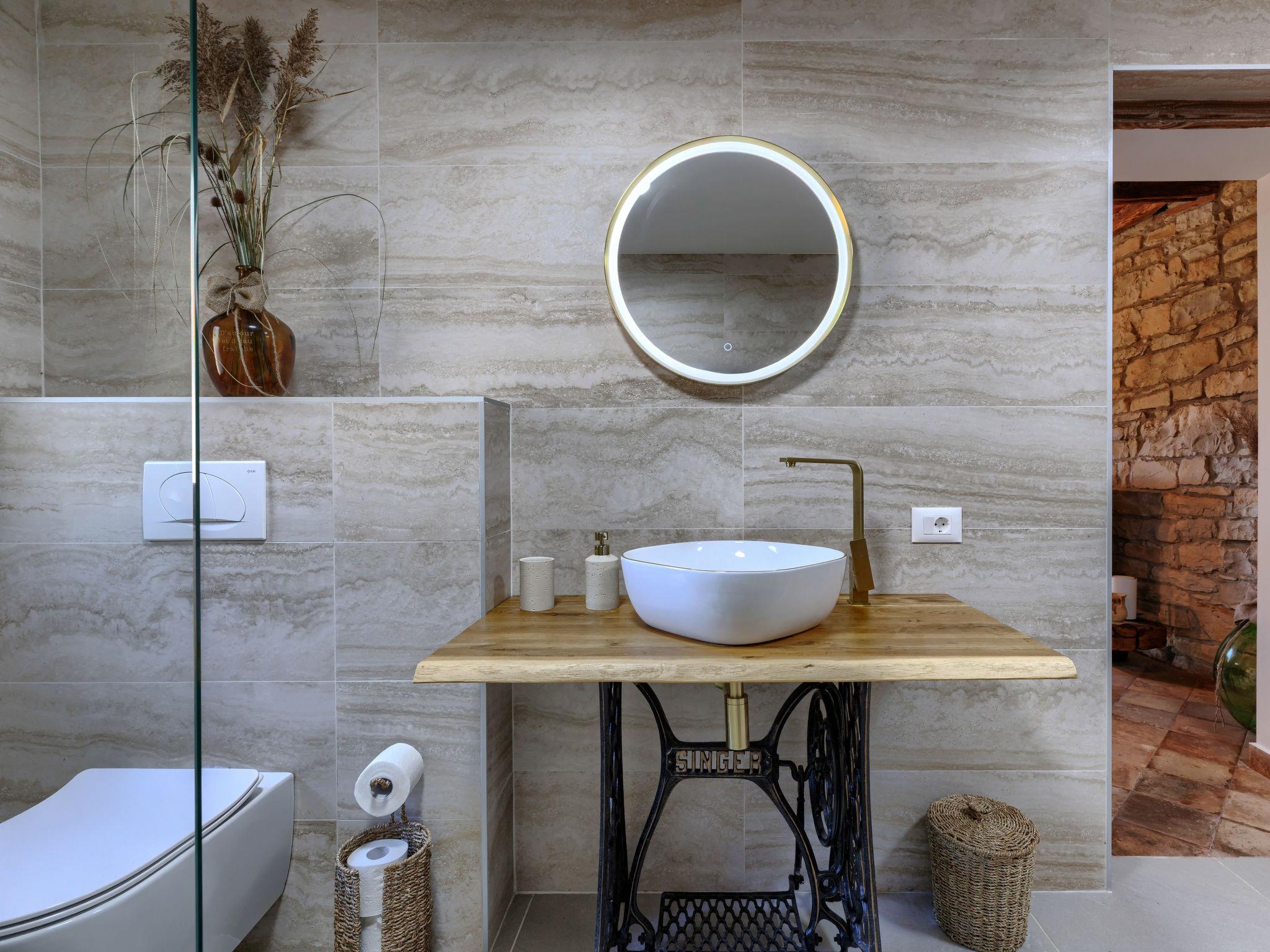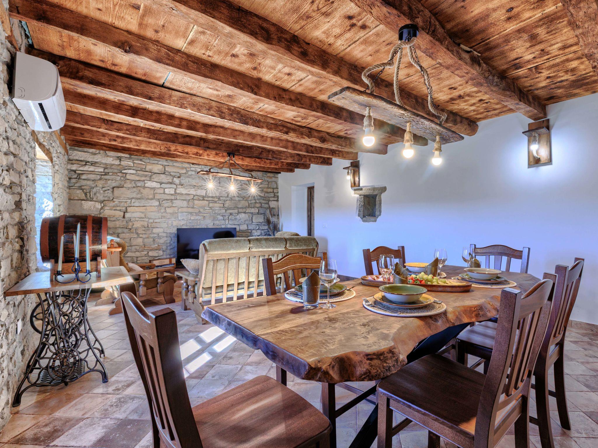 Beautiful terraced house "Marla", 2 storeys, renovated in 2025. In the hamlet Pirelici 4 km from the centre of Livade, in a sunny position, 30 km from the sea. Private: property 150 m2, swimming pool (above ground) (12 m2, depth 150 cm, seasonal availability: 01.Jan. - 31.Dec.) with internal staircase. Outdoor shower, terrace (15 m2), garden furniture, barbecue, pool maintenance by the owner/gardener. In the house: internet access, infrared sauna, washing machine. Parking (for 2 cars) at the house on the premises. Shop 4 km, supermarket 20 km, restaurant 4 km, bar 4 km, bus stop 4 km, pebble beach 30 km, rocky beach 30 km. Walking paths from the house 100 m, cycle lane 150 m. Nearby attractions: Aquapark 24 km. The owner does not accept any youth groups.