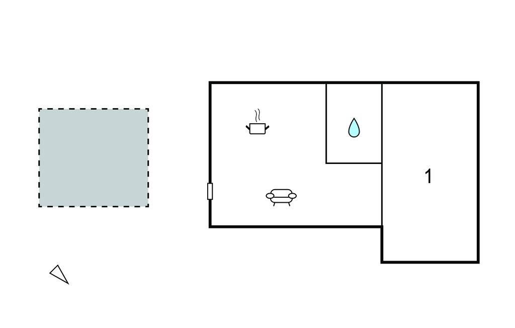 Opholdsstue/køkken - 1 Soveplads. (Sofa, madras eller lignende).