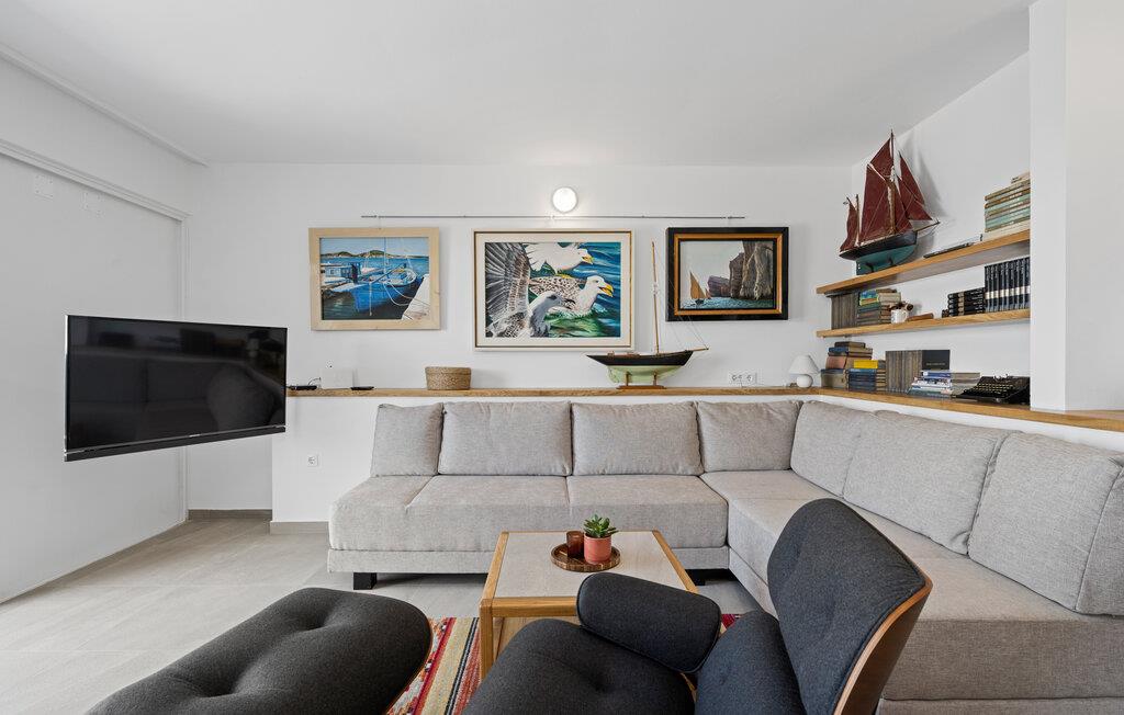 I dette skønne hus på to etager får I alt, I begynder til en ferie med sus, dus og masser af vand. Huset er flot indrettet og udsmykket et vist maritimt strejf, og med de gode møbler får I en behagelig oase, hvor I kan slappe af efter dagens udflugter. Udsigten er allelunde betagende og kan nydes fra stuen, mens I nyder måltiderne ved spisebordet eller læser en god bog i sofaen.