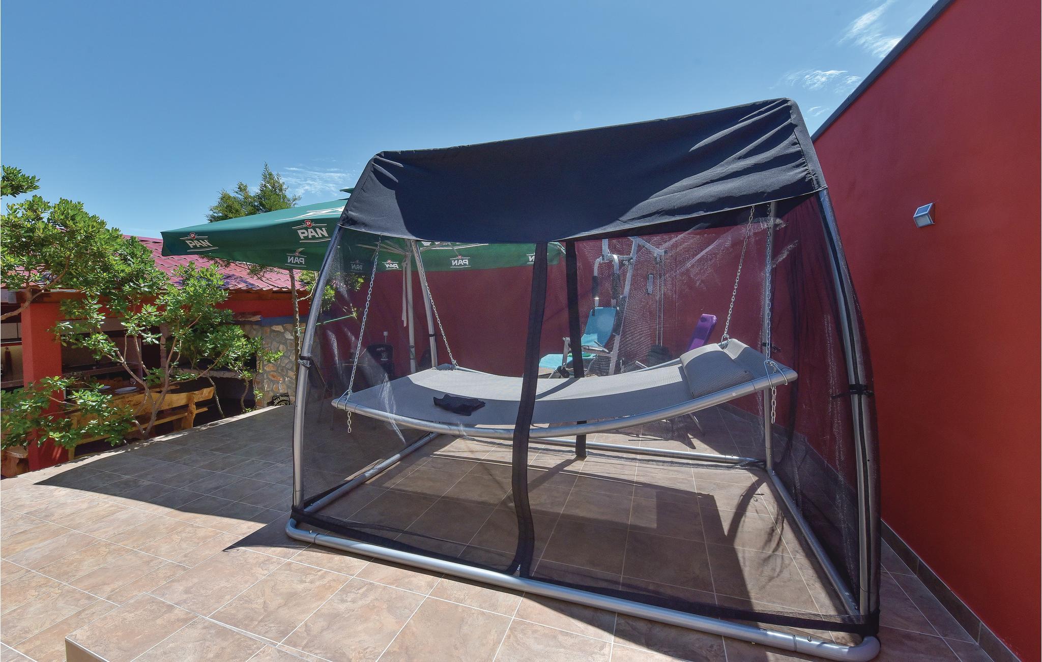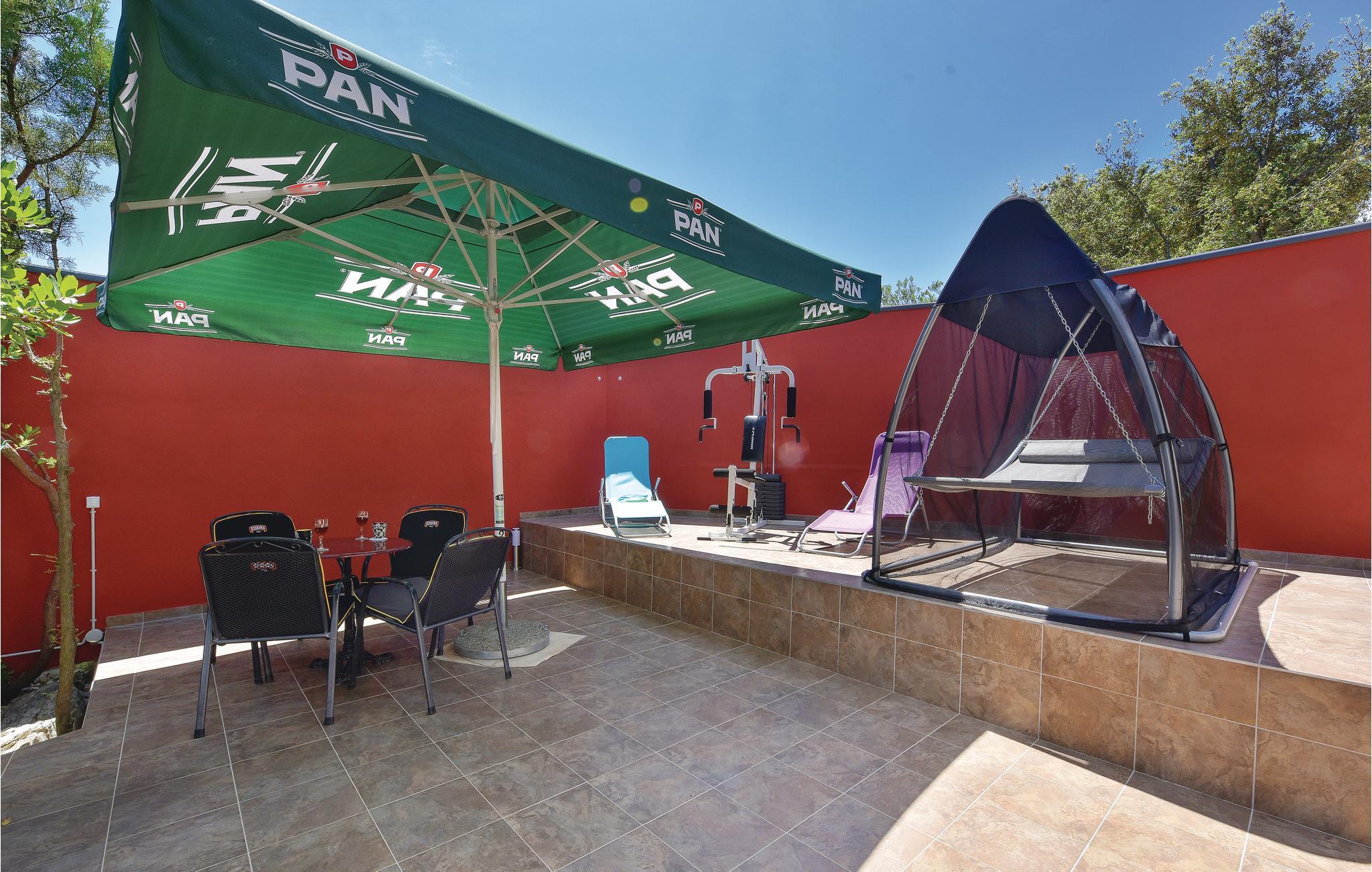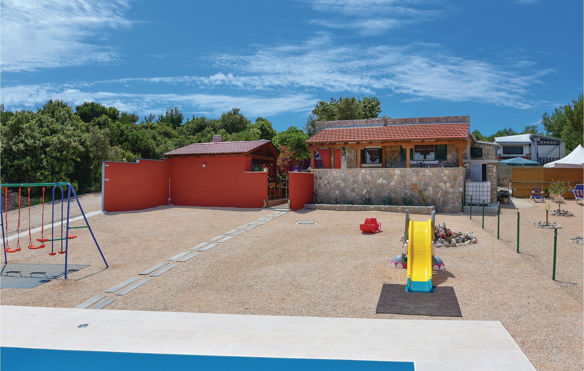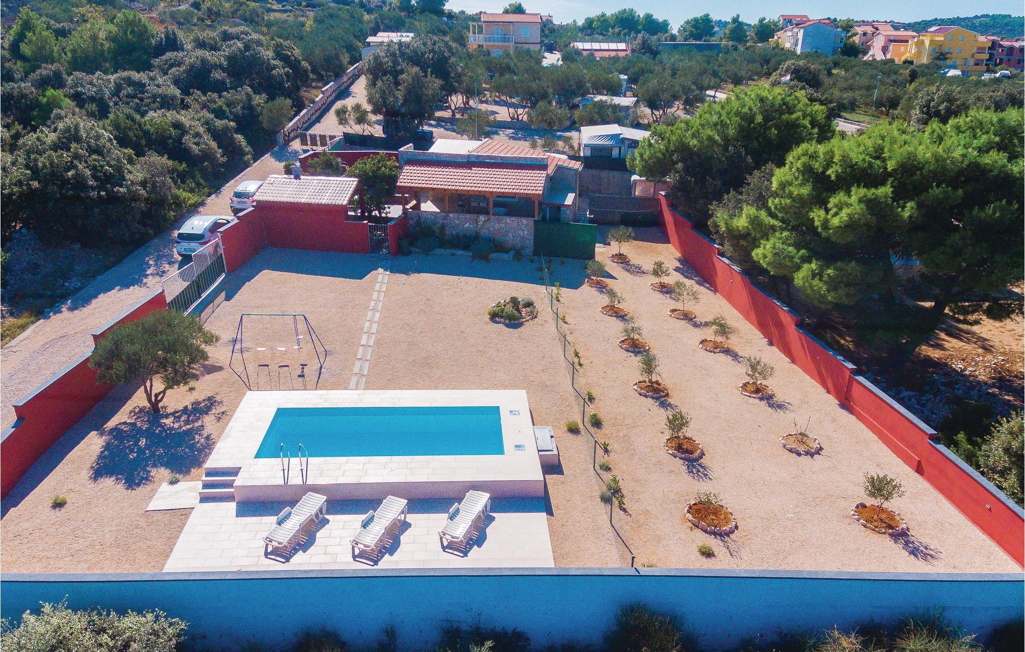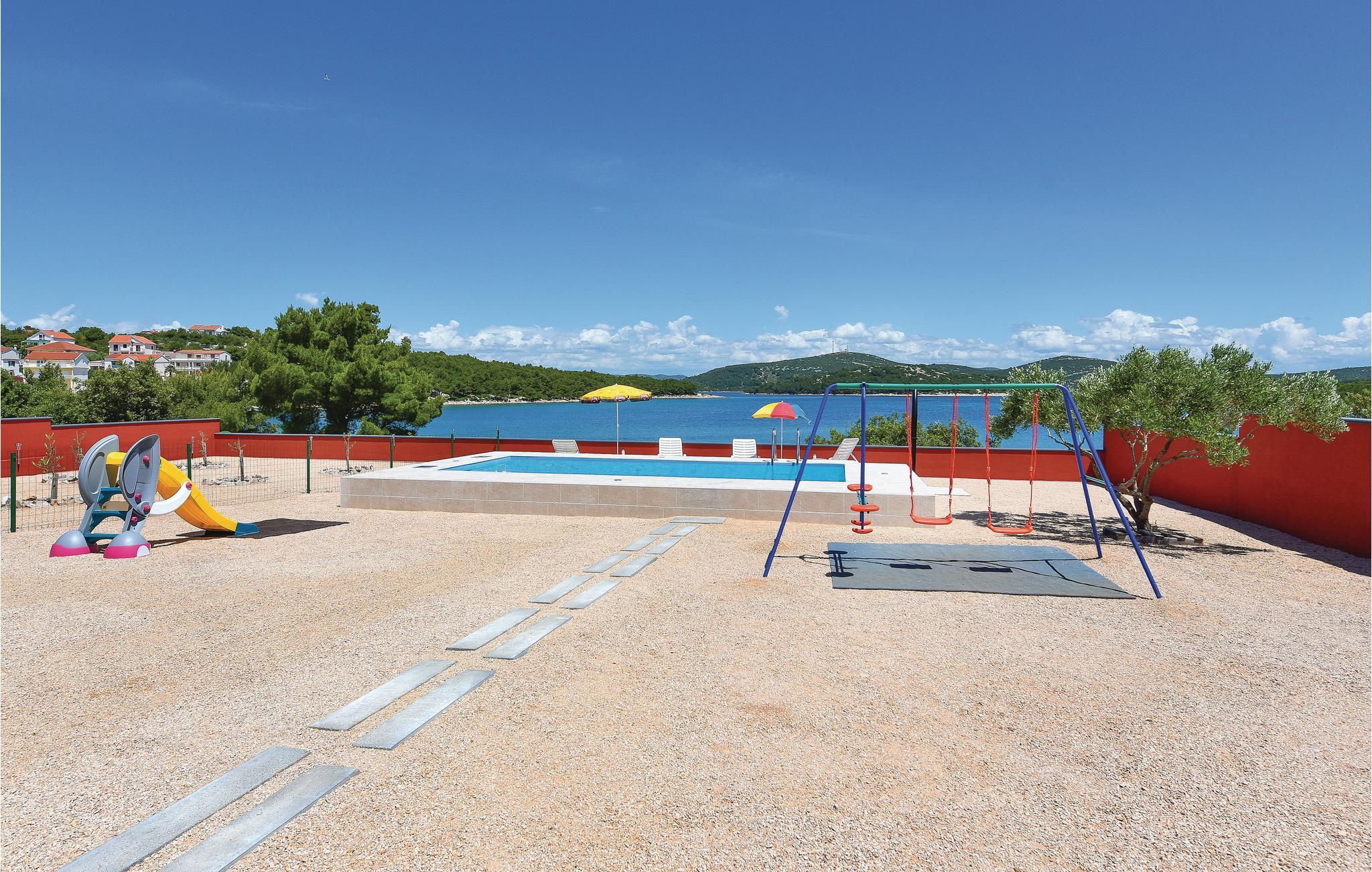 Dette skønne stenhus med pool ligger i den lille kystby Jezera, der byder mange attraktioner for de besøgende. Huset ligger tæt på kysten med en dejlig grusstrand. Indretningen er pæn og funktionel og fra terrassen har I en fantastisk udsigt på havet, bugten og de omkringliggende øer. På en af de overdækkede terrasser er der nogle fitnessredskaber. Byen Jezera ligger på øen Murter, som er forbundet med fastlandet med en bro og ligger mellem Zadar og Šibenik, som begge er historiske byer, der er værd at se. Vi anbefaler et besøg i nationalparken, på Kornati-øerne og af Krka-vandfaldene.