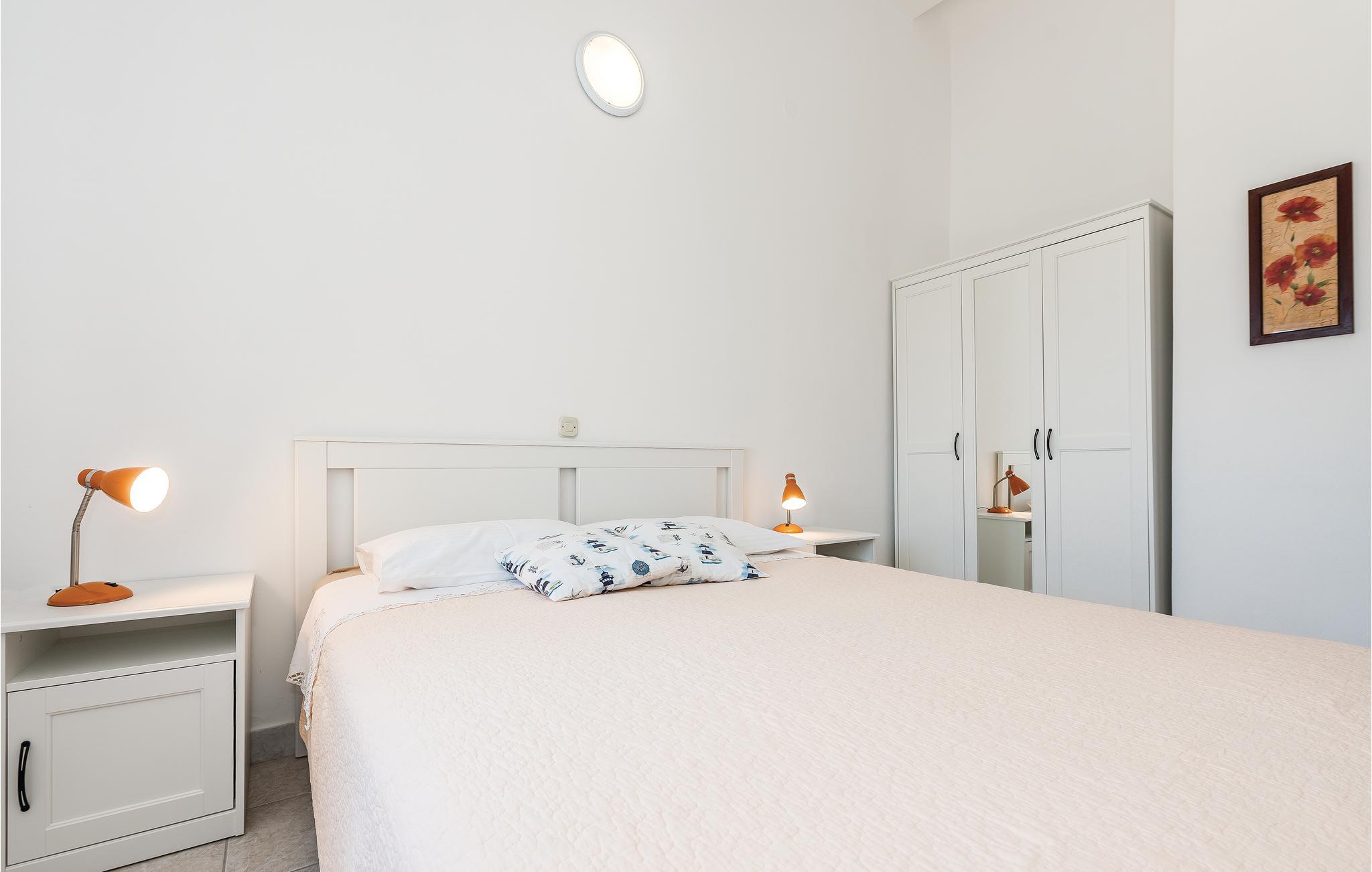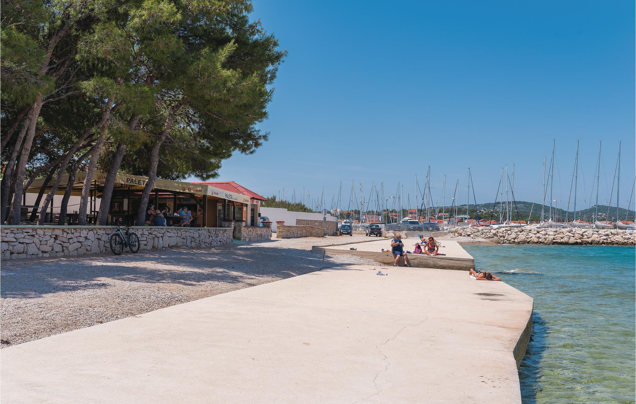 I feriebyen Jezera, på øen Murter ligger denne ejendom med disse enkelt indrettede ferielejligheder. Til hver lejlighed hører en terrasse med havudsigt, og da I bor lige i nærheden af både havet og stranden, er lejlighederne oplagt til badeferier for hele familien. På den rummelige grund står en fælles grill. Øen Murter er forbundet med bro fastlandet, så det er nemt at køre på udflugt til fx de spændende byer Zadar und Šibenik. Holder I af natur, så vil det være oplagt at tage på tur til de skønne nationalparker Krka og Kornati, sidstnævnte er en øgruppe, som I skal sejle til.