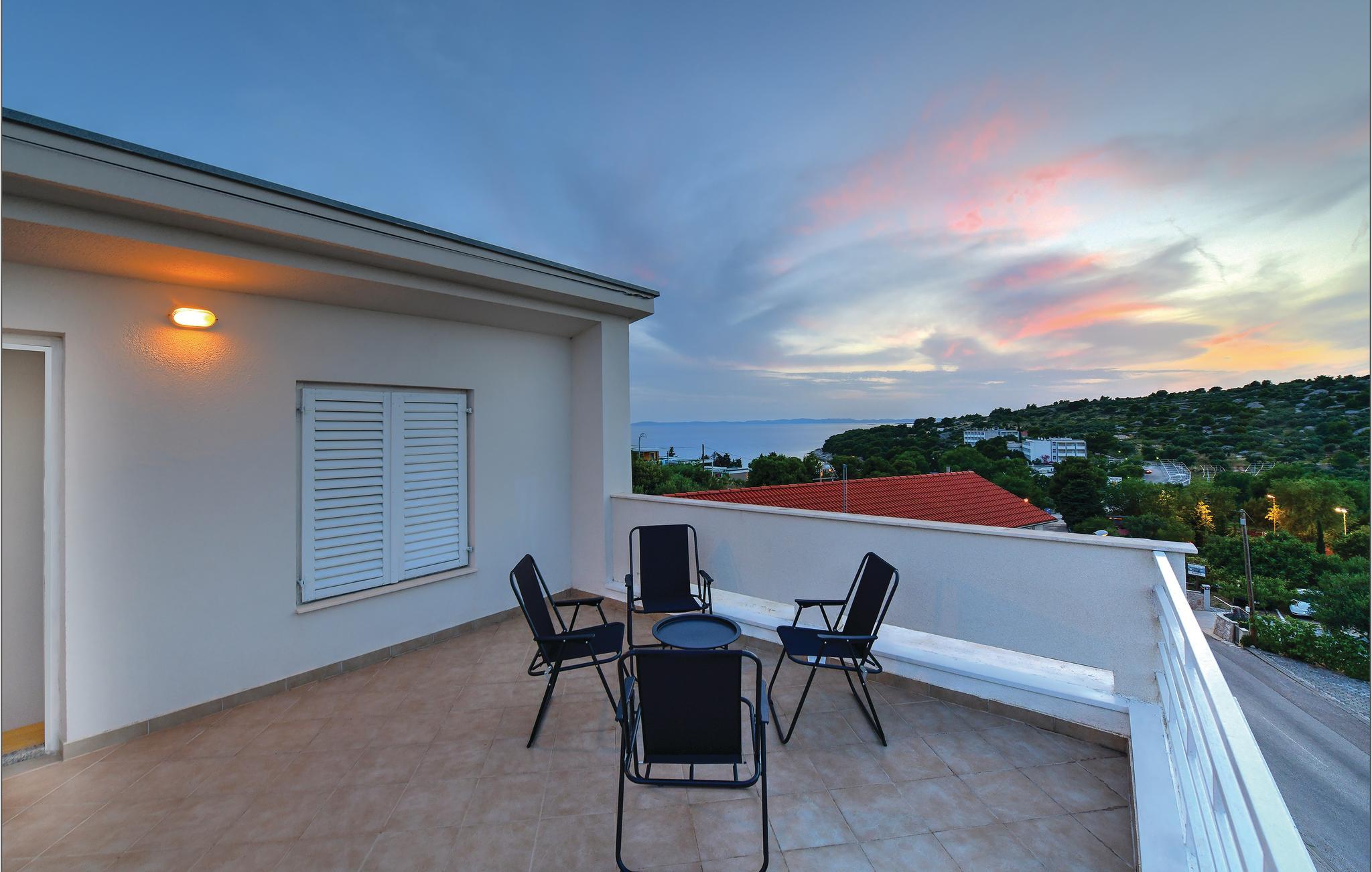 Feriehuset strækker sig over to etager, der er forbundet med indvendige tapper. Nyd den unikke udsigt over havet fra terrassen i den velplejede have.