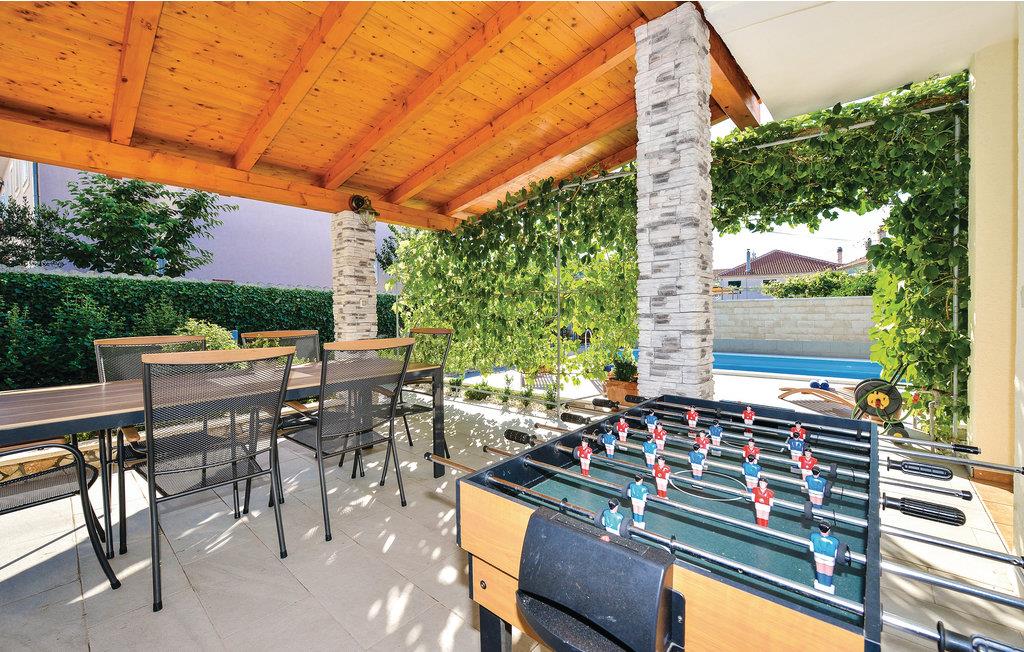 Foran huset ligger swimmingpool, hvor I kan plaske rundt i timevis, når solen står højt på himlen. Her er også en grill og bekvemme havemøbler til hyggelige timer i fri luft.