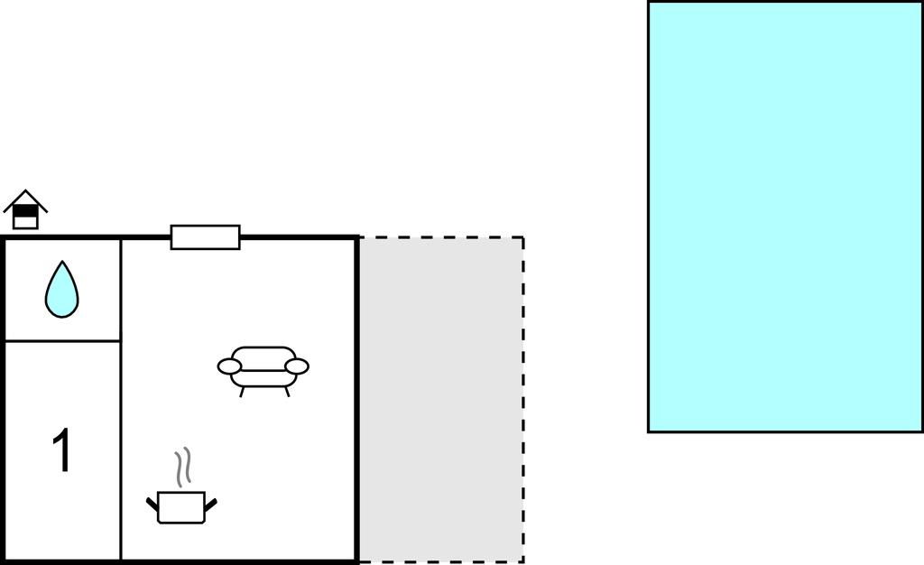 Komb. spisestue/køkken - 2 Sovepladser. (Sofa, madras eller lignende).