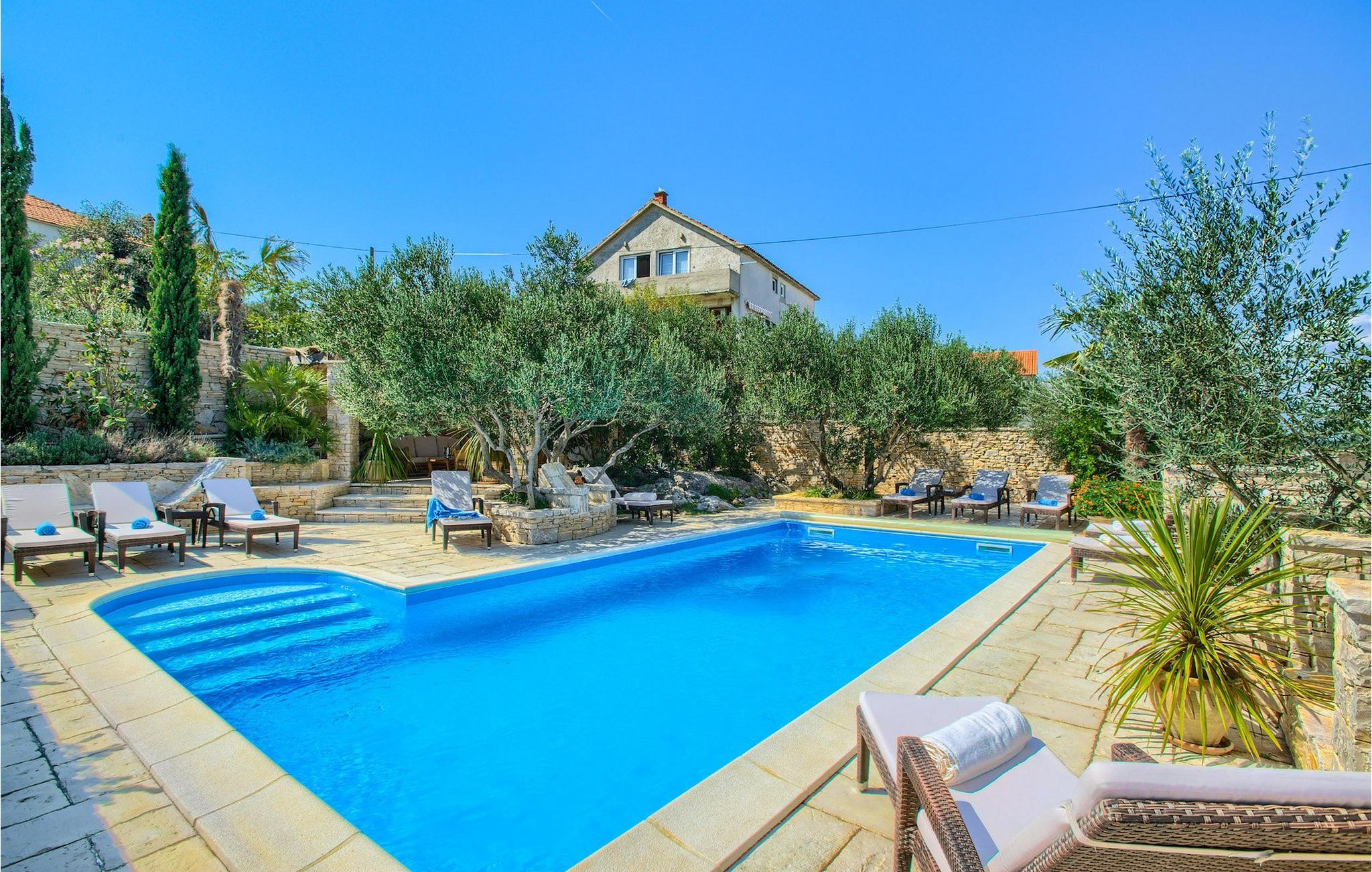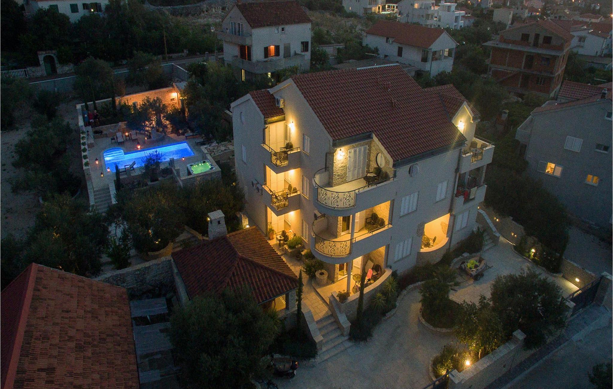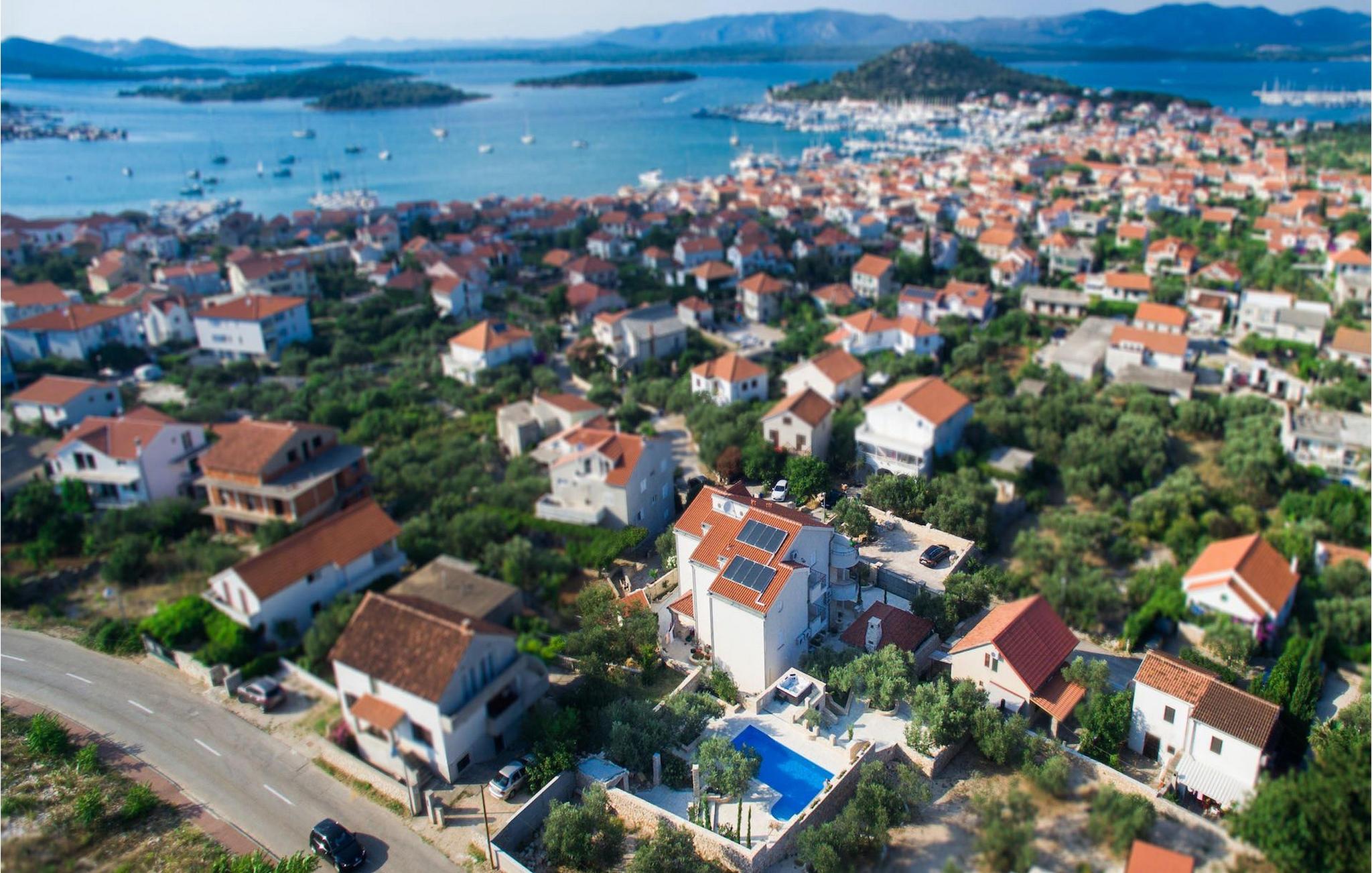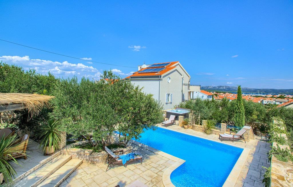 Fantastiske Villa Kos Murter ligger på en charmerende ø Murter i Dalmatien og kan rumme op til 18 gæster. Villaen består af 6 dejlige lejligheder, der udlejes samlet som én enhed. Lejlighederne er fordelt på første og anden sal, mens stueplan ikke er til leje. På første sal er der 3 lejligheder med hver 2 soveværelser. På anden sal er der yderligere 3 lejligheder, hvoraf den ene kun har et soveværelse. Alle lejligheder har deres egen airconditionerede stue med tv, deres veludstyrede køkken og eget badeværelse. Fra hver af lejlighederne kan du nyde en vidunderlig udsigt over omgivelserne og den krystalklare Adria. Udadtil er Villa Kos Murter ikke mindre imponerende. Der er en middelhavshave til din rådighed med masser af naturlig skygge. Den indbydende pool midt i haven er ideel til varme, solrige dage. Men hvis du foretrækker havet, er den nærmeste strand kun 300 m fra villaen. Villa Kos Murter tilbyder også en jacuzzi for et ekstra strejf af luksus samt en traditionel "konoba", hvor hele gruppen kan tilbringe tid sammen og spise under åben himmel. Øen Murter ligger i den nordvestlige del af Šibenik-øgruppen og den er adskilt fra fastlandet af en smal havkanal ved Tisno.