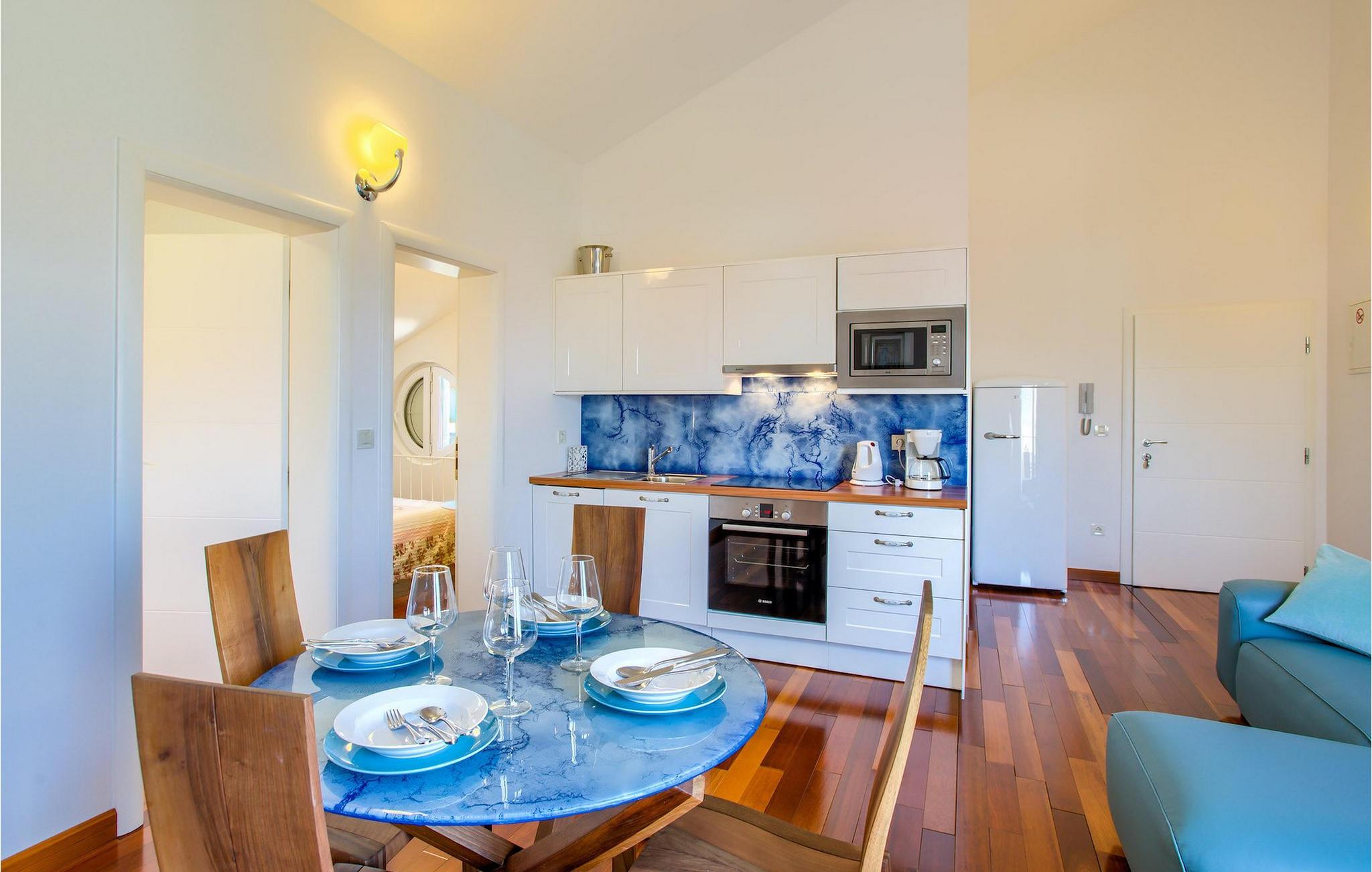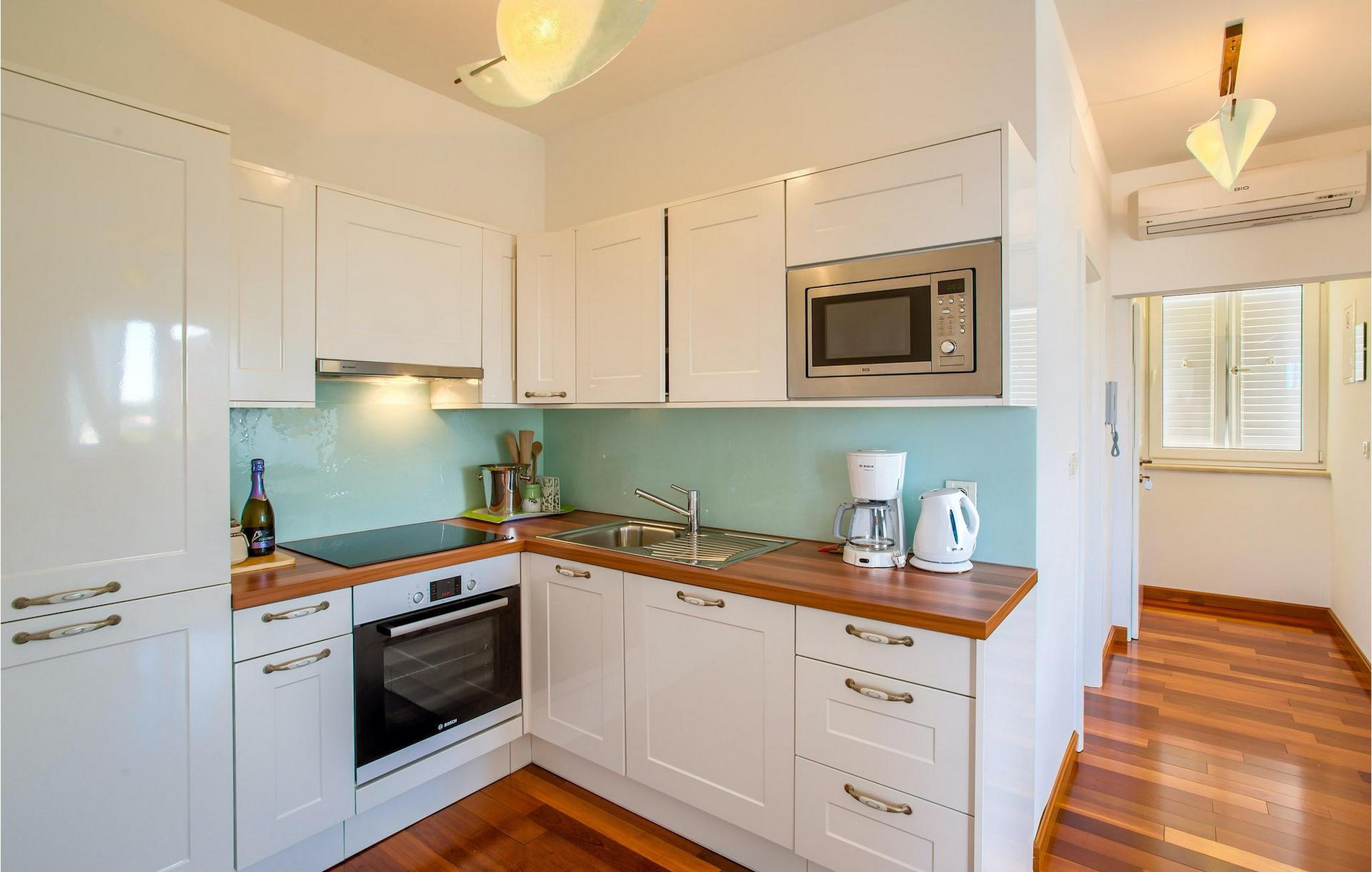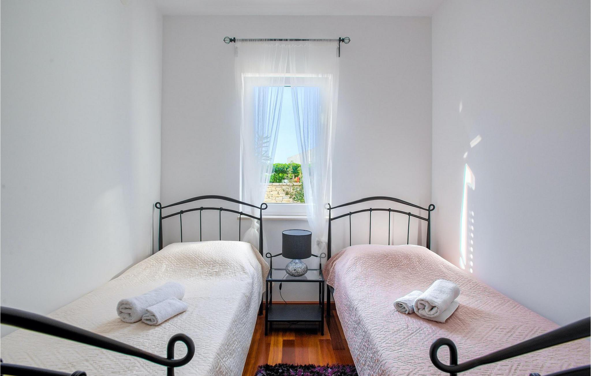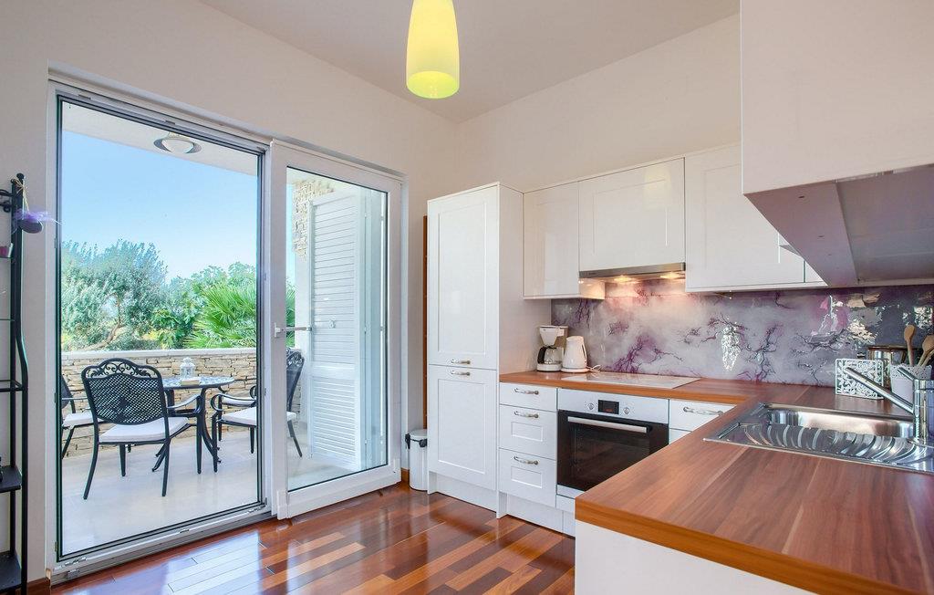 Fantastiske Villa Kos Murter ligger på en charmerende ø Murter i Dalmatien og kan rumme op til 18 gæster. Villaen består af 6 dejlige lejligheder, der udlejes samlet som én enhed. Lejlighederne er fordelt på første og anden sal, mens stueplan ikke er til leje. På første sal er der 3 lejligheder med hver 2 soveværelser. På anden sal er der yderligere 3 lejligheder, hvoraf den ene kun har et soveværelse. Alle lejligheder har deres egen airconditionerede stue med tv, deres veludstyrede køkken og eget badeværelse. Fra hver af lejlighederne kan du nyde en vidunderlig udsigt over omgivelserne og den krystalklare Adria. Udadtil er Villa Kos Murter ikke mindre imponerende. Der er en middelhavshave til din rådighed med masser af naturlig skygge. Den indbydende pool midt i haven er ideel til varme, solrige dage. Men hvis du foretrækker havet, er den nærmeste strand kun 300 m fra villaen. Villa Kos Murter tilbyder også en jacuzzi for et ekstra strejf af luksus samt en traditionel "konoba", hvor hele gruppen kan tilbringe tid sammen og spise under åben himmel. Øen Murter ligger i den nordvestlige del af Šibenik-øgruppen og den er adskilt fra fastlandet af en smal havkanal ved Tisno.