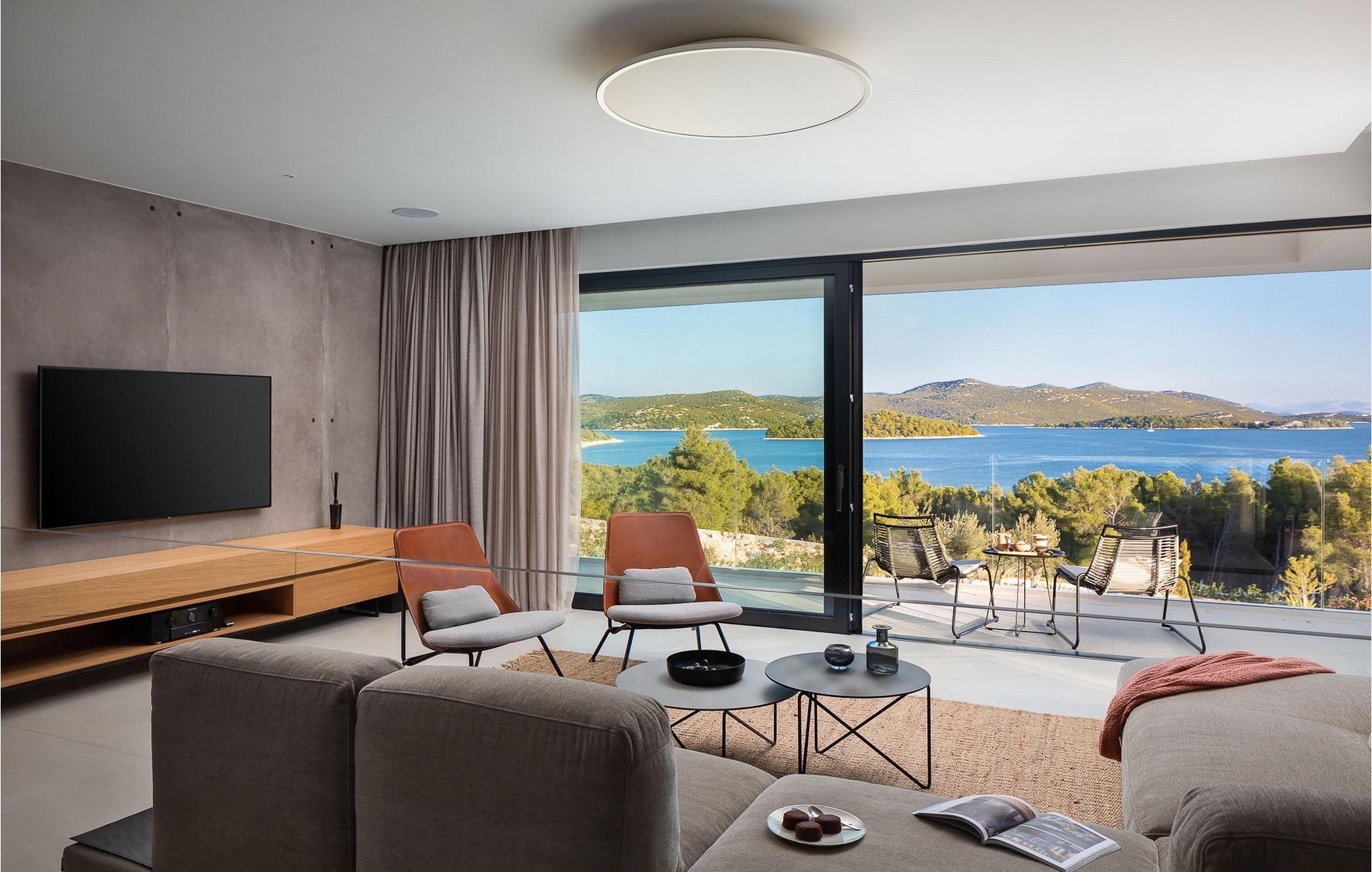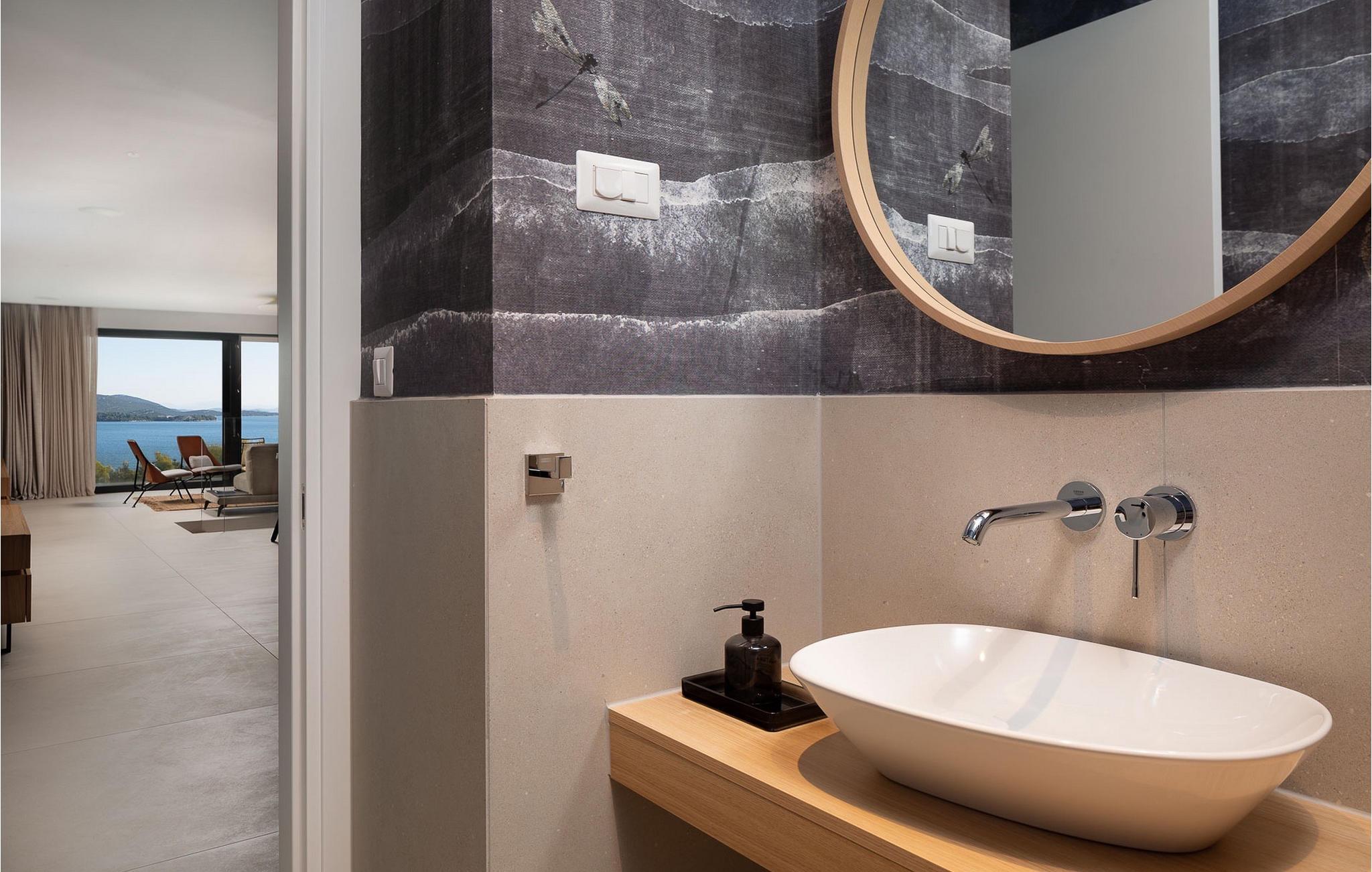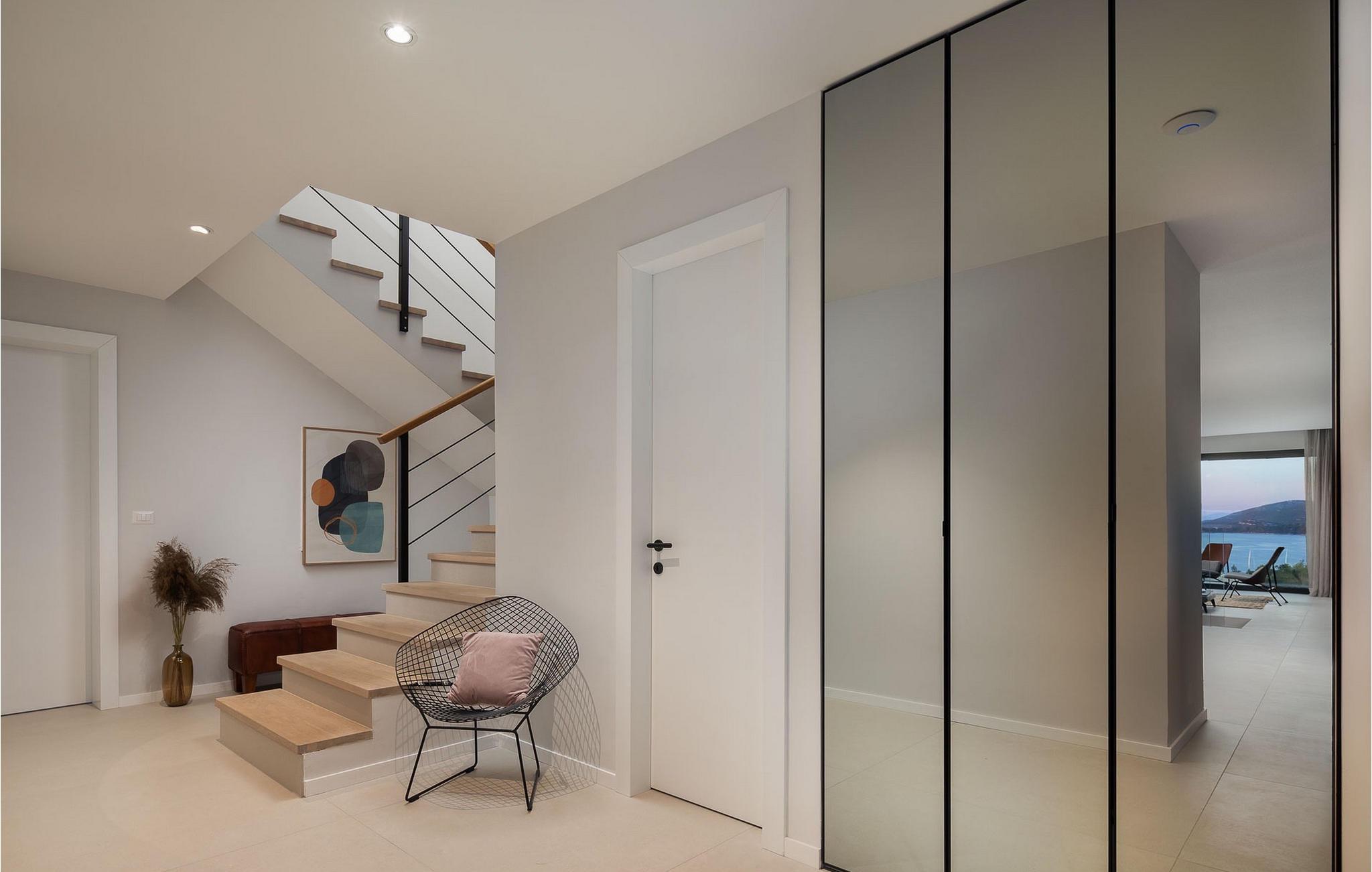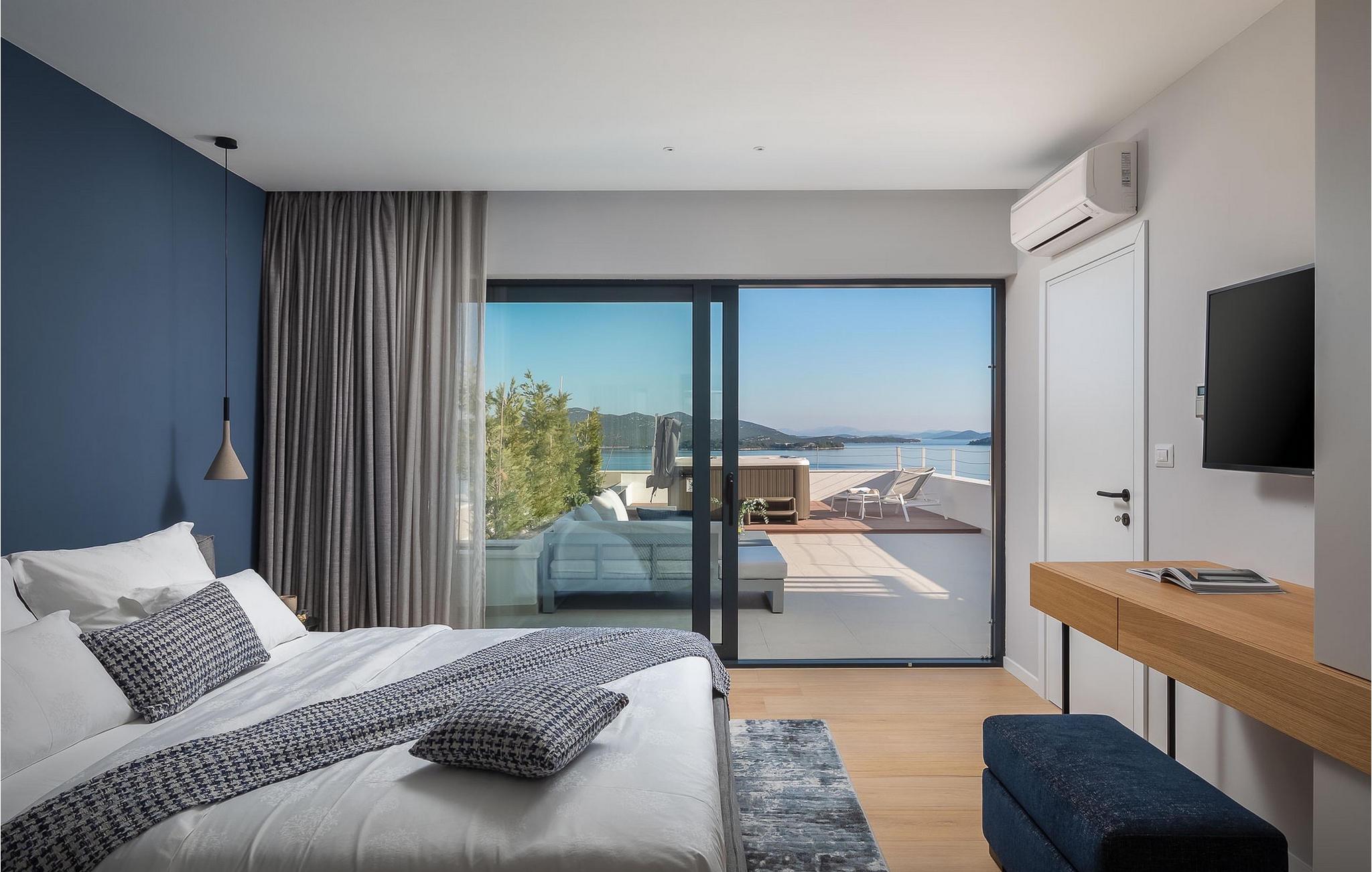 Oplev en all-round afslappende ferie for 8+1 personer i Villa Konstanca med en smuk havudsigt. Denne moderne villa er opdelt i tre etager, dog er kælderen/stueetagen ikke synlig fra villaens bagside, da den ligger i haveniveau. Her er også to soveværelser med eget badeværelse placeret, mens alle andre soveværelser også nyder godt af bekvemmeligheden ved deres badeværelse. Så nyd privatlivets fred i disse soveværelser med udsigt over havet og grønne områder og direkte udgang til haven. De yngste vil være særligt glade for at bo i et af disse værelser, fordi den anlagte have indeholder en gynge. Du kan klatre op til den "høje stueetage" med en indvendig eller udvendig trappe, hvor en rummelig terrasse med swimmingpool venter på dig. Køl ned fra sommervarmen ved at hoppe i poolen med hydromassage eller få en drink, mens du solbader på liggestolene, mulighederne er uendelige. Og selv et udendørs måltid sidst på dagen er et must ved det store spisebord ved poolen. Den åbne stue, køkken og spisestue er et sandt billede på harmonisk design. Trædetaljer findes også i udsmykningen af fitnesscenteret og saunaen på dette niveau. En af de direkte udsigter og udgange er også fra træningscenteret - forestil dig bare hvilken motivation for motion udsigten over havet vil give! Bagefter skal du selvfølgelig ikke springe den velfortjente afslapning i saunaen over. Du finder to smukt og upåklageligt indrettede soveværelser på første sal, og det er svært at afgøre, hvilket af dem der har flere faciliteter. Du har helt sikkert mulighed for at vågne op med udsigt over havet i begge, fordi den ene har sin balkon, og den anden åbner direkte ud til den øverste terrasse. Selve den øverste terrasse tilbyder dig et sted at nyde en udendørs jacuzzi, havemøbler og liggestole. Kan du forestille dig et bedre sted at se solnedgangen med et glas af din yndlingsdrink? Villa Konstanca har en nabovilla Sara Murter. Selvom de blev bygget som én bygning, udlejes villaerne Sara og Konstanca som to separate villaer. Villa Sara Murter ligger i anden halvdel af samme bygning, på et højere niveau end Villa Konstanca. Begge villaer er helt indhegnet, så gæsternes privatliv er sikret. Hvis du kommer med din familie eller venner som en stor gruppe, er det muligt at booke Villa Sara og Konstanca sammen. Luksusvillaen Konstanca ligger i Jezera, på den smukke ø Murter, som er en del af Šibenik-øgruppen. Kun få skridt fra villaen ligger en promenade, der løber langs havet hele vejen fra Jezera til Tisno. Promenaden er 2 km lang og ideel til morgenløbeture eller romantiske gåture for to ved solnedgang. Langs promenaden finder du adskillige sten- og klippestrande omgivet af fyrreskove. For alle elskere af en aktiv ferie er der offentlige sportsbaner for tennis, basketball og fodbold i nærheden af villaen. Cykler er også tilgængelige, ideelle til at udforske det omkringliggende område. Hvis du gerne vil opdage de andre øer i Šibenik-øgruppen, de mange skjulte bugter og strande, anbefaler vi at leje en båd i den nærliggende lystbådehavn og begive dig ud på et uforglemmeligt eventyr med din familie. Besøg også Kornati National Park, en gruppe af øer omgivet af uberørt natur og krystalklart hav, og Krka National Park med dens talrige vandfald. En uforglemmelig udflugt er bestemt et besøg i byen Šibenik, kendt for sin katedral og talrige fæstninger, der tilbyder en unik udsigt over byen. Rejser du med en større gruppe, kan denne ejendom også lejes i kombination med Villa Sara Murter.