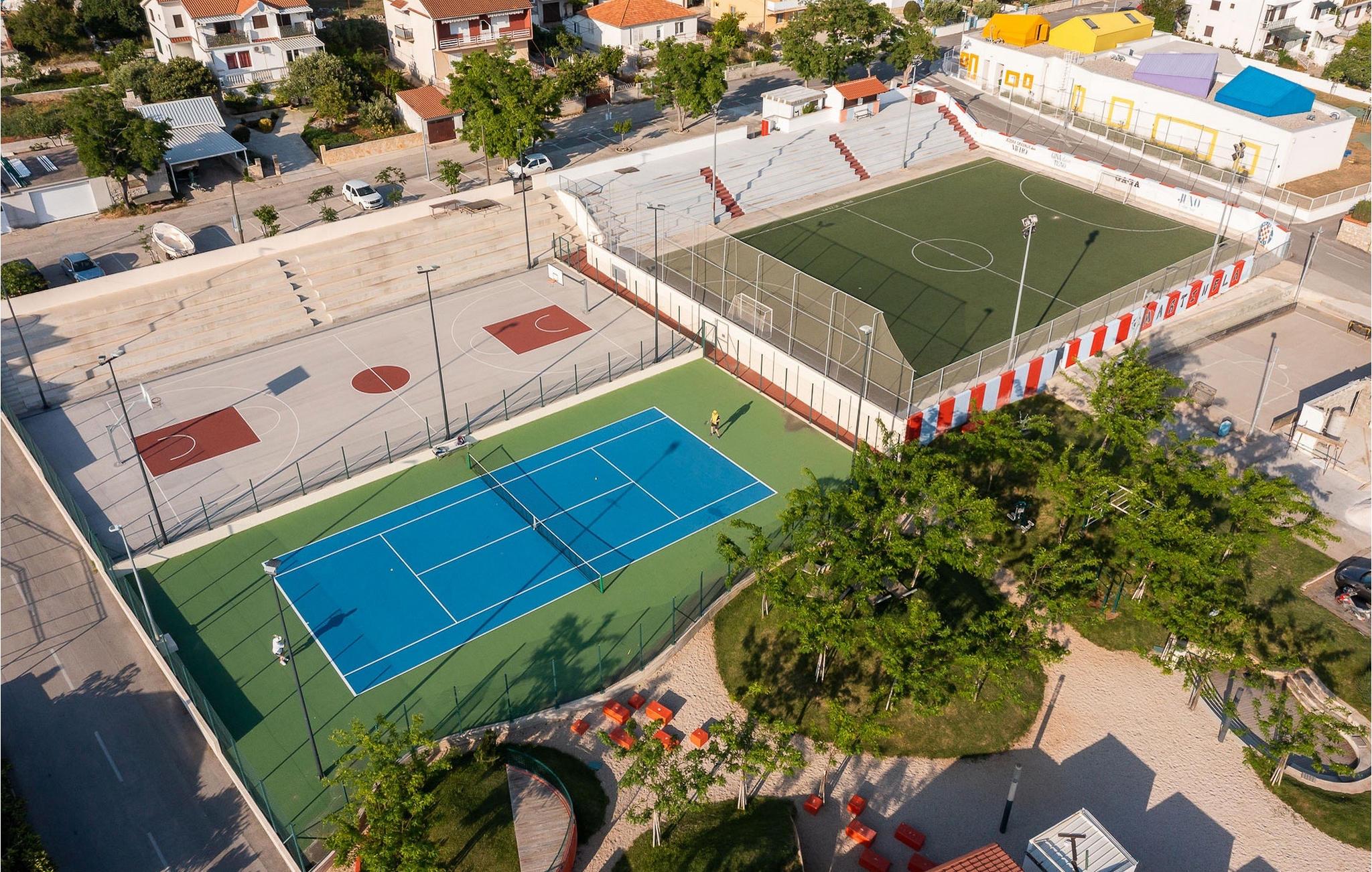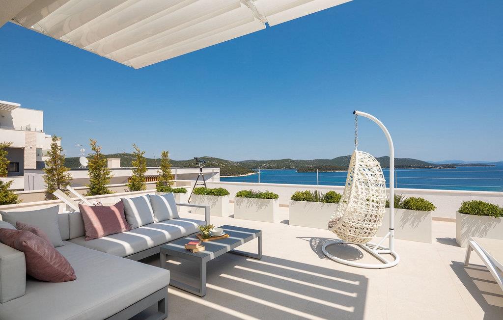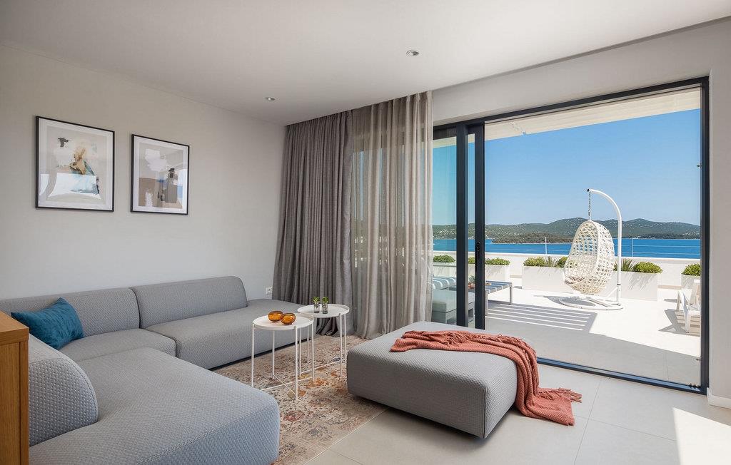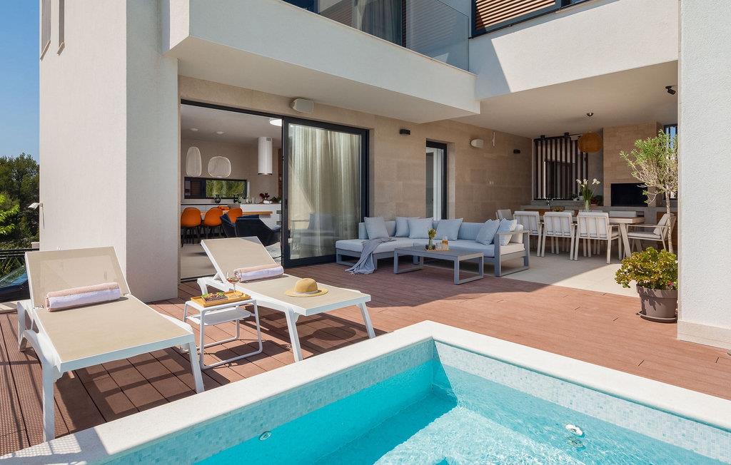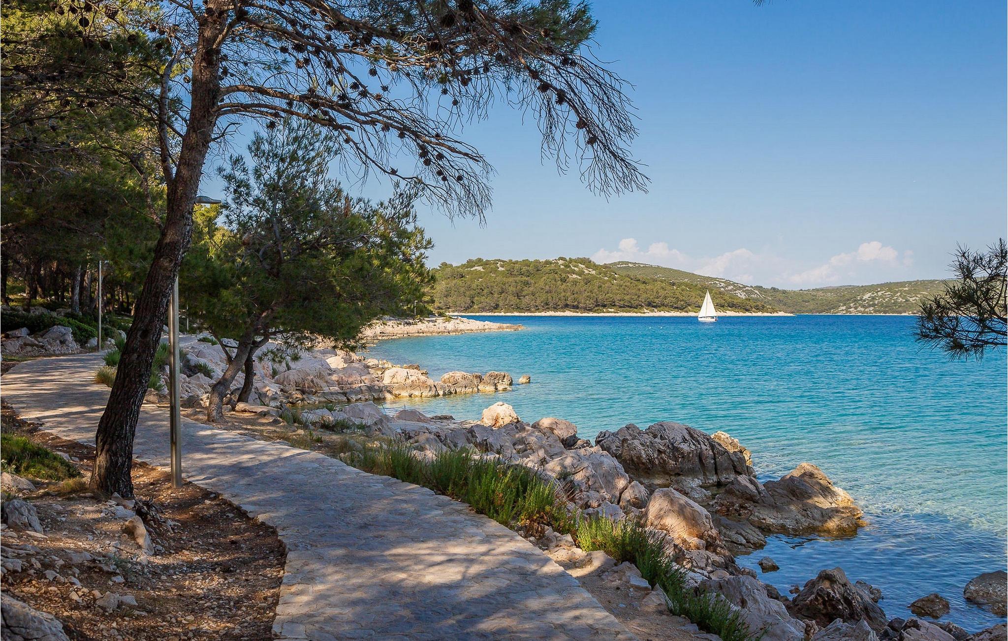 Villa Sara Murter er en luksuriøs og moderne villa til 8 personer, der kombinerer alle charme ved privat indkvartering og bekvemmelighederne ved at bo på et hotel. I stueetagen kan du nyde den private swimmingpool med hydromassage og en iøjnefaldende havudsigt. Efter afkøling kan du solbade på liggestolene eller hvile på havemøblerne. Om dagen eller om aftenen er terrassen ved poolen med et stort spisebord perfekt til at nyde fælles måltider, som du kan tilberede med det samme i det udstyrede udendørs køkken. Trædetaljer og farveaccenter ledsager denne villas udsmykning, især stueetagens åbne grundplan med stue, køkken og spisestue. Der er direkte udgang fra stuen til den udendørs terrasse. Familier med børn vil også være glade for muligheden for et soveværelse i stueetagen for mere praktisk og komfort. Det er vigtigt at bemærke, at selv tre soveværelser i denne villa har ensuite badeværelser for maksimal komfort under dit ophold, mens et separat badeværelse og 2 yderligere toiletter også er tilgængelige. Denne villa vil glæde dig med sin indretning, fordi der er endnu en smagfuldt indrettet stue med et moderne køkken og en ø perfekt til morgenmad på første sal. Der er også direkte udgang til terrassen med havemøbler, som er ideel til en drink ved solnedgang. De resterende tre soveværelser er placeret på første sal, og to har endda deres altaner. Men det store soveværelse er en særlig fornøjelse med sin unikke indretning, store badekar og betagende udsigt. Der er ingen ende på de særlige funktioner her, fordi du også finder adskillige aktiviteter i kælderen, såsom et spillerum og et fitnesscenter. Og for afslapning på højeste niveau, ligesom at bo på et wellness-hotel, kan du nyde spa-rummet med sauna og jacuzzi. Villa Sara Murter har en nabovilla Konstanca. Selvom de blev bygget som én bygning, udlejes villaerne Sara og Konstanca som to separate villaer. Villa Sara Murter ligger i anden halvdel af samme bygning, på et højere niveau end Villa Konstanca. Begge villaer er helt indhegnet, så gæsternes privatliv er sikret. Hvis du kommer med din familie eller venner som en stor gruppe, er det muligt at booke Villa Sara og Konstanca sammen. Den luksuriøse villa Sara Murter ligger i Jezera på den fantastiske ø Murter, som er en del af Sibenik-øgruppen. Villaen ligger tæt på en promenade, der løber langs kysten fra Jezera til Tisno. Den 2 kilometer lange promenade er ideel til morgenløbeture eller aftenture med en partner. Langs promenaden er der talrige grus- og klippestrande omgivet af fyrreskove. Der er offentlige tennis-, basketball- og fodboldbaner i nærheden for alle, der leder efter en aktiv ferie. Cykler er også tilgængelige til brug, som er ideelle til at udforske det omkringliggende område. Vi anbefaler at leje en båd fra den nærliggende lystbådehavn og starte på et uforglemmeligt familieeventyr for at udforske de andre øer i Sibenik-øgruppen samt de mange skjulte bugter og strande. Besøg Kornati National Park, som består af en gruppe øer omgivet af uberørt natur og krystalklart hav, samt Krka National Park, som er hjemsted for flere vandfald. En tur til Sibenik, kendt for sin katedral og talrige fæstninger, der giver en unik udsigt over byen, er uden tvivl mindeværdig. Rejser du med en større gruppe, kan denne ejendom også lejes i kombination med Villa Konstanca.