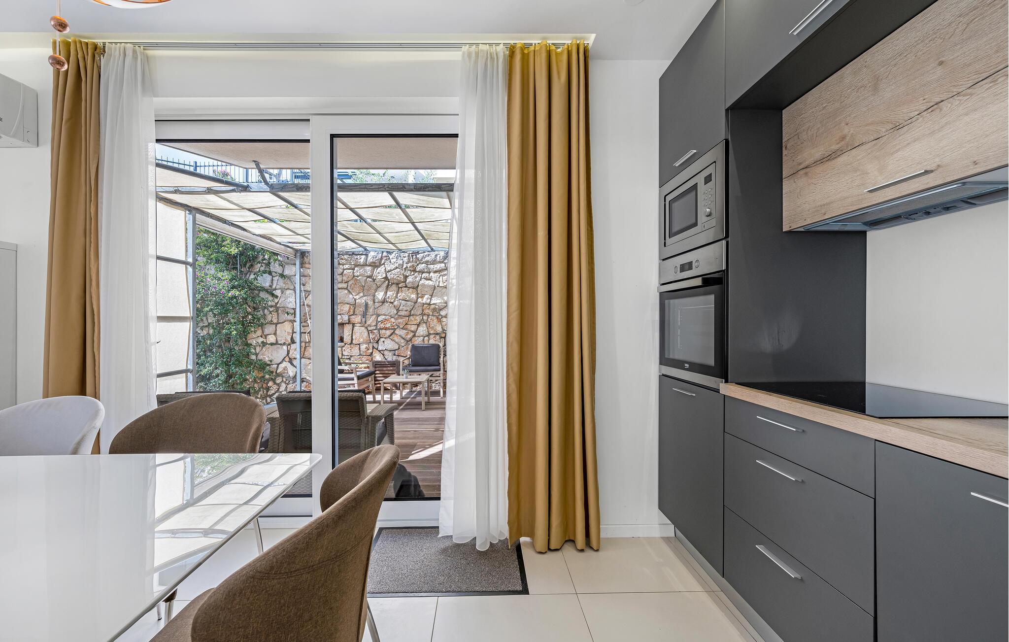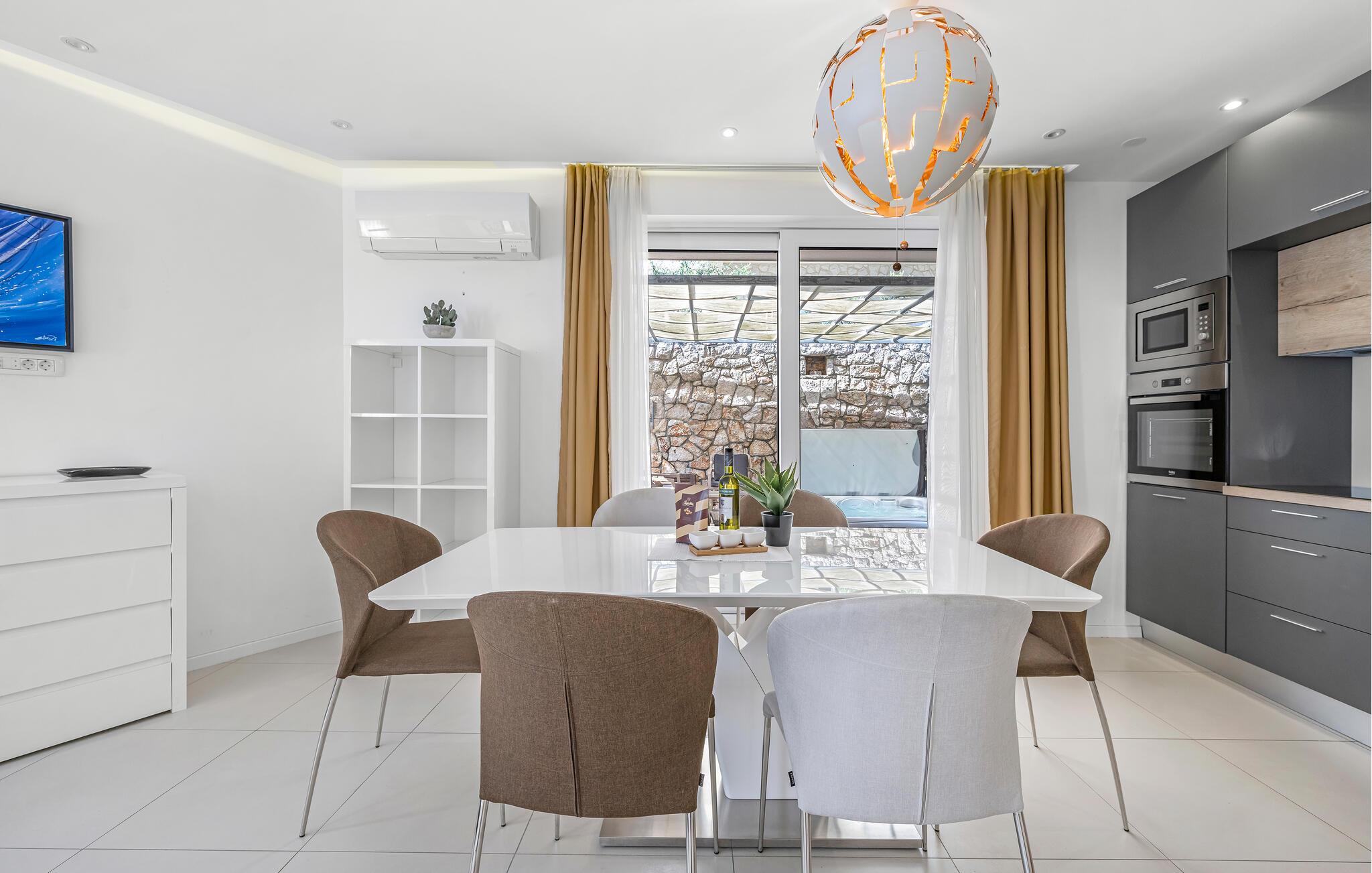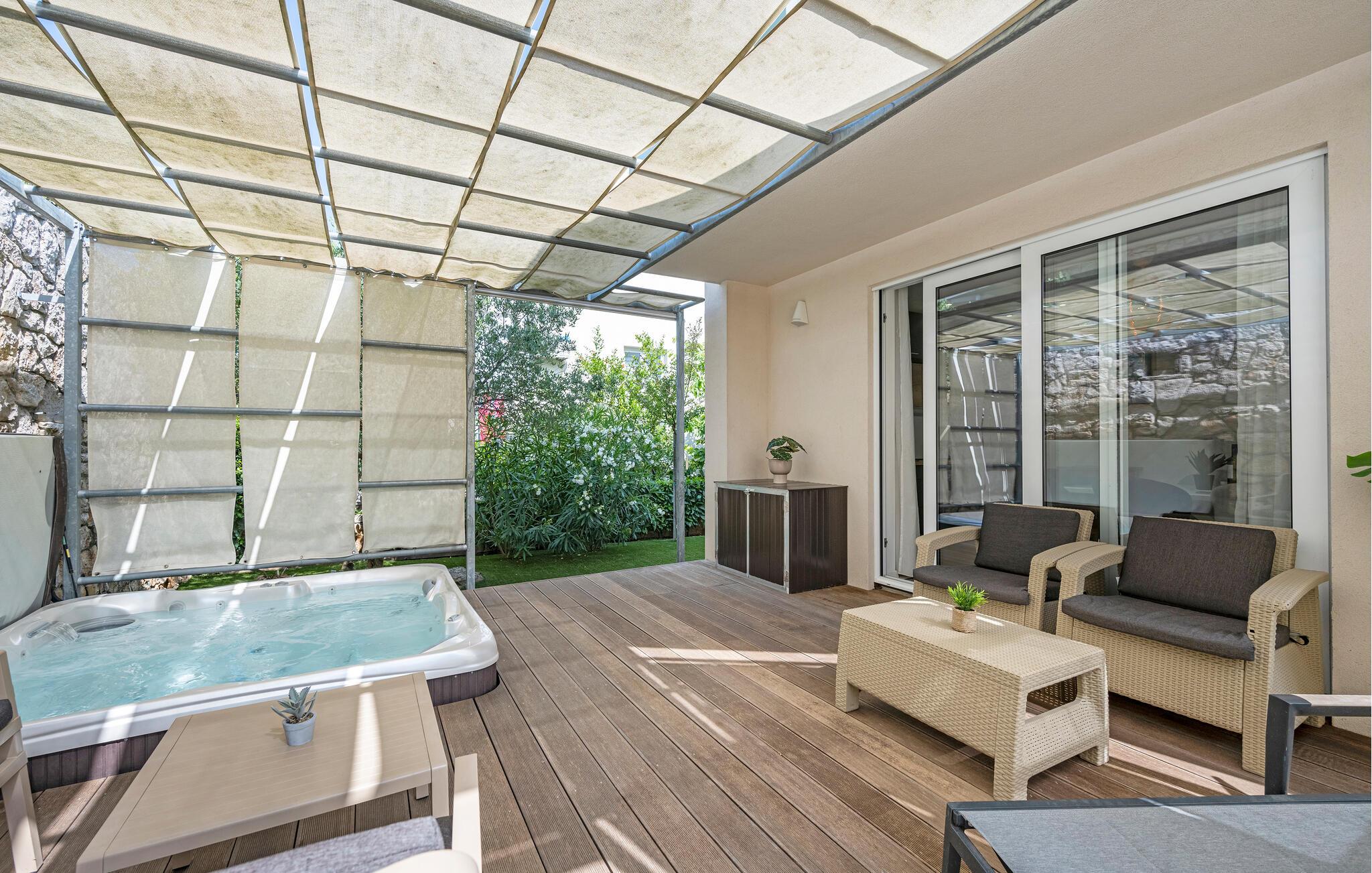 Forkæl jer selv med en behagelig pause nær stranden i denne moderne ferielejlighed med spabad.