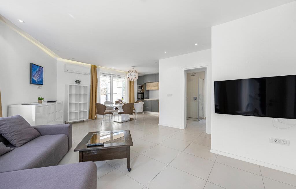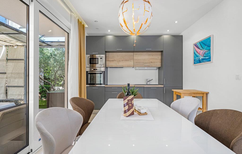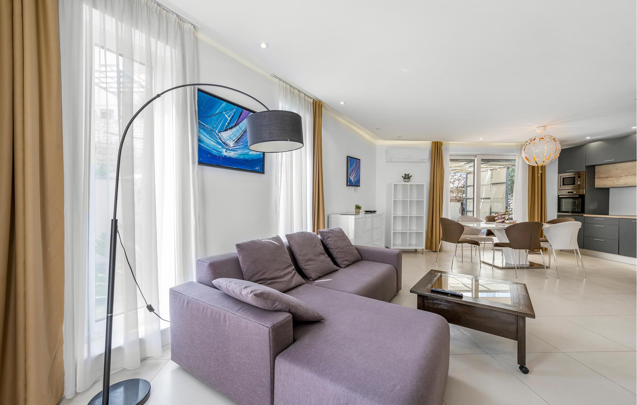 Velkommen til denne lyse og smagfuldt møblerede ferielejlighed, kun en kort gåtur fra havet, der lægger op til afslappende dage med familien. Glæd jer til at lave mad i det åbne køkken og nyde hyggelige måltider ved det indbydende spisebord. Om aftenen kan I synke ned i den behagelige sofa, streame en god serie eller hengive jer til en god bog, som I ikke har tid til i jeres dagligdag.