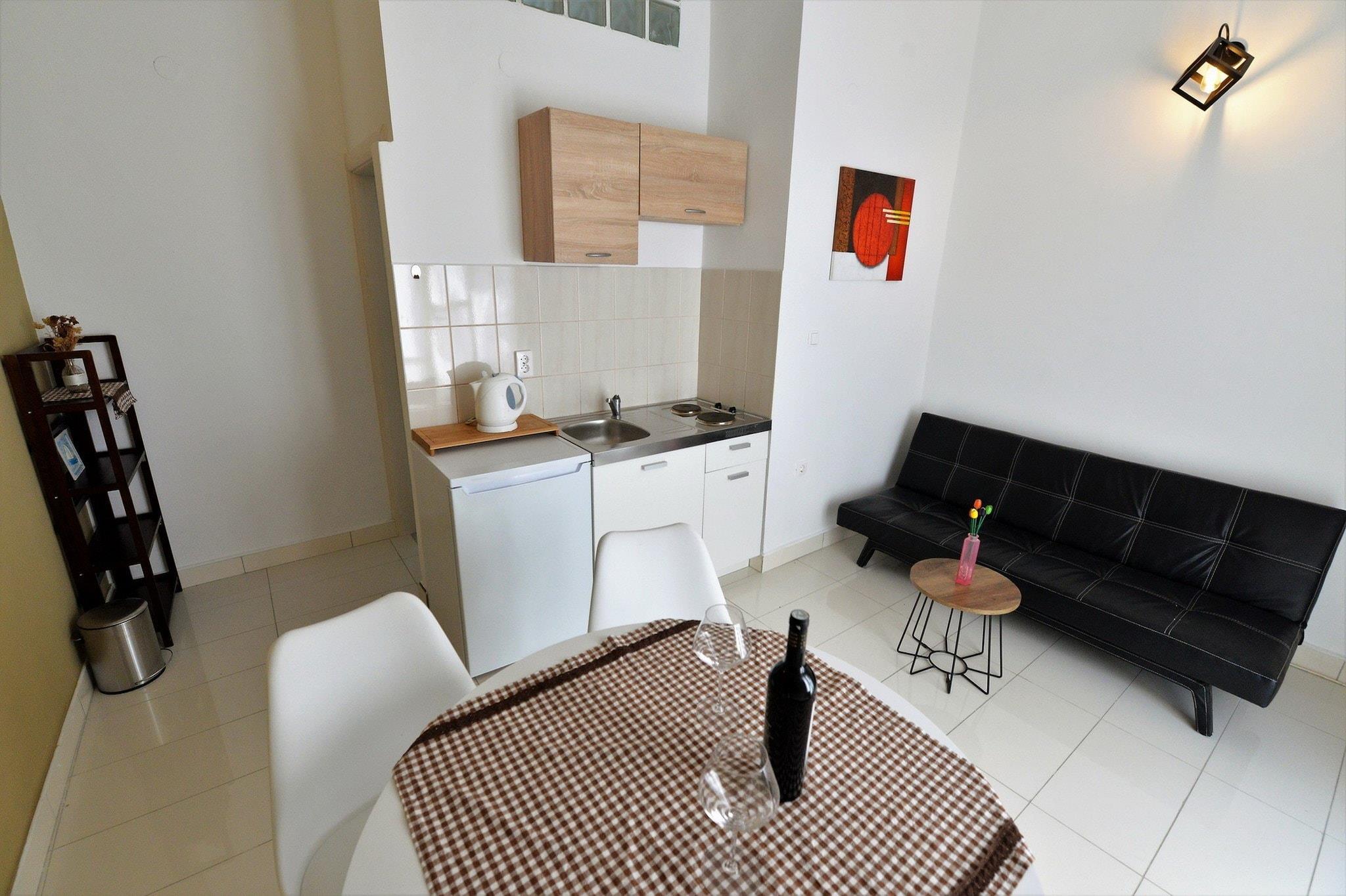 Apartments Helena ligger på øen Murter, en ø i det nordlige Dalmatien, der er forbundet med fastlandet med en bro på et sted Tisno.Apartments Helena tilbyder indkvartering i to enheder med egen balkon og havudsigt. Denne ejendom ligger kun 10 m fra stranden, hvilket gør dette sted til et perfekt sted for en dejlig og afslappende familie- eller venners ferie. Den har aircondition samt gratis Wi-Fi overalt på ejendommen. Bagageopbevaring er mulig før for at tjekke ind. Kæledyr er tilladt med varsel.Ejerens café er beliggende i bygningens stueetage, hver weekend i juli og august er der levende musik.Denne etværelses lejlighed med balkon og havudsigt kan rumme to personer. værelse er kombineret med spiseplads og køkken Køkkenet er udstyret med køleskab, vandkedel, mikroovn, komfur, ventilator, køkkenredskaber og brødrister. Privat badeværelse med bruser og toilet Strygejern og strygebræt står til din rådighed. lejligheden ligger på anden sal. Grundet ejendommenes gode beliggenhed kan alt hvad du måtte have brug for under dit ophold findes i området Restauranter og barer findes inden for 50 m fra ejendommen. Købmand ligger 30 m væk. Den nærmeste bea ch er kun 10 m væk. Lufthavnen ligger 76 km fra ejendommen.