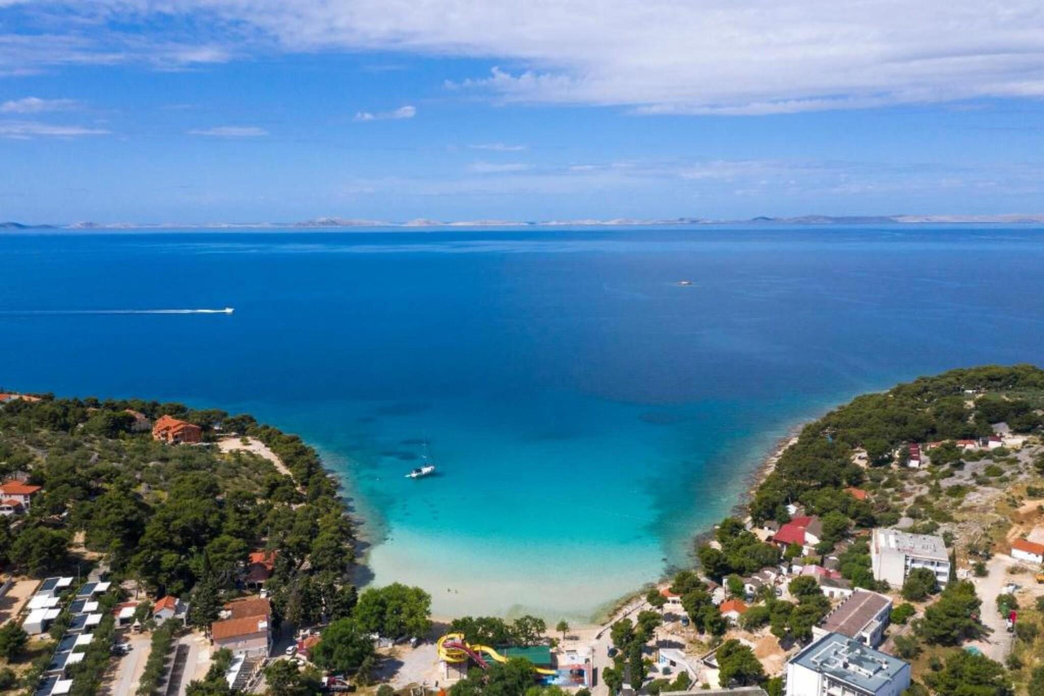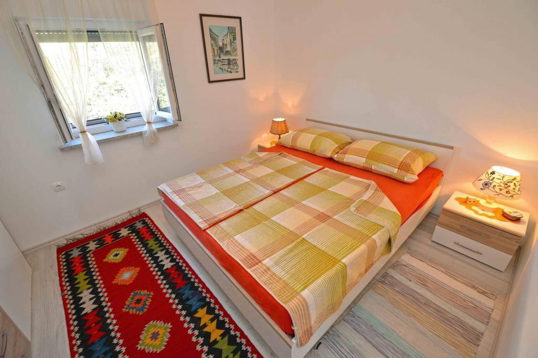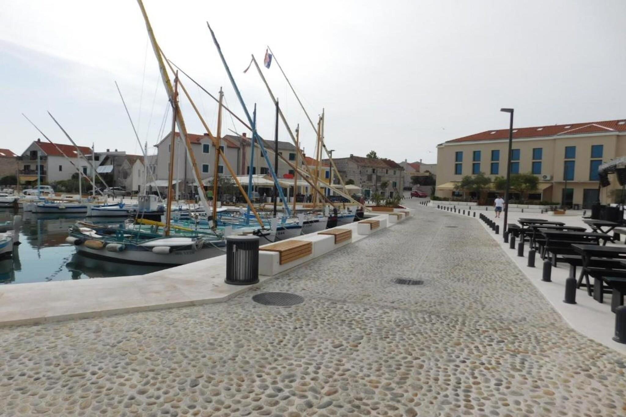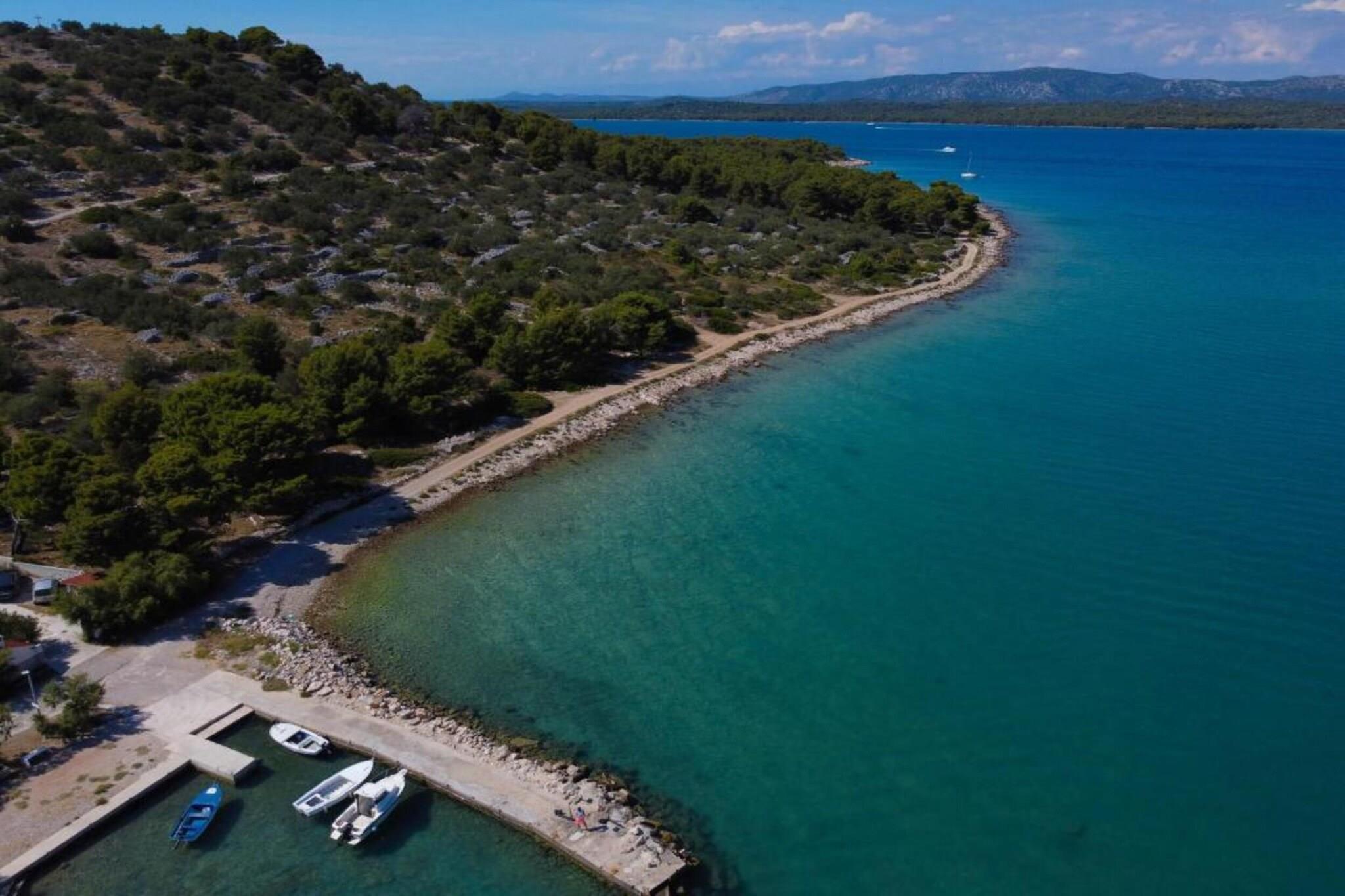 Dette charmerende og veludstyrede feriehus med to soveværelser i Murter er på 56 m² og har komfortabel plads til op til fire gæster, hvilket gør det ideelt for par eller små familier. Indkvarteringen tilbyder en privat terrasse med havemøbler, hvilket skaber det perfekte sted til morgenkaffe eller aftenafslapning. Med faciliteter som aircondition, satellit-tv, Wi-Fi, vaskemaskine og udendørs parkering på stedet er det designet til at give et komfortabelt og problemfrit ophold. Lejligheden er beliggende i et roligt, familievenligt område, kun 300 meter fra den populære Restaurant Kod Ive og 500 meter fra et lokalt Konzum-supermarked. Gæsterne kan nå både sand- og klippekysten ved stranden Slanica med en kort gåtur på 650 meter, hvilket giver nem adgang til sol og hav. For dem, der ønsker at udforske yderligere, ligger Aquapark Biograd 41 km væk, mens de naturskønne vidundere ved Vrana-søen og Nationalparken Krka kan nås inden for en radius af 45 km. Zadar Lufthavn, inklusive dens internationale terminal, ligger 75 km væk. Det åbne køkken med gaskomfur er fuldt udstyret med køleskab, mikrobølgeovn, fryser, kaffemaskine, brødrister, elkedel og alt nødvendigt køkkengrej og bestik, hvilket gør det nemt og bekvemt at lave mad selv. Der er også hårtørrer og strygejern til rådighed for ekstra komfort. Denne lejlighed, der ligger tæt på strande, restauranter og naturattraktioner, er et praktisk og fredeligt tilflugtssted på den dalmatiske kyst.