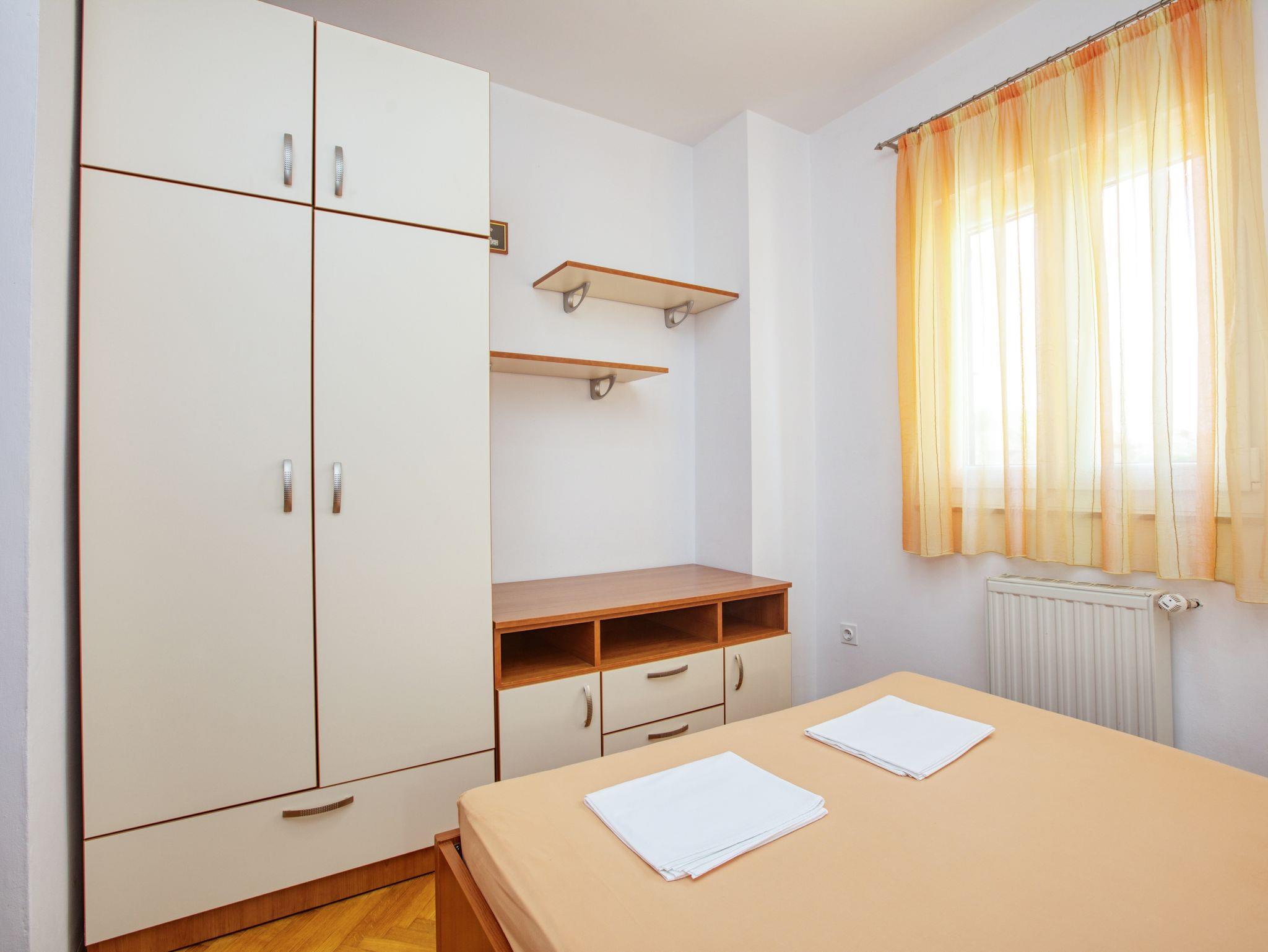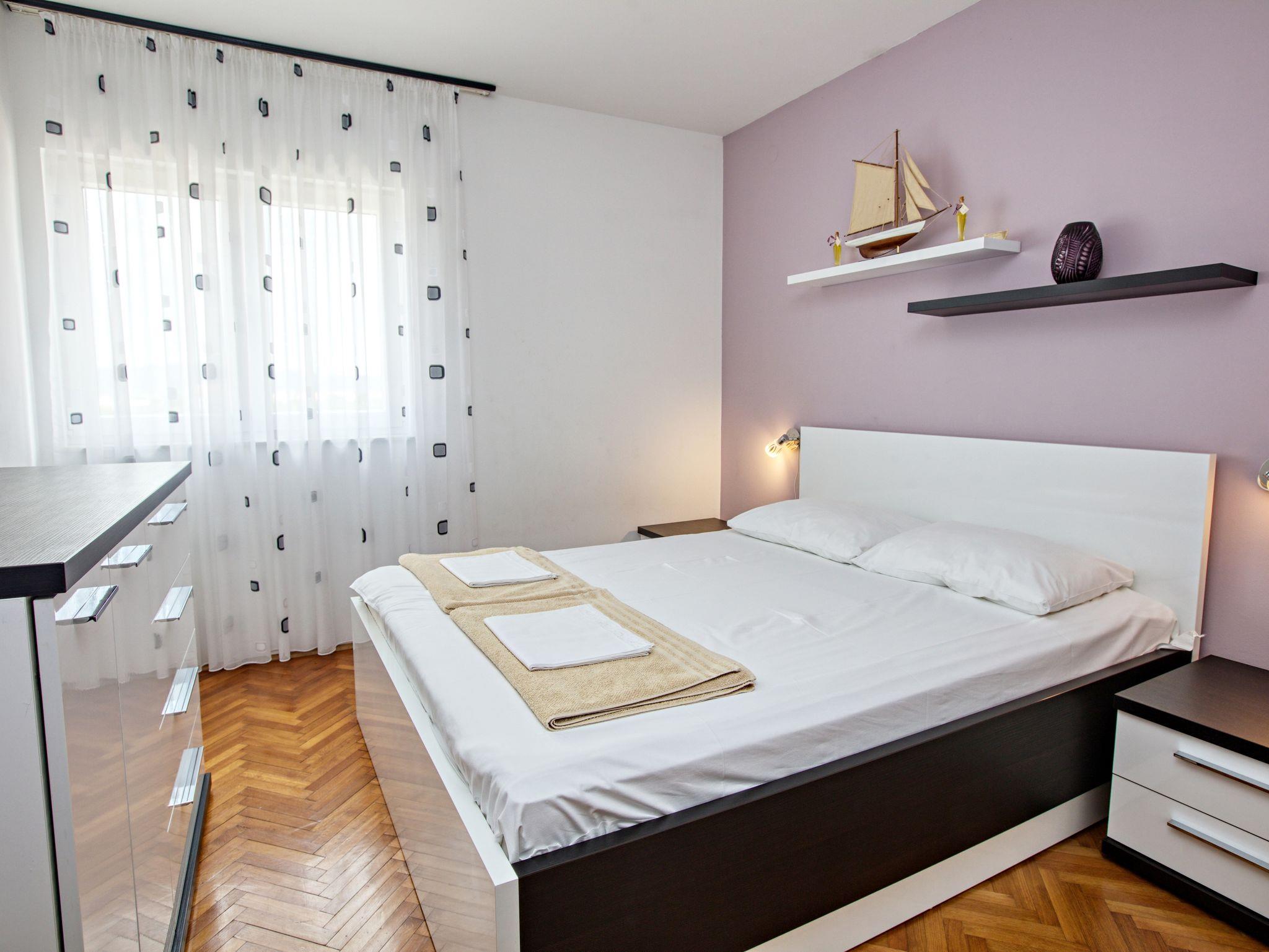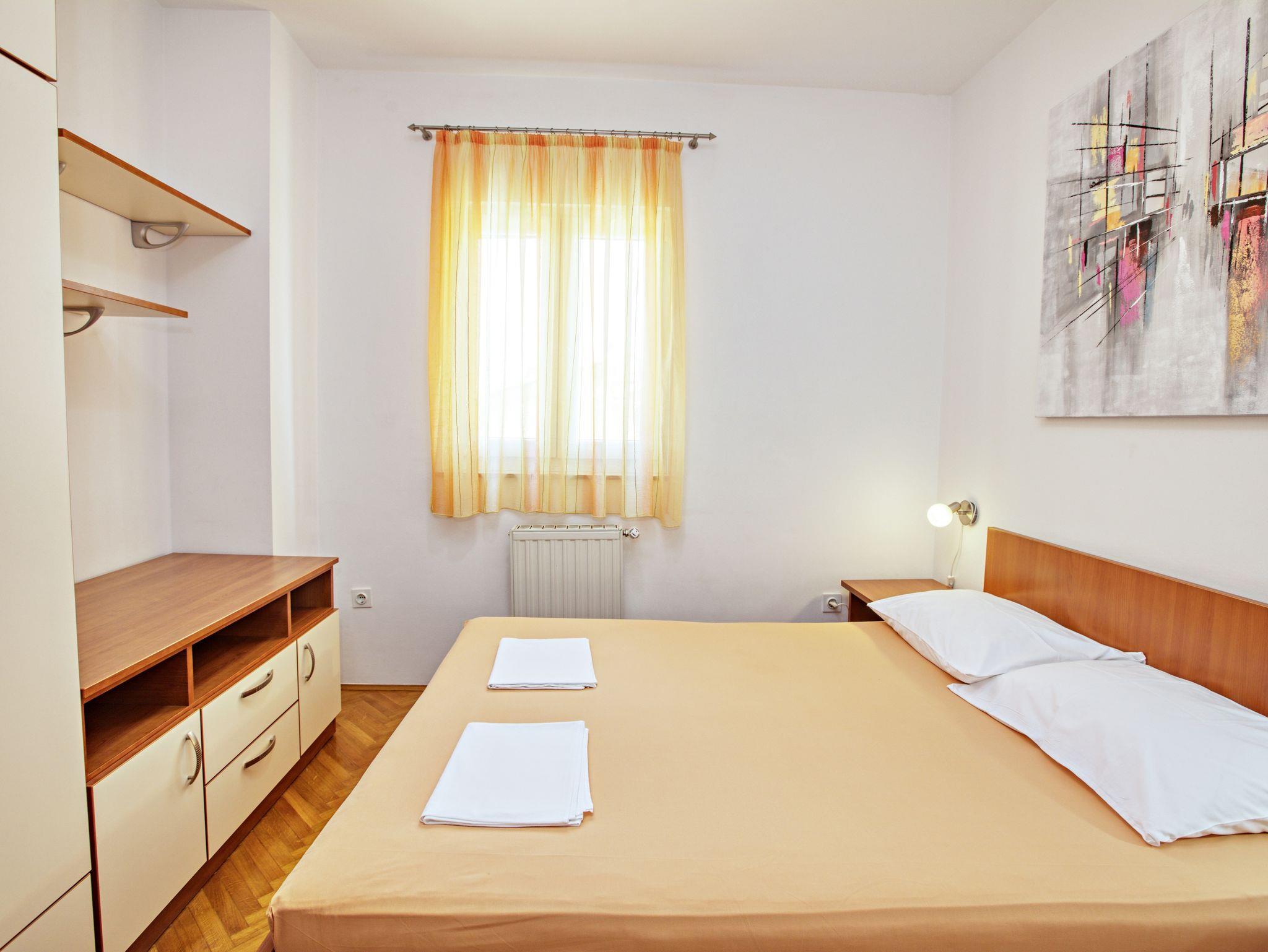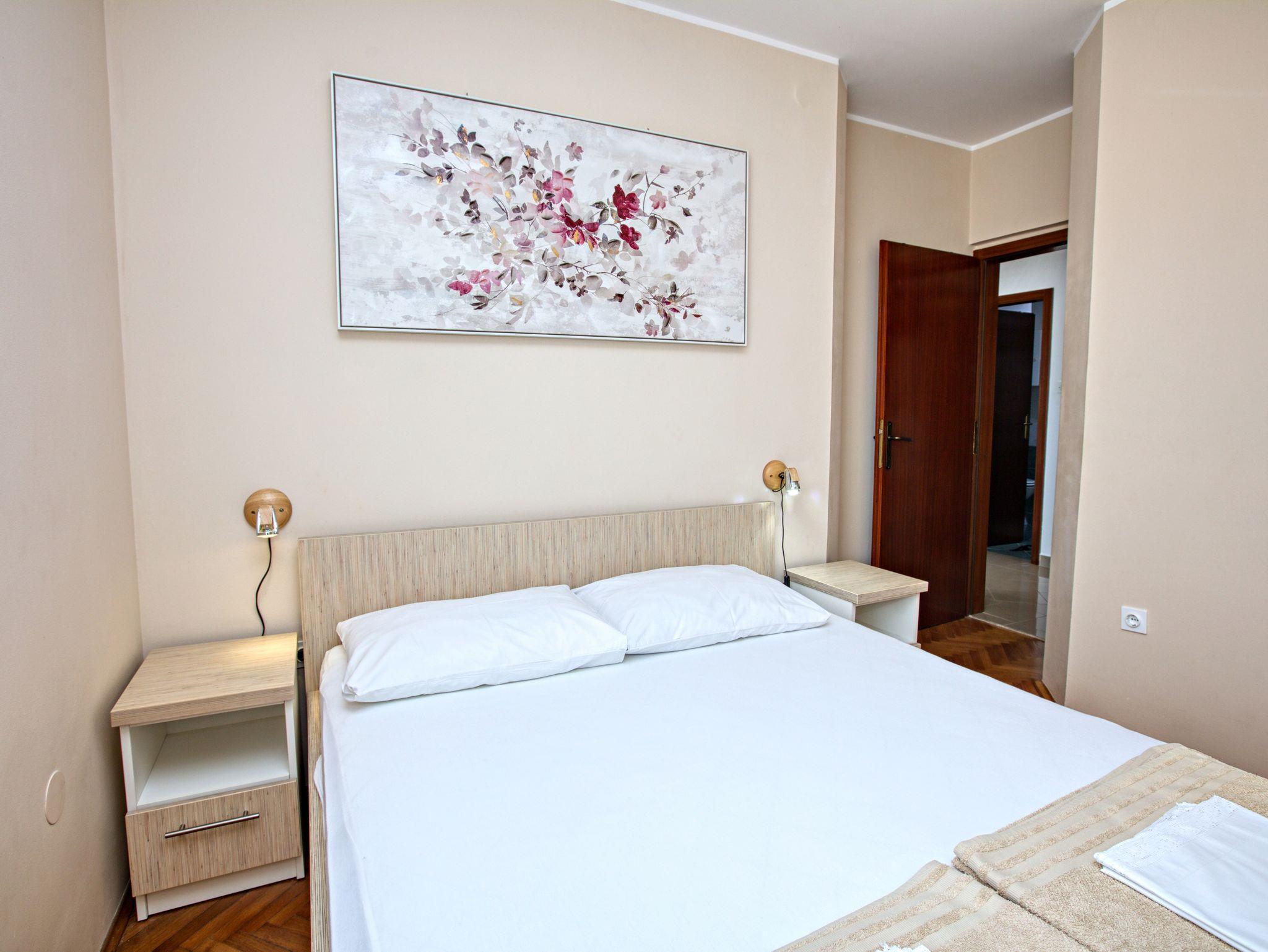 Ferienwohnung bietet Platz für 8 Gäste. Die Betten sind in Schlafzimmern, die es 3 gibt, und in Wohnzimmer, innerhalb einer Gesamtfläche von 78m2, angeordnet. Die Gäste haben eine eigene Terrasse zur Verfügung, auf der sie in warmen Sommernächten genießen können. Das Apartment bietet Meerblick. Es ist erlaubt, Speisen auf dem Gemeinschafts-Grill vorzubereiten. In der Unterkunftseinheit besteht die Möglichkeit des Mitbringens von Haustieren gegen Aufpreis. IM PREIS INBEGRIFFEN: Kurtaxe, Endreinigung, Klimatisierung, Zentralheizung, Parkplatz, Internet, Bügeleisen, Bügelbrett, Föhn. VERBINDLICHE ZUSÄTZLICHE KOSTEN: Aufzahlung für Kurzaufenthalte (prozentualer Zuschlag pro Nächtigungsanzahl: 30% - 1, 20% - 2, 10% - 3). UNVERBINDLICHE ZUSÄTZLICHE KOSTEN: Wäschewaschen (5,00 € Waschen), Haustiere (20,00 € pro Nacht). Die Verfügbarkeit zusätzlicher Dienstleistungen in Ihrem reservierten Termin und die Preise derselben (falls nicht aufgeführt) müssen im Voraus überprüft werden. Zusätzliche Dienstleistungen die in der Zahlungsaufforderung nicht aufgeführt sind werden direkt beim Vermieter bezahlt, angenommen der Gast nutzt auch diese.