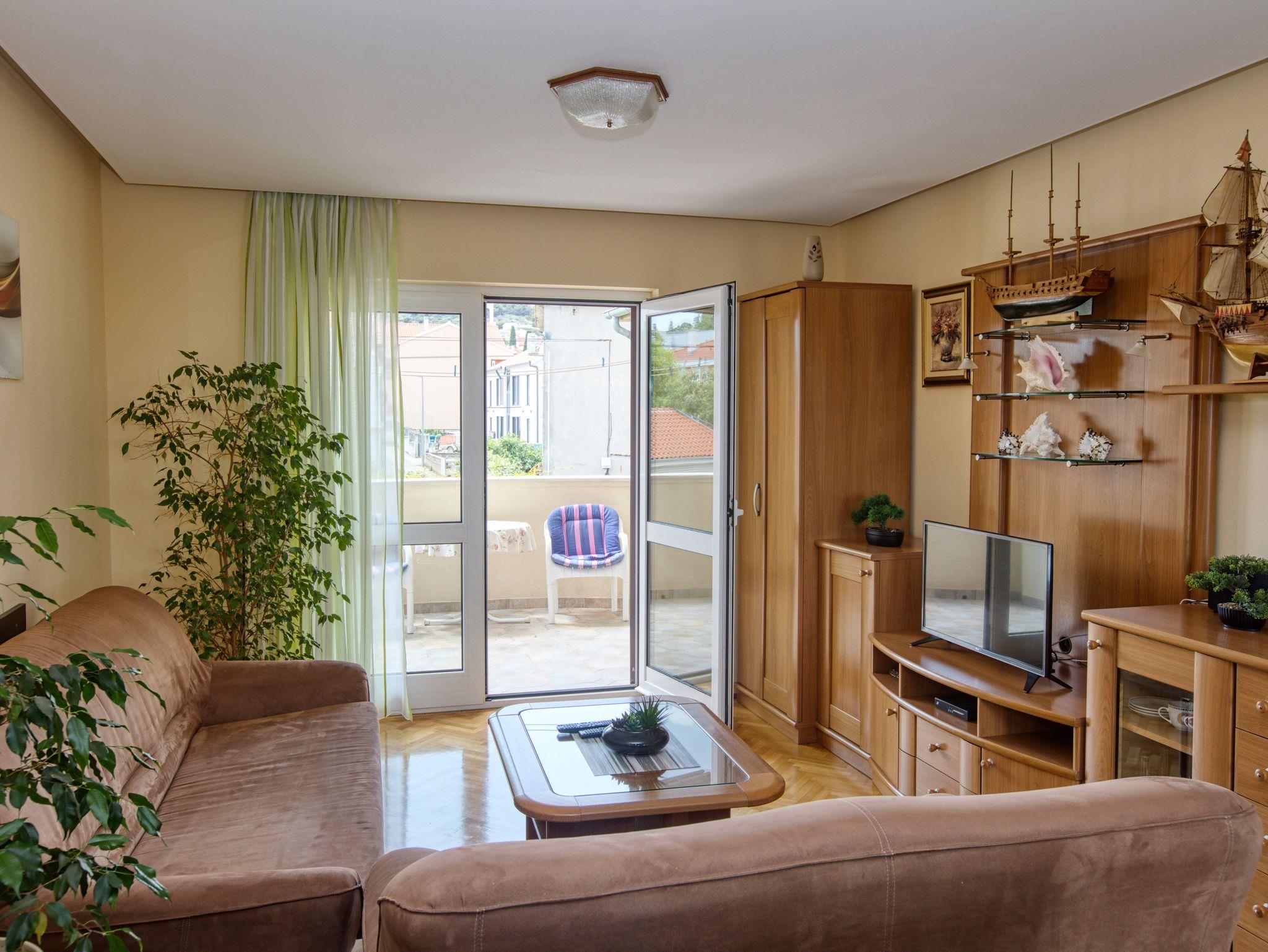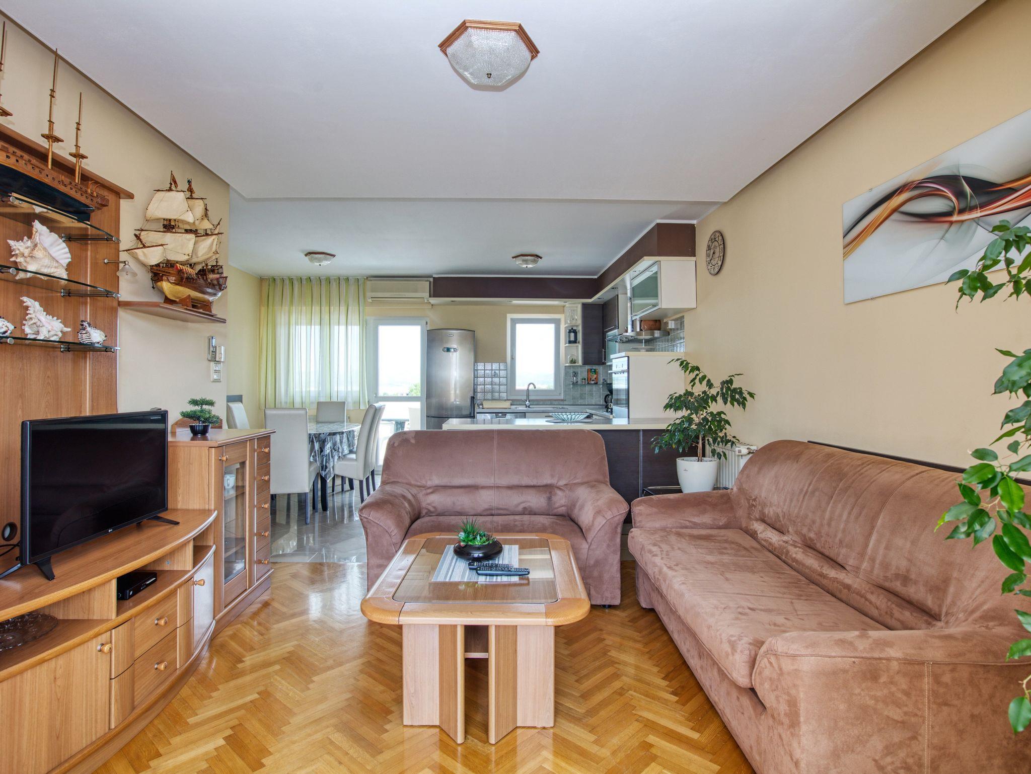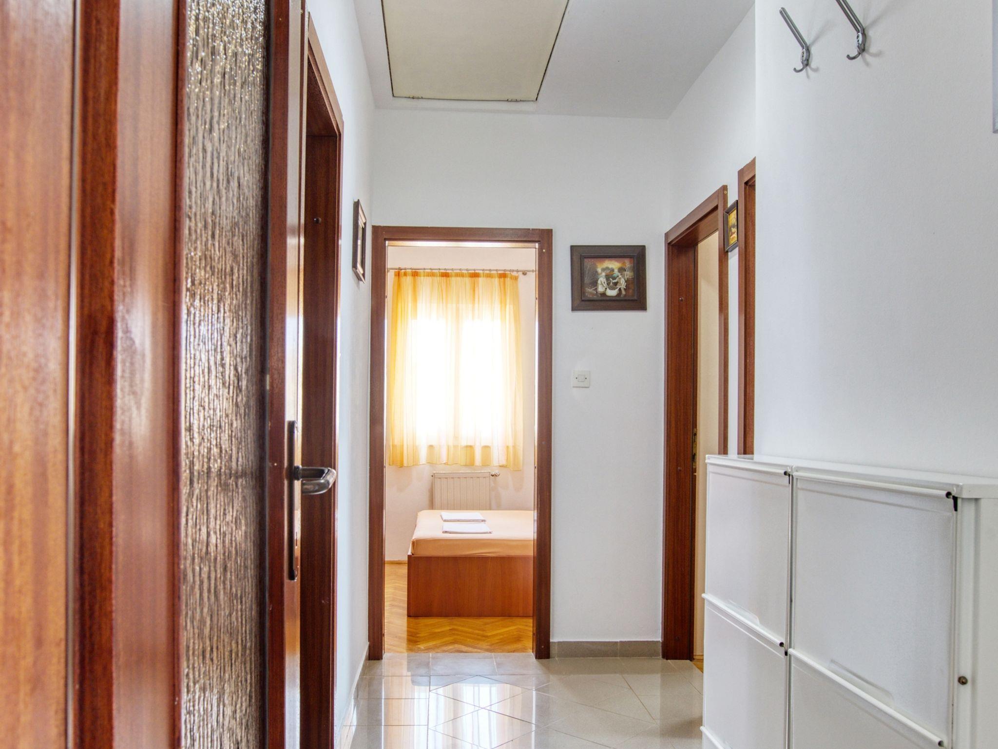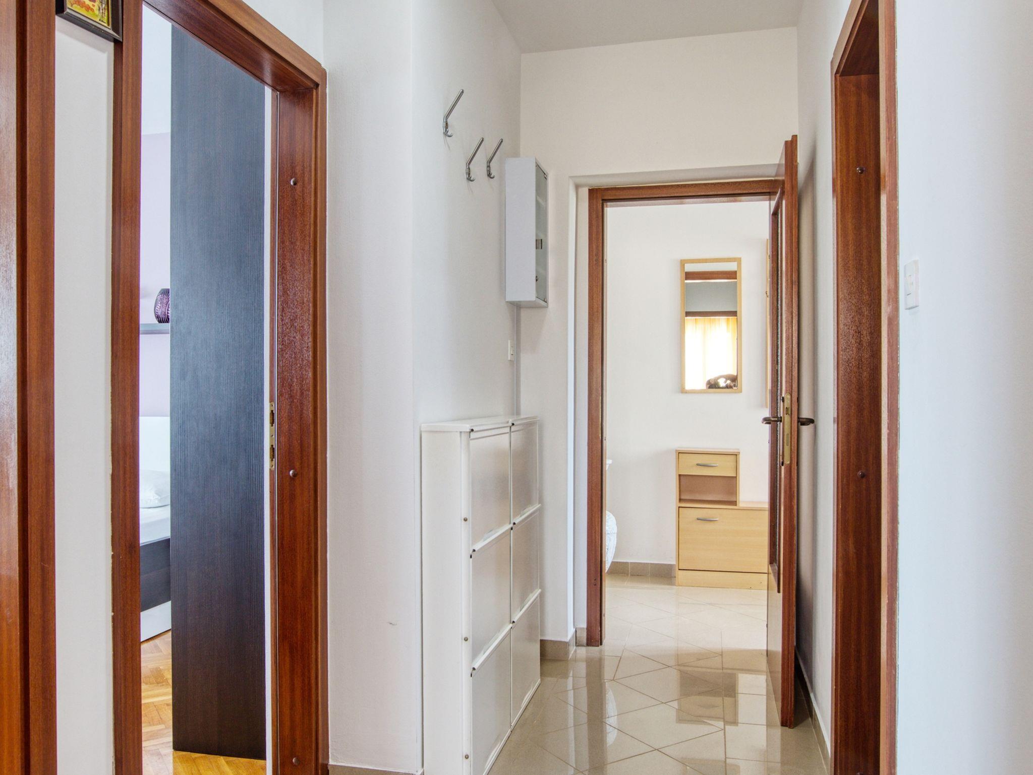 Ferienwohnung bietet Platz für 8 Gäste. Die Betten sind in Schlafzimmern, die es 3 gibt, und in Wohnzimmer, innerhalb einer Gesamtfläche von 78m2, angeordnet. Die Gäste haben eine eigene Terrasse zur Verfügung, auf der sie in warmen Sommernächten genießen können. Das Apartment bietet Meerblick. Es ist erlaubt, Speisen auf dem Gemeinschafts-Grill vorzubereiten. In der Unterkunftseinheit besteht die Möglichkeit des Mitbringens von Haustieren gegen Aufpreis. IM PREIS INBEGRIFFEN: Kurtaxe, Endreinigung, Klimatisierung, Zentralheizung, Parkplatz, Internet, Bügeleisen, Bügelbrett, Föhn. VERBINDLICHE ZUSÄTZLICHE KOSTEN: Aufzahlung für Kurzaufenthalte (prozentualer Zuschlag pro Nächtigungsanzahl: 30% - 1, 20% - 2, 10% - 3). UNVERBINDLICHE ZUSÄTZLICHE KOSTEN: Wäschewaschen (5,00 € Waschen), Haustiere (20,00 € pro Nacht). Die Verfügbarkeit zusätzlicher Dienstleistungen in Ihrem reservierten Termin und die Preise derselben (falls nicht aufgeführt) müssen im Voraus überprüft werden. Zusätzliche Dienstleistungen die in der Zahlungsaufforderung nicht aufgeführt sind werden direkt beim Vermieter bezahlt, angenommen der Gast nutzt auch diese.