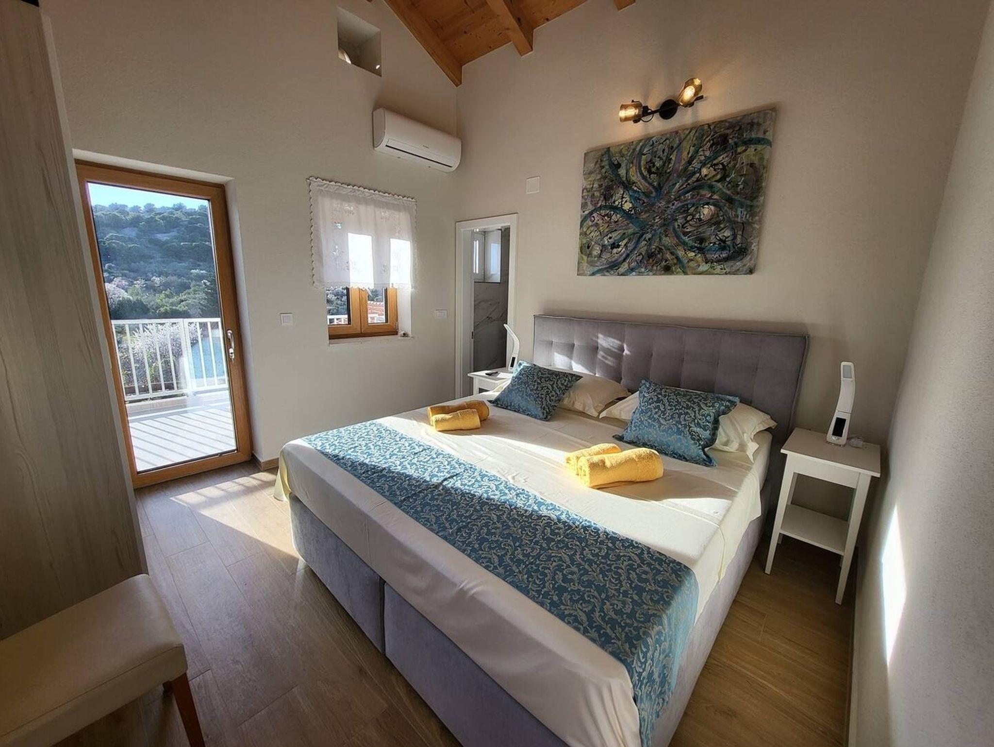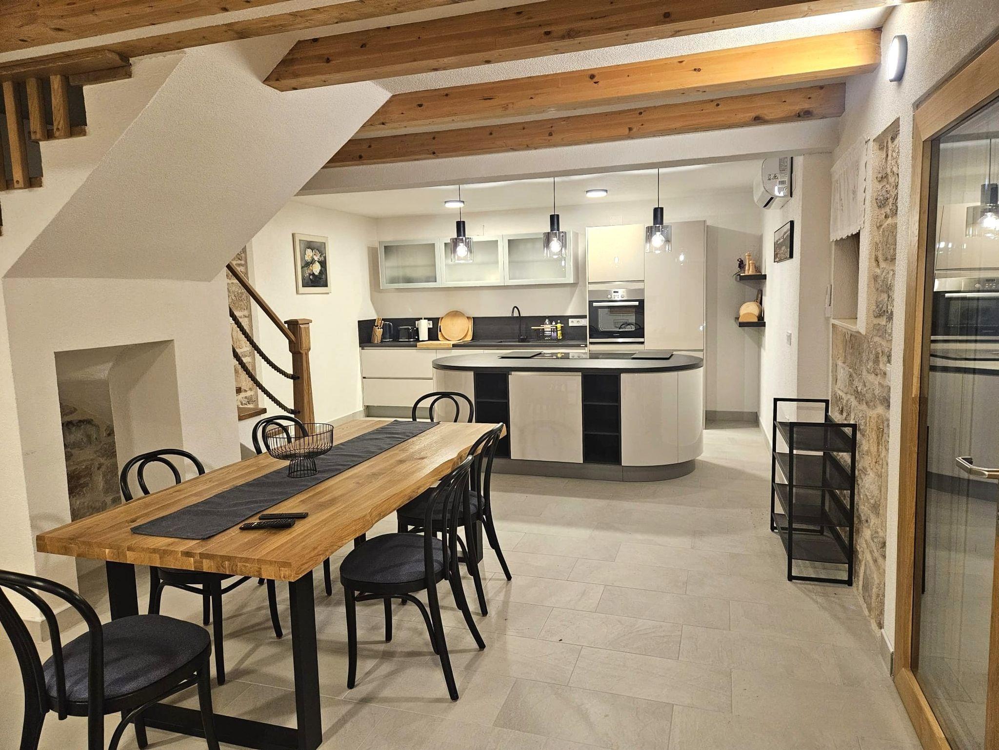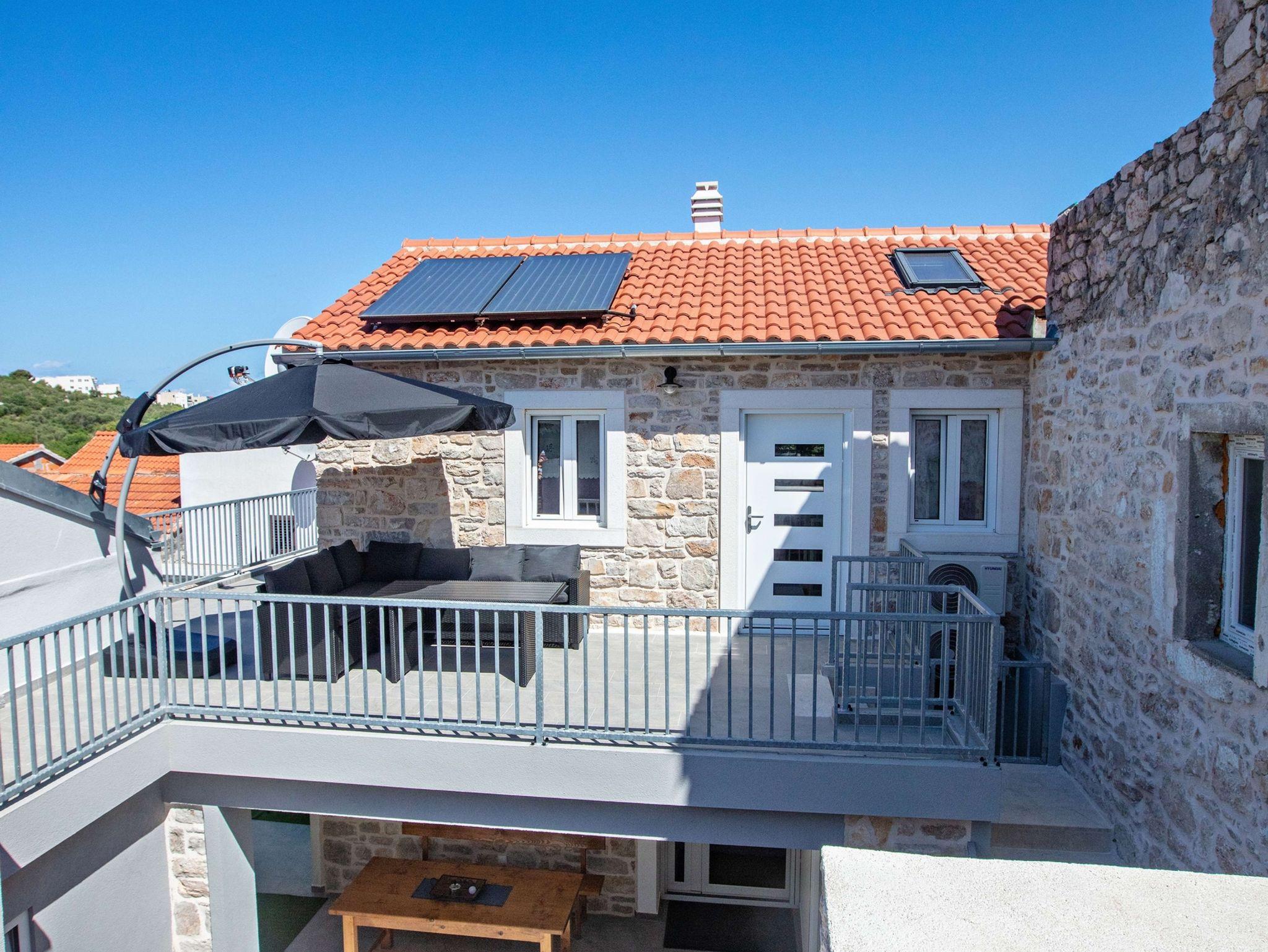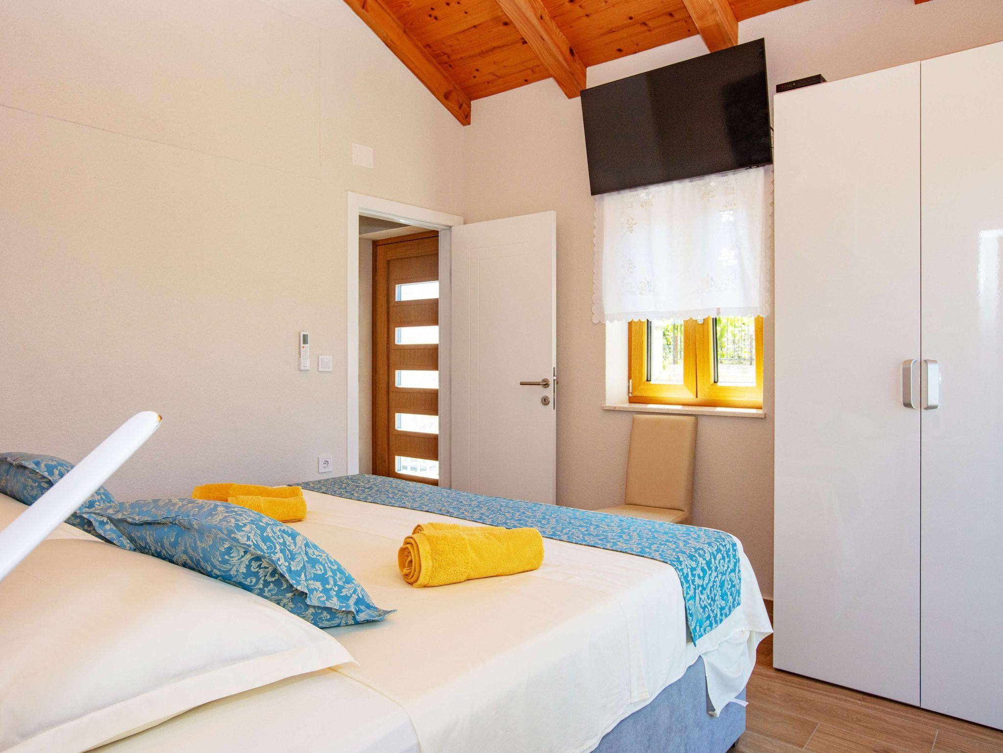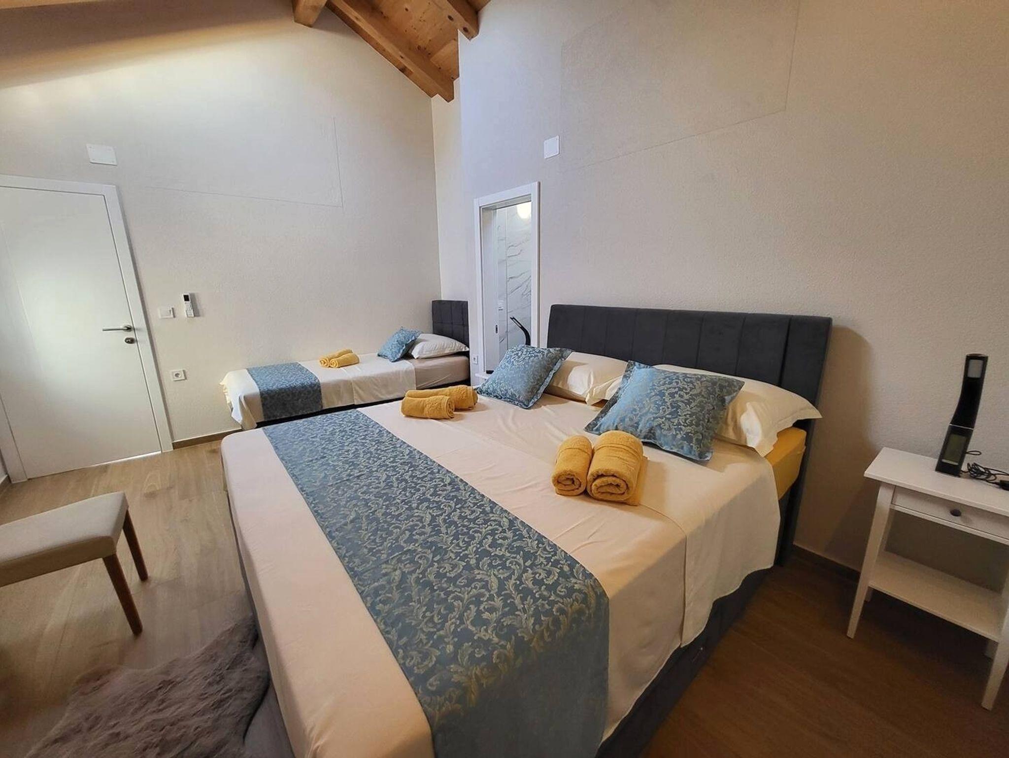 Haus bietet Platz für 5 Gäste. Die Betten sind in Schlafzimmern, die es 2 gibt, innerhalb einer Gesamtfläche von 90m2, angeordnet. Die Gäste haben eine eigene Terrasse zur Verfügung, auf der sie in warmen Sommernächten genießen können. Für vollen Genuss und Entspannung gibt es einen privaten Grill für Gäste dieser Unterkunft. Während ihres Aufenthalts können sich Gäste im privaten Schwimmbad entspannen. IM PREIS INBEGRIFFEN: Kurtaxe, Endreinigung, Klimatisierung, Pool, Parkplatz, Internet, Bügeleisen, Bügelbrett, Föhn. VERBINDLICHE ZUSÄTZLICHE KOSTEN: Aufzahlung für Kurzaufenthalte (prozentualer Zuschlag pro Nächtigungsanzahl: 30% - 1, 20% - 2, 10% - 3). Die Verfügbarkeit zusätzlicher Dienstleistungen in Ihrem reservierten Termin und die Preise derselben (falls nicht aufgeführt) müssen im Voraus überprüft werden. Zusätzliche Dienstleistungen die in der Zahlungsaufforderung nicht aufgeführt sind werden direkt beim Vermieter bezahlt, angenommen der Gast nutzt auch diese. Ermäßigung auf den Grundpreis: Gratistag 14=13 (bei einem Aufenthalt von 14 Tagen oder mehr erhalten Sie einen Gratistag für den Aufenthalt bis 31.12.26).