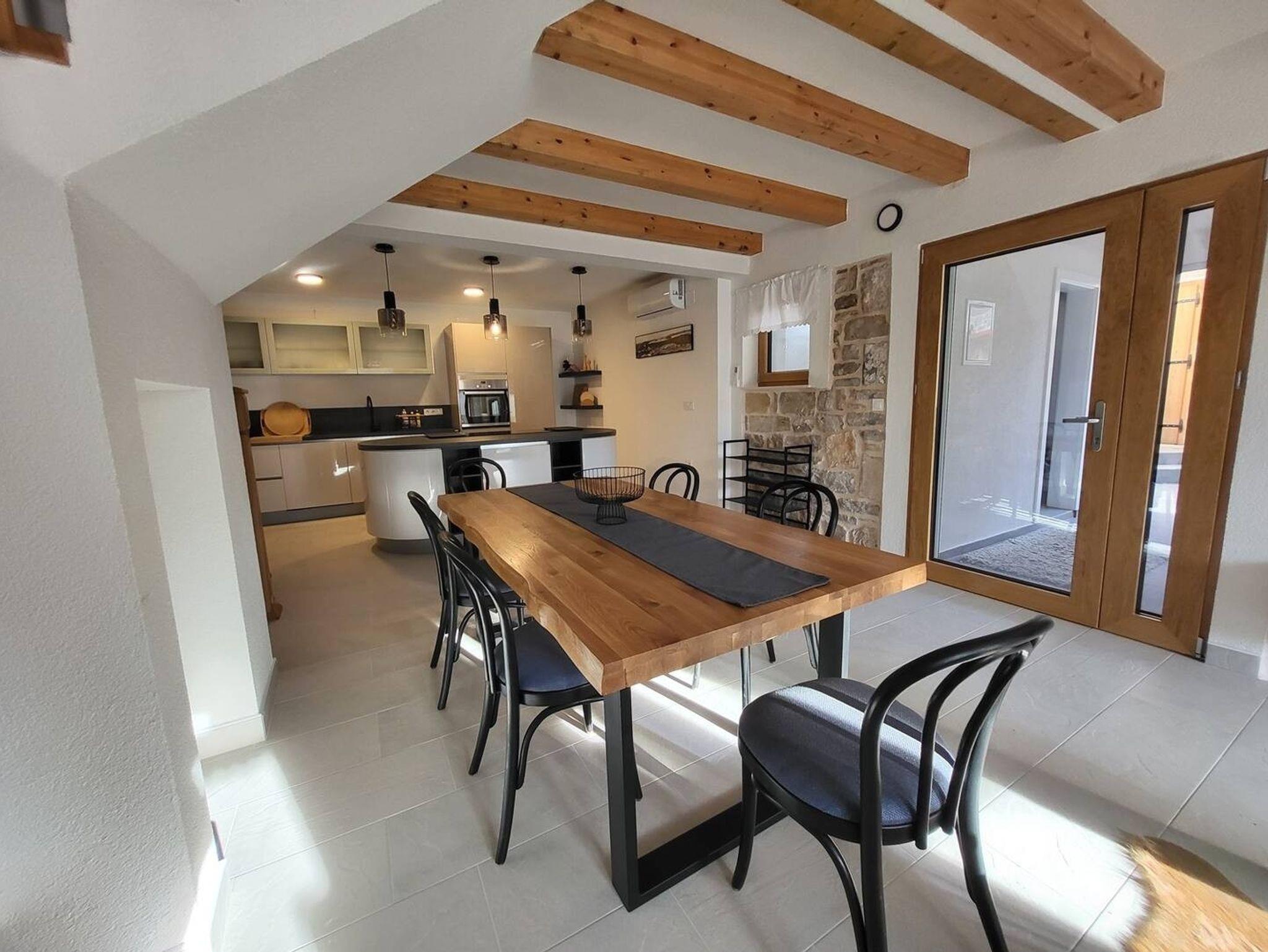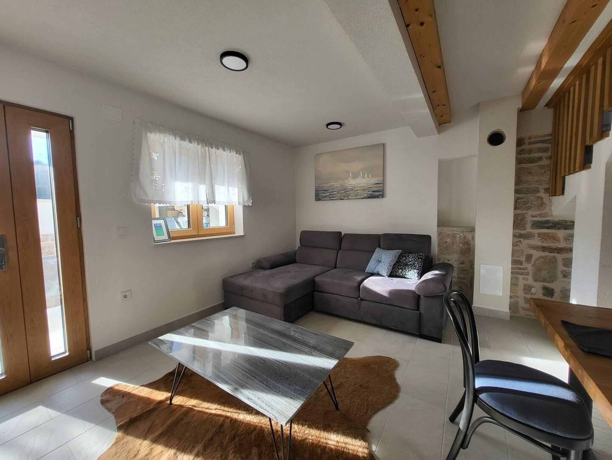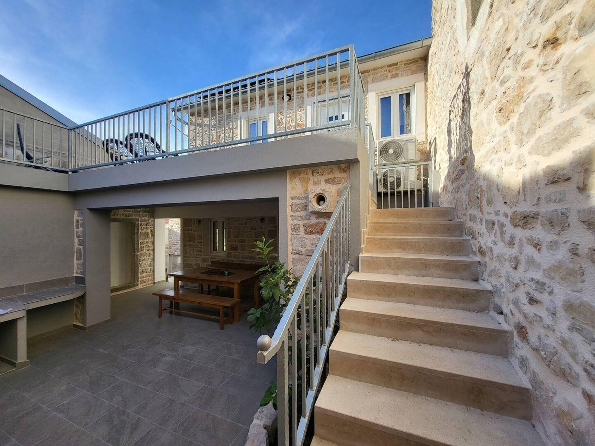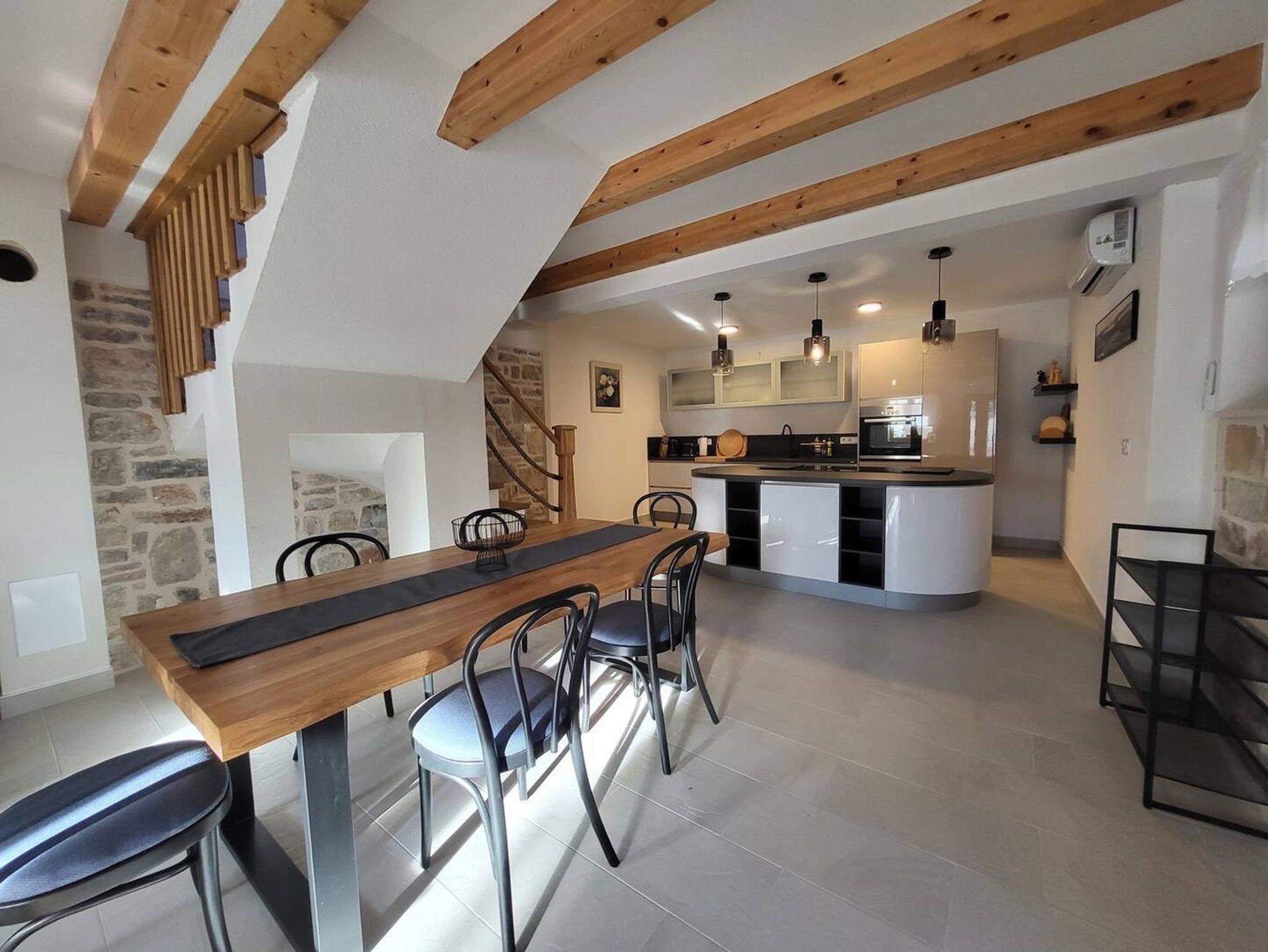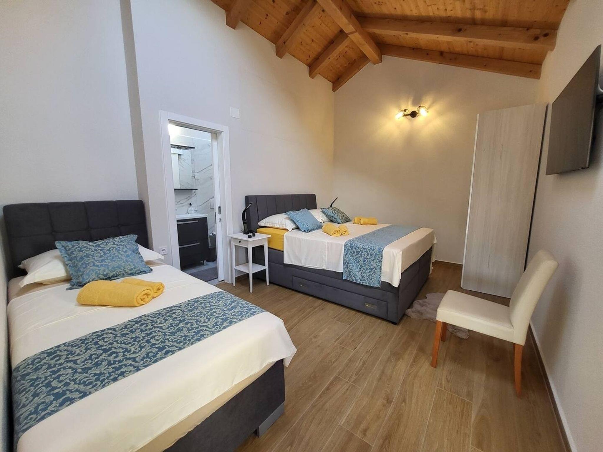 Haus bietet Platz für 5 Gäste. Die Betten sind in Schlafzimmern, die es 2 gibt, innerhalb einer Gesamtfläche von 90m2, angeordnet. Die Gäste haben eine eigene Terrasse zur Verfügung, auf der sie in warmen Sommernächten genießen können. Für vollen Genuss und Entspannung gibt es einen privaten Grill für Gäste dieser Unterkunft. Während ihres Aufenthalts können sich Gäste im privaten Schwimmbad entspannen. IM PREIS INBEGRIFFEN: Kurtaxe, Endreinigung, Klimatisierung, Pool, Parkplatz, Internet, Bügeleisen, Bügelbrett, Föhn. VERBINDLICHE ZUSÄTZLICHE KOSTEN: Aufzahlung für Kurzaufenthalte (prozentualer Zuschlag pro Nächtigungsanzahl: 30% - 1, 20% - 2, 10% - 3). Die Verfügbarkeit zusätzlicher Dienstleistungen in Ihrem reservierten Termin und die Preise derselben (falls nicht aufgeführt) müssen im Voraus überprüft werden. Zusätzliche Dienstleistungen die in der Zahlungsaufforderung nicht aufgeführt sind werden direkt beim Vermieter bezahlt, angenommen der Gast nutzt auch diese. Ermäßigung auf den Grundpreis: Gratistag 14=13 (bei einem Aufenthalt von 14 Tagen oder mehr erhalten Sie einen Gratistag für den Aufenthalt bis 31.12.26).