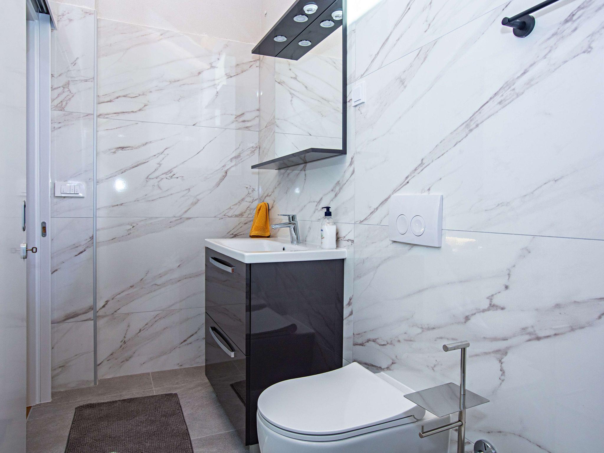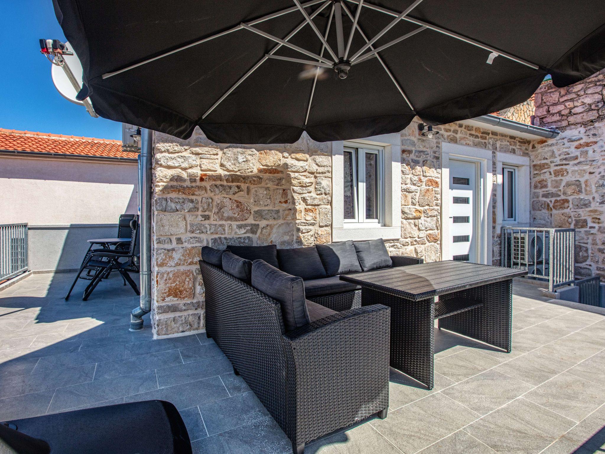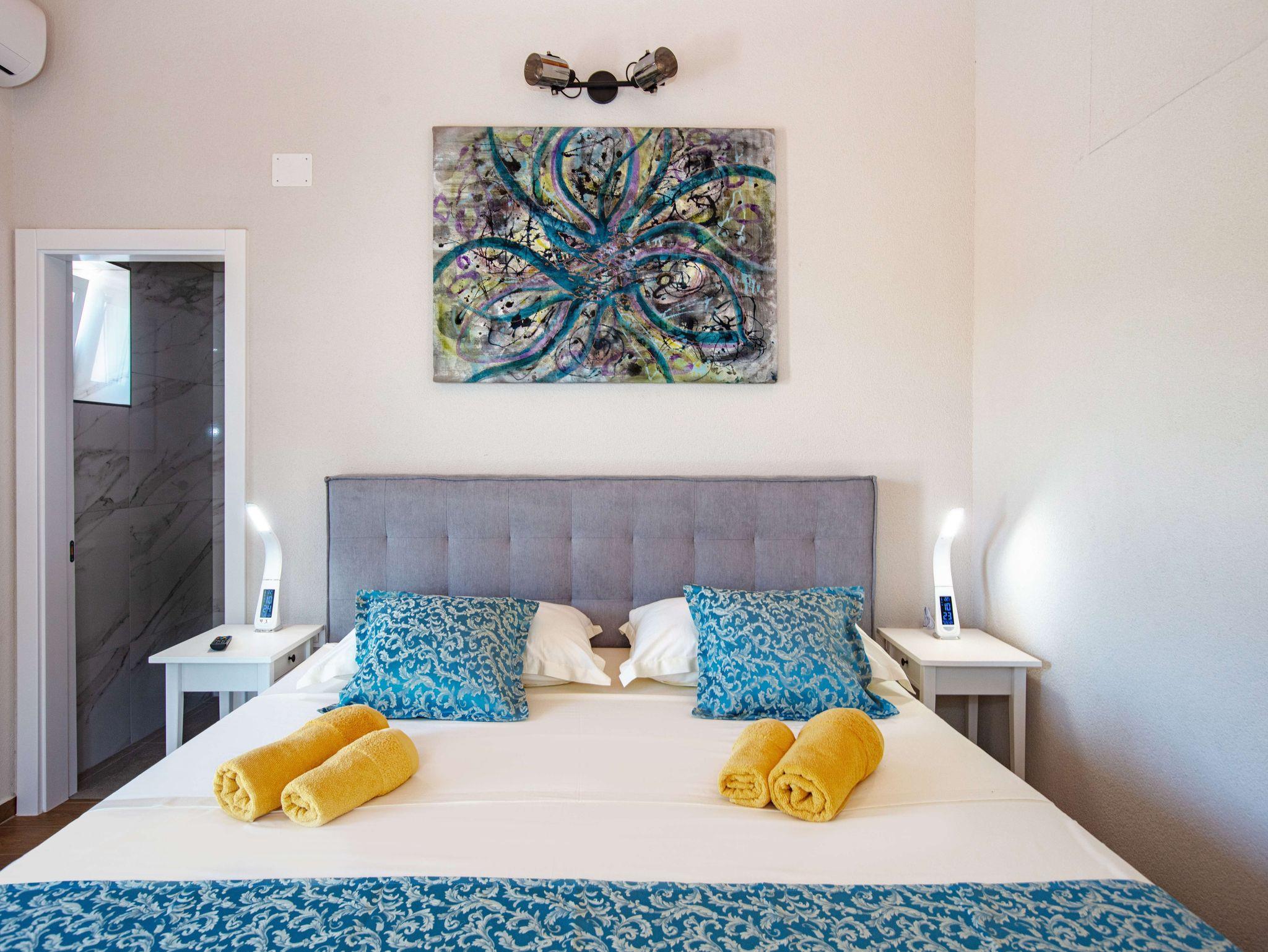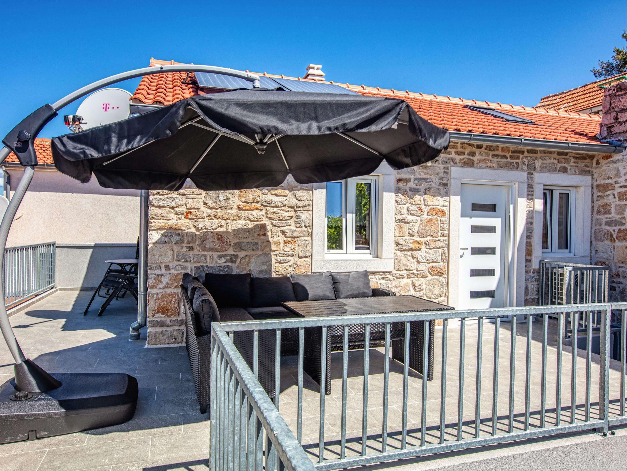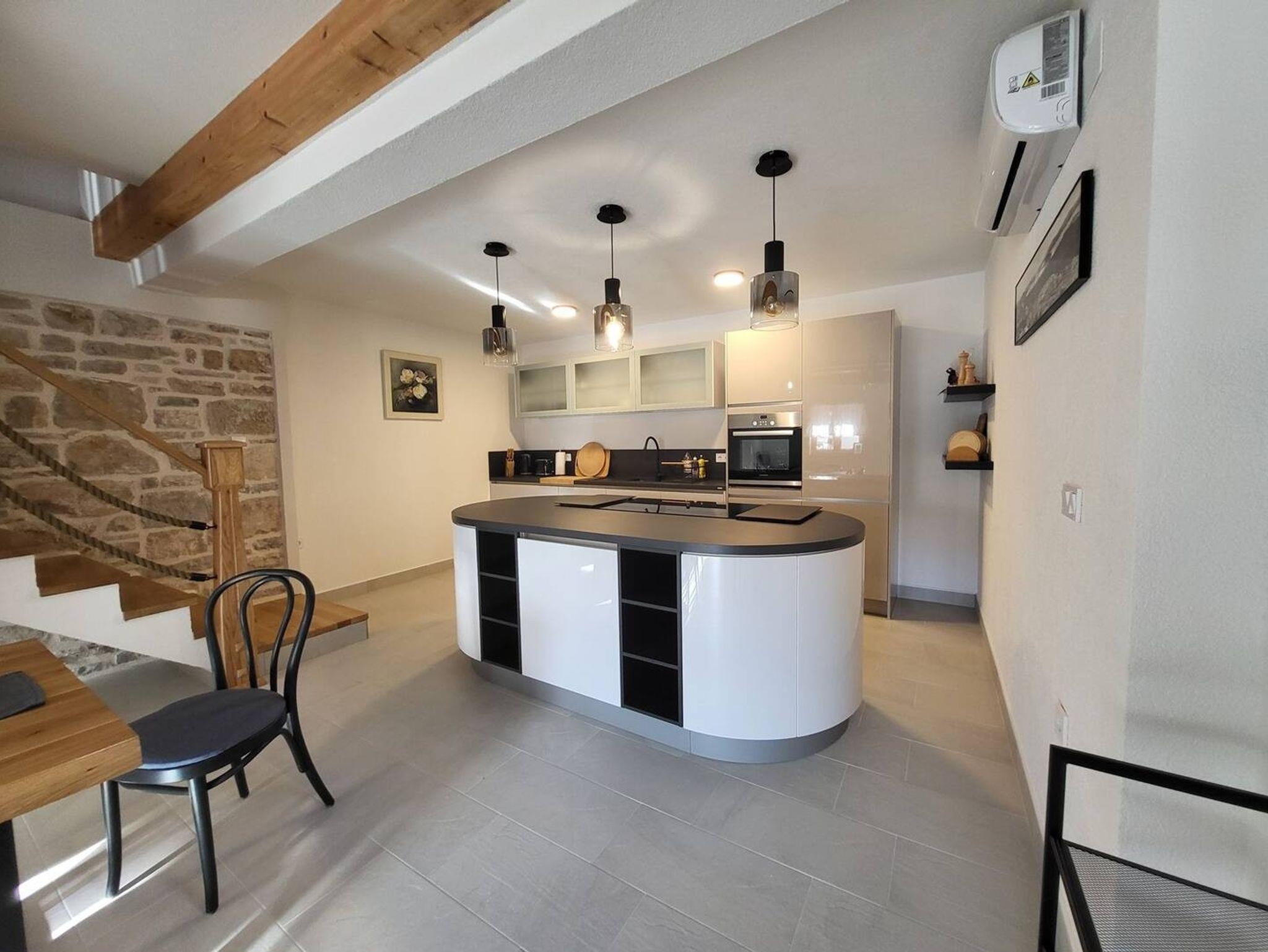 Haus bietet Platz für 5 Gäste. Die Betten sind in Schlafzimmern, die es 2 gibt, innerhalb einer Gesamtfläche von 90m2, angeordnet. Die Gäste haben eine eigene Terrasse zur Verfügung, auf der sie in warmen Sommernächten genießen können. Für vollen Genuss und Entspannung gibt es einen privaten Grill für Gäste dieser Unterkunft. Während ihres Aufenthalts können sich Gäste im privaten Schwimmbad entspannen. IM PREIS INBEGRIFFEN: Kurtaxe, Endreinigung, Klimatisierung, Pool, Parkplatz, Internet, Bügeleisen, Bügelbrett, Föhn. VERBINDLICHE ZUSÄTZLICHE KOSTEN: Aufzahlung für Kurzaufenthalte (prozentualer Zuschlag pro Nächtigungsanzahl: 30% - 1, 20% - 2, 10% - 3). Die Verfügbarkeit zusätzlicher Dienstleistungen in Ihrem reservierten Termin und die Preise derselben (falls nicht aufgeführt) müssen im Voraus überprüft werden. Zusätzliche Dienstleistungen die in der Zahlungsaufforderung nicht aufgeführt sind werden direkt beim Vermieter bezahlt, angenommen der Gast nutzt auch diese. Ermäßigung auf den Grundpreis: Gratistag 14=13 (bei einem Aufenthalt von 14 Tagen oder mehr erhalten Sie einen Gratistag für den Aufenthalt bis 31.12.26).
