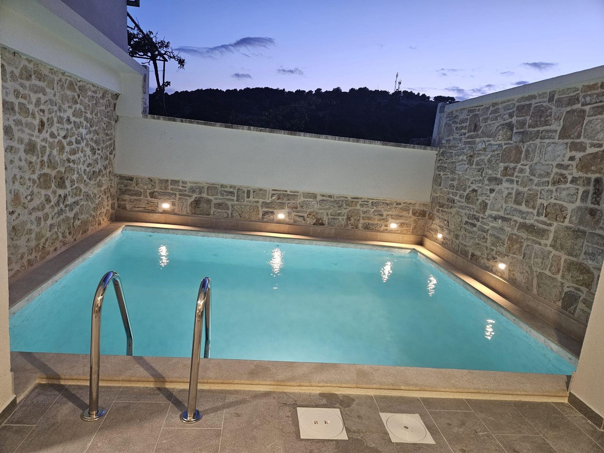 Umgebung des Objekts (Eingerichtet), Hof (30m2, Kinderbereich, Sitzbereich), Parkplatz (Anzahl der Parkplätze: 2, Entfernung vom Objekt: im Hof), Pool: privat, Dimensionen: 5m x 4.5m x 1.5m, Wassertyp: Süßwasser, Heizung: Ja, WiFi Internet, Föhn, Bügeleisen, Bügelbrett