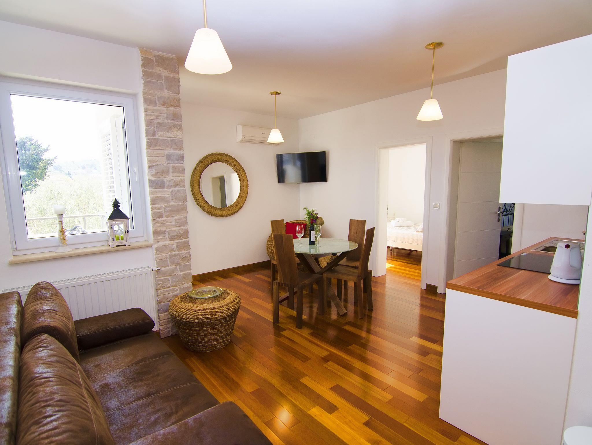 Ferienwohnung bietet Platz für 4 Gäste. Die Betten sind in Schlafzimmern, die es 2 gibt, innerhalb einer Gesamtfläche von 46m2, angeordnet. Die Gäste haben eine eigene Terrasse zur Verfügung, auf der sie in warmen Sommernächten genießen können. Das Apartment bietet Meerblick. Es ist erlaubt, Speisen auf dem Gemeinschafts-Grill vorzubereiten. Während ihres Aufenthalts können Gäste das gemeinsam zur Nutzung stehende Schwimmbad benutzen. In der Unterkunftseinheit besteht die Möglichkeit des Mitbringens von Haustieren gegen Aufpreis. In der gebuchten Unterkunftseinheit zahlt man am Ort ein Depositum ( der Preis ist an der Internetseite angeführt ). IM PREIS INBEGRIFFEN: Endreinigung, Klimatisierung, Pool, Parkplatz, Internet, Kinderbett, Föhn. VERBINDLICHE ZUSÄTZLICHE KOSTEN: Kurtaxe (Erwachsene 0,93 € - 2,00 € Nacht/Person, Kinderermäßigung 12 - 17 Jahre), Kaution (200,00 € Einmalzahlung), Aufzahlung für Kurzaufenthalte (prozentualer Zuschlag pro Nächtigungsanzahl: 30% - 1, 20% - 2, 10% - 3). UNVERBINDLICHE ZUSÄTZLICHE KOSTEN: Haustiere (10,00 € pro Nacht). Die Verfügbarkeit zusätzlicher Dienstleistungen in Ihrem reservierten Termin und die Preise derselben (falls nicht aufgeführt) müssen im Voraus überprüft werden. Zusätzliche Dienstleistungen die in der Zahlungsaufforderung nicht aufgeführt sind werden direkt beim Vermieter bezahlt, angenommen der Gast nutzt auch diese. Ermäßigung auf den Grundpreis: Gratistag 14=13 (bei einem Aufenthalt von 14 Tagen oder mehr erhalten Sie einen Gratistag für den Aufenthalt bis 31.12.26).