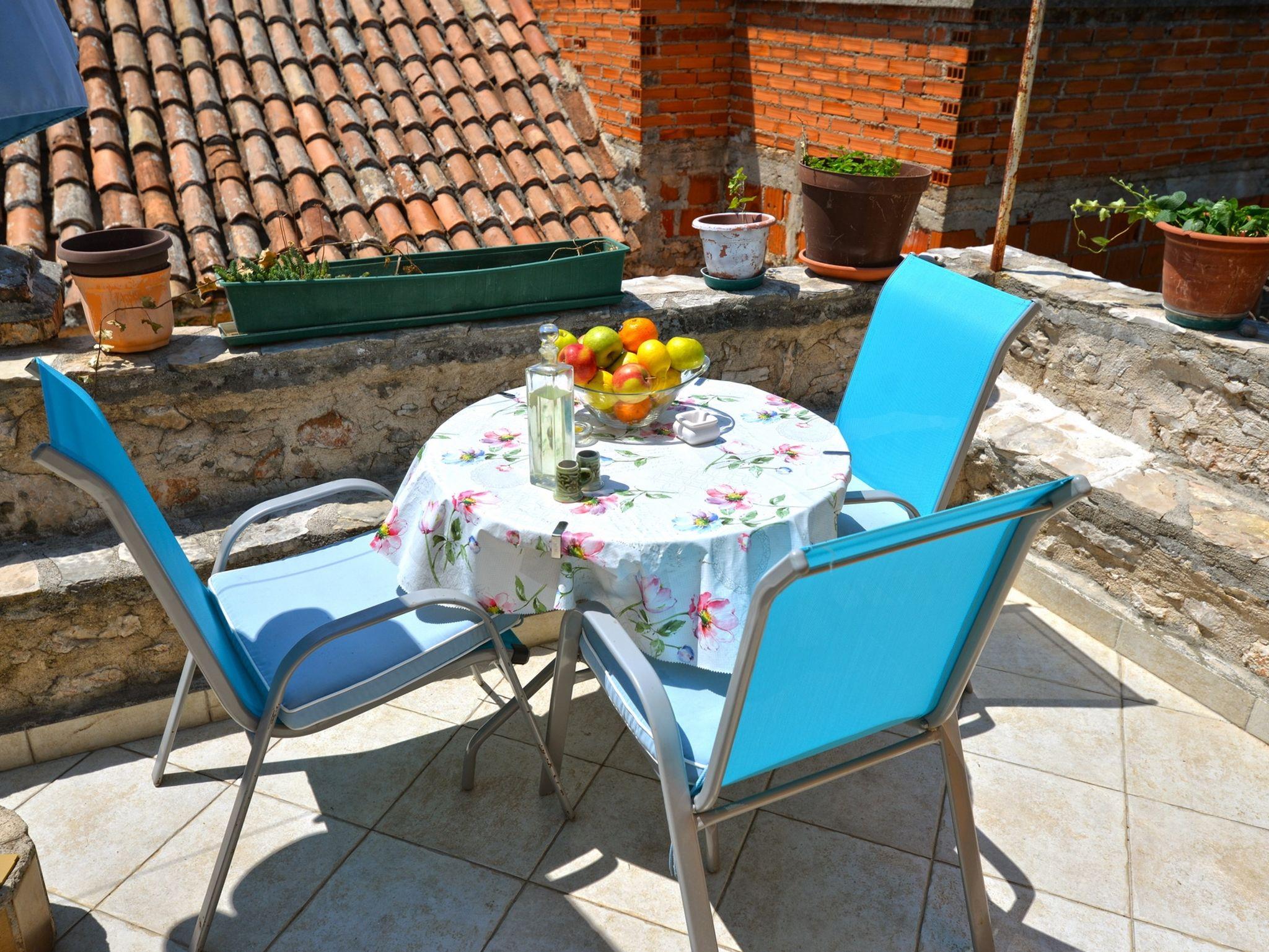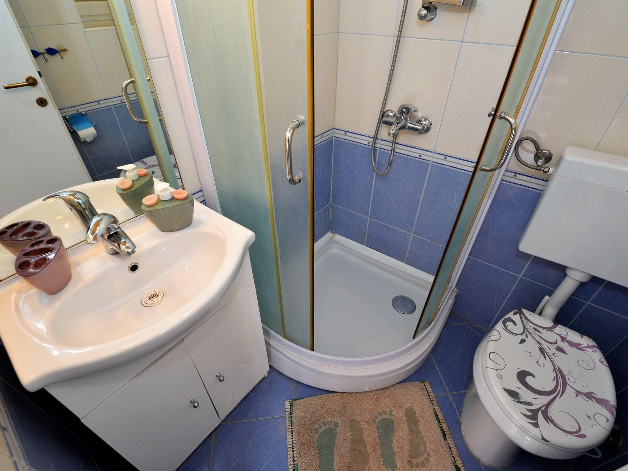 Ferienwohnung bietet Platz für 3 Gäste. Die Betten sind in Schlafzimmern, die es 1 gibt, und in Wohnzimmer, innerhalb einer Gesamtfläche von 25m2, angeordnet. Die Gäste haben eine eigene Terrasse zur Verfügung, auf der sie in warmen Sommernächten genießen können. Das Apartment bietet Meerblick. Es ist erlaubt, Speisen auf dem Gemeinschafts-Grill vorzubereiten. In der Unterkunftseinheit besteht die Möglichkeit des Mitbringens von Haustieren gegen Aufpreis. IM PREIS INBEGRIFFEN: Kurtaxe, Endreinigung, Parkplatz, Internet, Bügeleisen, Bügelbrett, Föhn, tragbarer Grill. VERBINDLICHE ZUSÄTZLICHE KOSTEN: Aufzahlung für Kurzaufenthalte (prozentualer Zuschlag pro Nächtigungsanzahl: 30% - 1, 20% - 2, 10% - 3). UNVERBINDLICHE ZUSÄTZLICHE KOSTEN: Klimatisierung (10,00 € pro Nacht), Wäschewaschen (8,00 € Waschen), Haustiere (20,00 € pro Nacht). Die Verfügbarkeit zusätzlicher Dienstleistungen in Ihrem reservierten Termin und die Preise derselben (falls nicht aufgeführt) müssen im Voraus überprüft werden. Zusätzliche Dienstleistungen die in der Zahlungsaufforderung nicht aufgeführt sind werden direkt beim Vermieter bezahlt, angenommen der Gast nutzt auch diese.