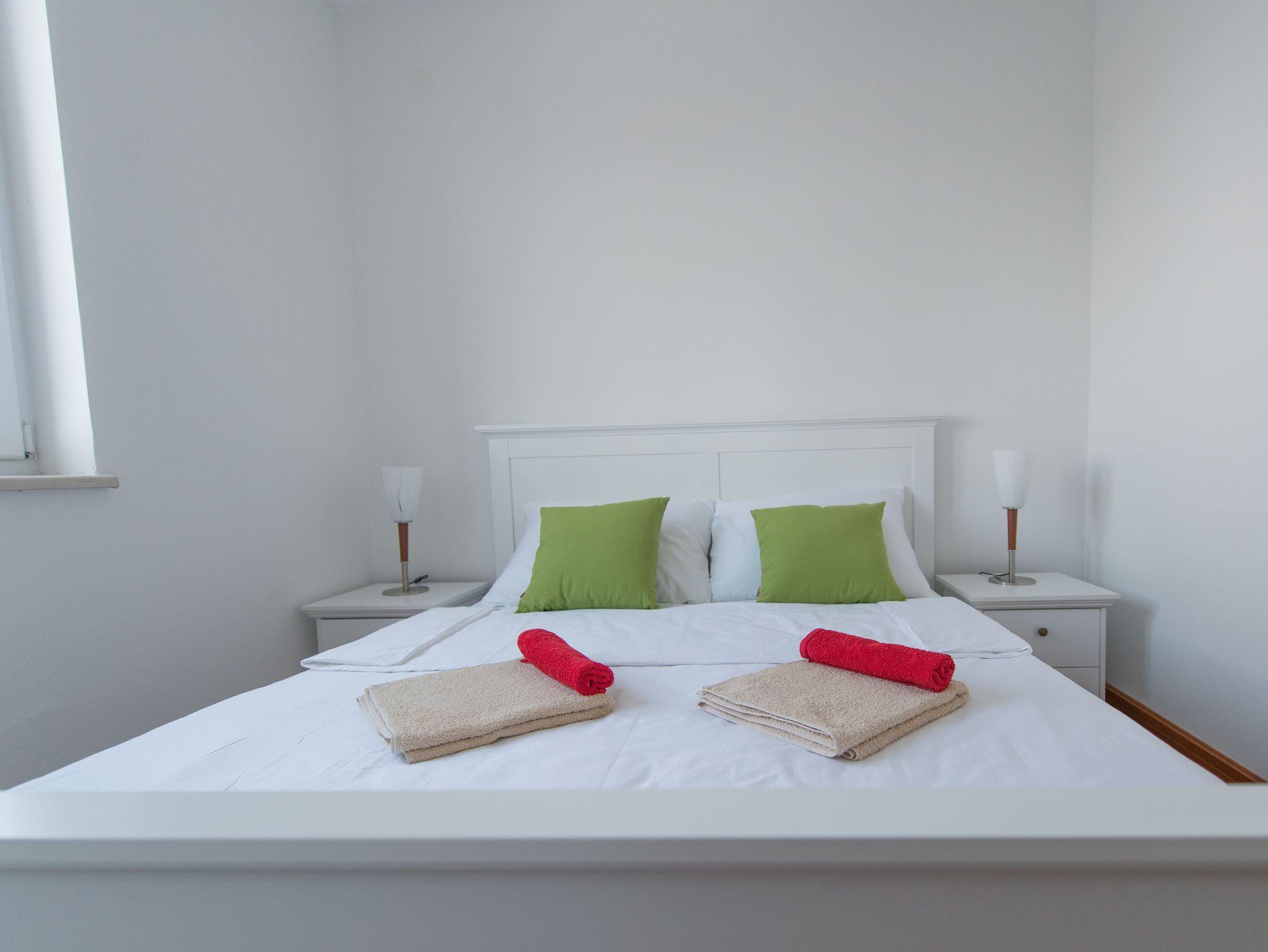Ferienwohnung bietet Platz für 4 Gäste. Die Betten sind in Schlafzimmern, die es 2 gibt, innerhalb einer Gesamtfläche von 49m2, angeordnet. Die Gäste haben eine eigene Terrasse zur Verfügung, auf der sie in warmen Sommernächten genießen können. Das Apartment bietet Meerblick. Es ist erlaubt, Speisen auf dem Gemeinschafts-Grill vorzubereiten. Während ihres Aufenthalts können Gäste das gemeinsam zur Nutzung stehende Schwimmbad benutzen. In der Unterkunftseinheit besteht die Möglichkeit des Mitbringens von Haustieren gegen Aufpreis. In der gebuchten Unterkunftseinheit zahlt man am Ort ein Depositum ( der Preis ist an der Internetseite angeführt ). IM PREIS INBEGRIFFEN: Endreinigung, Klimatisierung, Pool, Parkplatz, Internet, Kinderbett, Föhn. VERBINDLICHE ZUSÄTZLICHE KOSTEN: Kurtaxe (Erwachsene 0,93 € - 2,00 € Nacht/Person, Kinderermäßigung 12 - 17 Jahre), Kaution (200,00 € Einmalzahlung), Aufzahlung für Kurzaufenthalte (prozentualer Zuschlag pro Nächtigungsanzahl: 30% - 1, 20% - 2, 10% - 3). UNVERBINDLICHE ZUSÄTZLICHE KOSTEN: Haustiere (10,00 € pro Nacht). Die Verfügbarkeit zusätzlicher Dienstleistungen in Ihrem reservierten Termin und die Preise derselben (falls nicht aufgeführt) müssen im Voraus überprüft werden. Zusätzliche Dienstleistungen die in der Zahlungsaufforderung nicht aufgeführt sind werden direkt beim Vermieter bezahlt, angenommen der Gast nutzt auch diese. Ermäßigung auf den Grundpreis: Gratistag 14=13 (bei einem Aufenthalt von 14 Tagen oder mehr erhalten Sie einen Gratistag für den Aufenthalt bis 31.12.26).