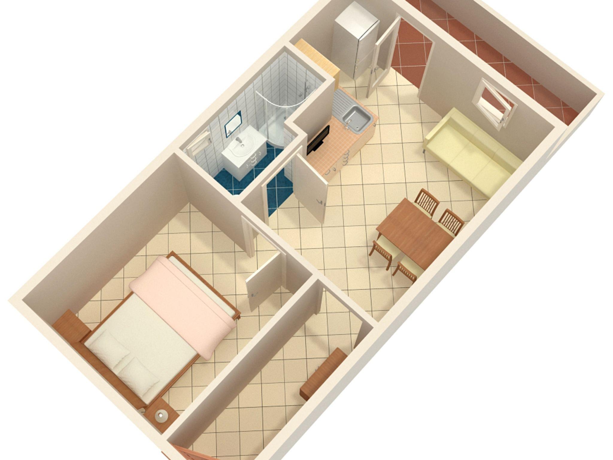 Ferienwohnung bietet Platz für 3 Gäste. Die Betten sind in Schlafzimmern, die es 1 gibt, und in Wohnzimmer, innerhalb einer Gesamtfläche von 38m2, angeordnet. Die Gäste haben eine eigene Terrasse zur Verfügung, auf der sie in warmen Sommernächten genießen können. Das Apartment bietet Meerblick. Es ist erlaubt, Speisen auf dem Gemeinschafts-Grill vorzubereiten. IM PREIS INBEGRIFFEN: Kurtaxe, Endreinigung, Klimatisierung, Parkplatz, Internet, Föhn. VERBINDLICHE ZUSÄTZLICHE KOSTEN: Aufzahlung für Kurzaufenthalte (prozentualer Zuschlag pro Nächtigungsanzahl: 30% - 1, 20% - 2, 10% - 3). UNVERBINDLICHE ZUSÄTZLICHE KOSTEN: Wäschewaschen (5,00 € Waschen). Die Verfügbarkeit zusätzlicher Dienstleistungen in Ihrem reservierten Termin und die Preise derselben (falls nicht aufgeführt) müssen im Voraus überprüft werden. Zusätzliche Dienstleistungen die in der Zahlungsaufforderung nicht aufgeführt sind werden direkt beim Vermieter bezahlt, angenommen der Gast nutzt auch diese.