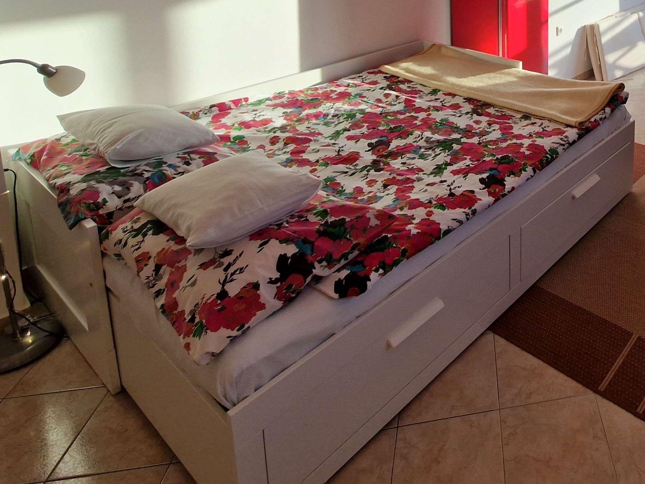 Studio bietet Platz für 3 Gäste. Die Betten sind in Schlafzimmern, die es 1 gibt, und in Wohnzimmer, innerhalb einer Gesamtfläche von 40m2, angeordnet. Die Gäste haben eine eigene Terrasse zur Verfügung, auf der sie in warmen Sommernächten genießen können. Das Studio-Apartment bietet Meerblick. Es ist erlaubt, Speisen auf dem Gemeinschafts-Grill vorzubereiten. IM PREIS INBEGRIFFEN: Kurtaxe, Endreinigung, Klimatisierung, Parkplatz, Internet, Kinderbett, Bügeleisen, Bügelbrett, Föhn, Sonnenschirm. VERBINDLICHE ZUSÄTZLICHE KOSTEN: Aufzahlung für Kurzaufenthalte (prozentualer Zuschlag pro Nächtigungsanzahl: 30% - 1, 20% - 2, 10% - 3). Die Verfügbarkeit zusätzlicher Dienstleistungen in Ihrem reservierten Termin und die Preise derselben (falls nicht aufgeführt) müssen im Voraus überprüft werden. Zusätzliche Dienstleistungen die in der Zahlungsaufforderung nicht aufgeführt sind werden direkt beim Vermieter bezahlt, angenommen der Gast nutzt auch diese.