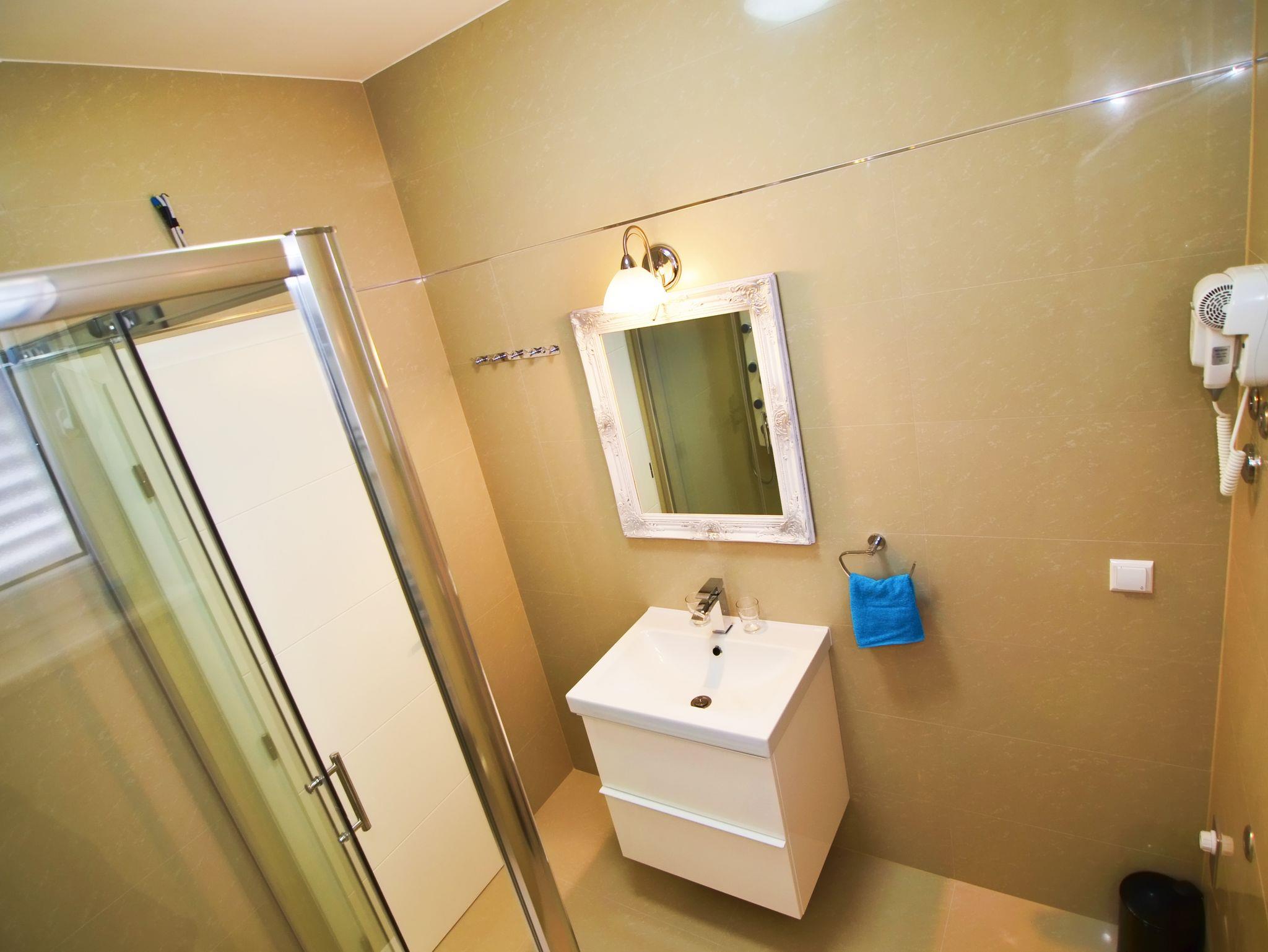 Ferienwohnung bietet Platz für 4 Gäste. Die Betten sind in Schlafzimmern, die es 2 gibt, innerhalb einer Gesamtfläche von 43m2, angeordnet. Die Gäste haben eine eigene Terrasse zur Verfügung, auf der sie in warmen Sommernächten genießen können. Das Apartment bietet Meerblick. Es ist erlaubt, Speisen auf dem Gemeinschafts-Grill vorzubereiten. Während ihres Aufenthalts können Gäste das gemeinsam zur Nutzung stehende Schwimmbad benutzen. In der Unterkunftseinheit besteht die Möglichkeit des Mitbringens von Haustieren gegen Aufpreis. In der gebuchten Unterkunftseinheit zahlt man am Ort ein Depositum ( der Preis ist an der Internetseite angeführt ). IM PREIS INBEGRIFFEN: Endreinigung, Klimatisierung, Pool, Parkplatz, Internet, Kinderbett, Föhn. VERBINDLICHE ZUSÄTZLICHE KOSTEN: Kurtaxe (Erwachsene 0,93 € - 2,00 € Nacht/Person, Kinderermäßigung 12 - 17 Jahre), Kaution (200,00 € Einmalzahlung), Aufzahlung für Kurzaufenthalte (prozentualer Zuschlag pro Nächtigungsanzahl: 30% - 1, 20% - 2, 10% - 3). UNVERBINDLICHE ZUSÄTZLICHE KOSTEN: Haustiere (10,00 € pro Nacht). Die Verfügbarkeit zusätzlicher Dienstleistungen in Ihrem reservierten Termin und die Preise derselben (falls nicht aufgeführt) müssen im Voraus überprüft werden. Zusätzliche Dienstleistungen die in der Zahlungsaufforderung nicht aufgeführt sind werden direkt beim Vermieter bezahlt, angenommen der Gast nutzt auch diese. Ermäßigung auf den Grundpreis: Gratistag 14=13 (bei einem Aufenthalt von 14 Tagen oder mehr erhalten Sie einen Gratistag für den Aufenthalt bis 31.12.26).