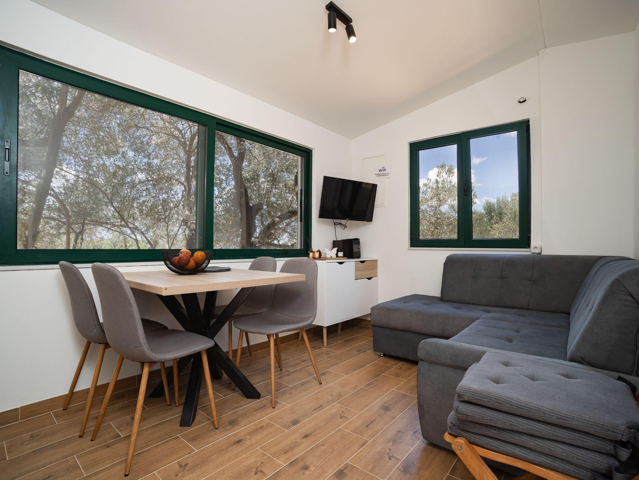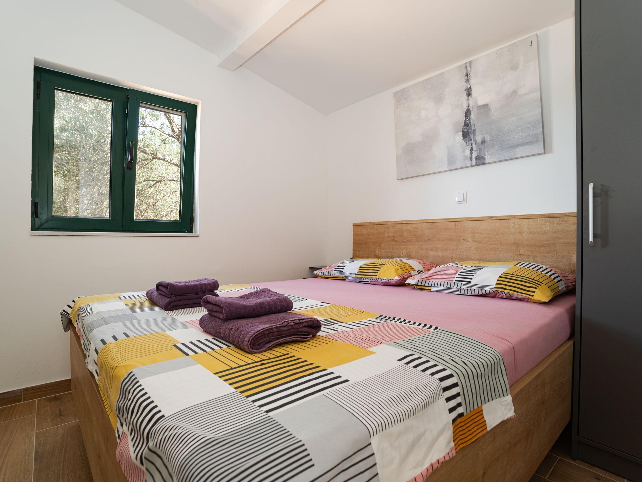 Studio bietet Platz für 4 Gäste. Die Betten sind in Schlafzimmern, die es 2 gibt, innerhalb einer Gesamtfläche von 41m2, angeordnet. Die Gäste haben eine eigene Terrasse zur Verfügung, auf der sie in warmen Sommernächten genießen können. Für vollen Genuss und Entspannung gibt es einen privaten Grill für Gäste dieser Unterkunft. Während ihres Aufenthalts können sich Gäste im privaten Schwimmbad entspannen. In der Unterkunftseinheit besteht die Möglichkeit des Mitbringens von Haustieren gegen Aufpreis. Räume der gebuchten Unterkunftseinheit werden nicht in eine Ganze verbunden. IM PREIS INBEGRIFFEN: Kurtaxe, Endreinigung, Klimatisierung, Pool, Parkplatz, Internet, Bootsanlegeplatz, Kinderbett, Liegestühle. UNVERBINDLICHE ZUSÄTZLICHE KOSTEN: Boot (140,00 € pro Nacht), Haustiere (10,00 € pro Nacht), Fahrrad (10,00 € täglich (pro Stück)). Die Verfügbarkeit zusätzlicher Dienstleistungen in Ihrem reservierten Termin und die Preise derselben (falls nicht aufgeführt) müssen im Voraus überprüft werden. Zusätzliche Dienstleistungen die in der Zahlungsaufforderung nicht aufgeführt sind werden direkt beim Vermieter bezahlt, angenommen der Gast nutzt auch diese. Ermäßigung auf den Grundpreis: Gratistag 14=13 (bei einem Aufenthalt von 14 Tagen oder mehr erhalten Sie einen Gratistag für den Aufenthalt bis 31.12.26).