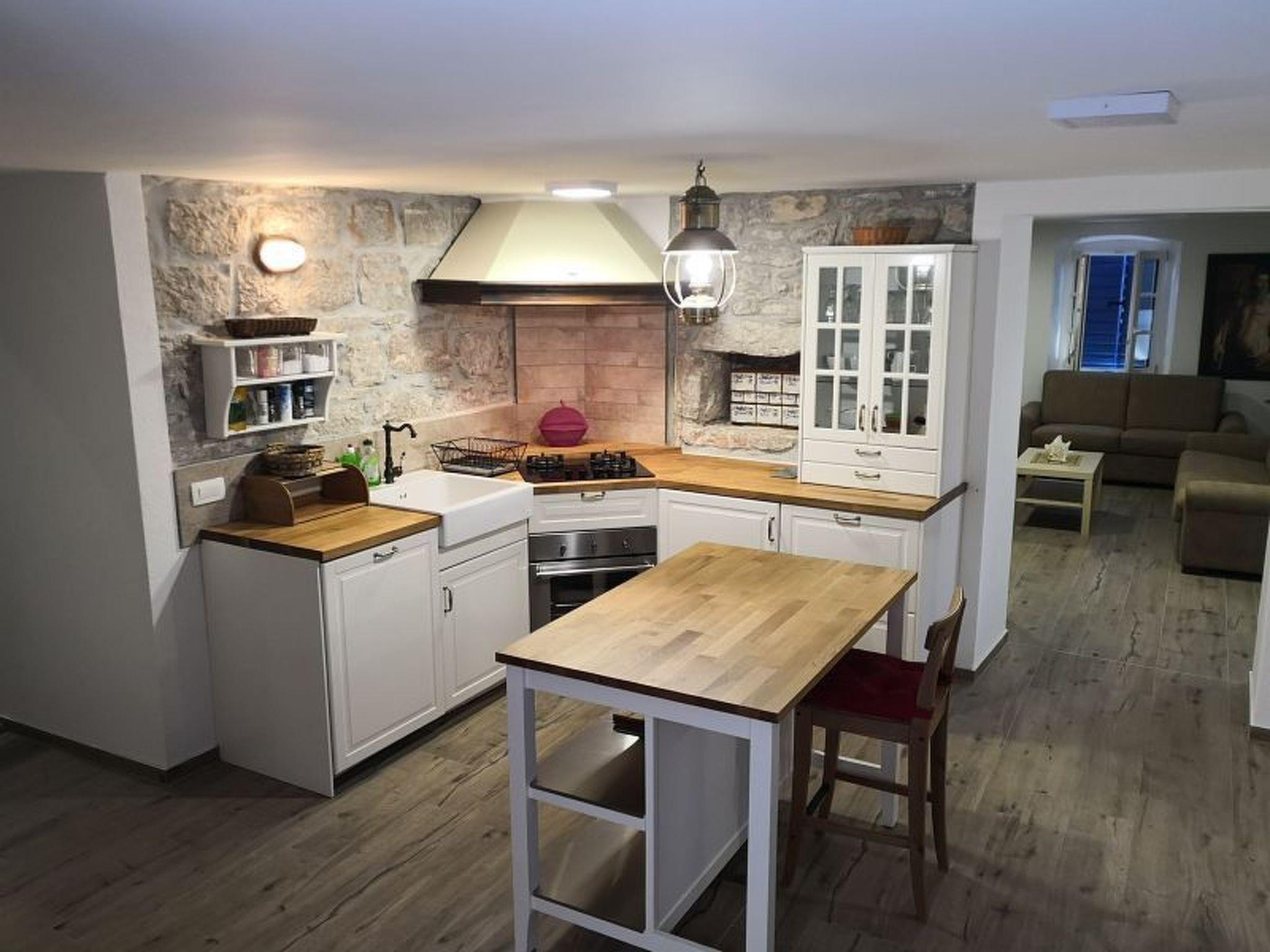 Spacious holiday flat for up to six people in a recently renovated (2017) old villa in the historic part of the village of Betina This cosily furnished holiday flat is located just 20 m from the sea, in the pedestrian zone. It is located in an over 160-year-old natural stone house, which is a listed building and was lovingly restored by hand in 2017. With its authentic and unusual appearance, reminiscent of the charm of the past, the house is also a frequent eye-catcher for passers-by and guests. It is built in a Mediterranean style, with thick walls to protect it from the heat.
