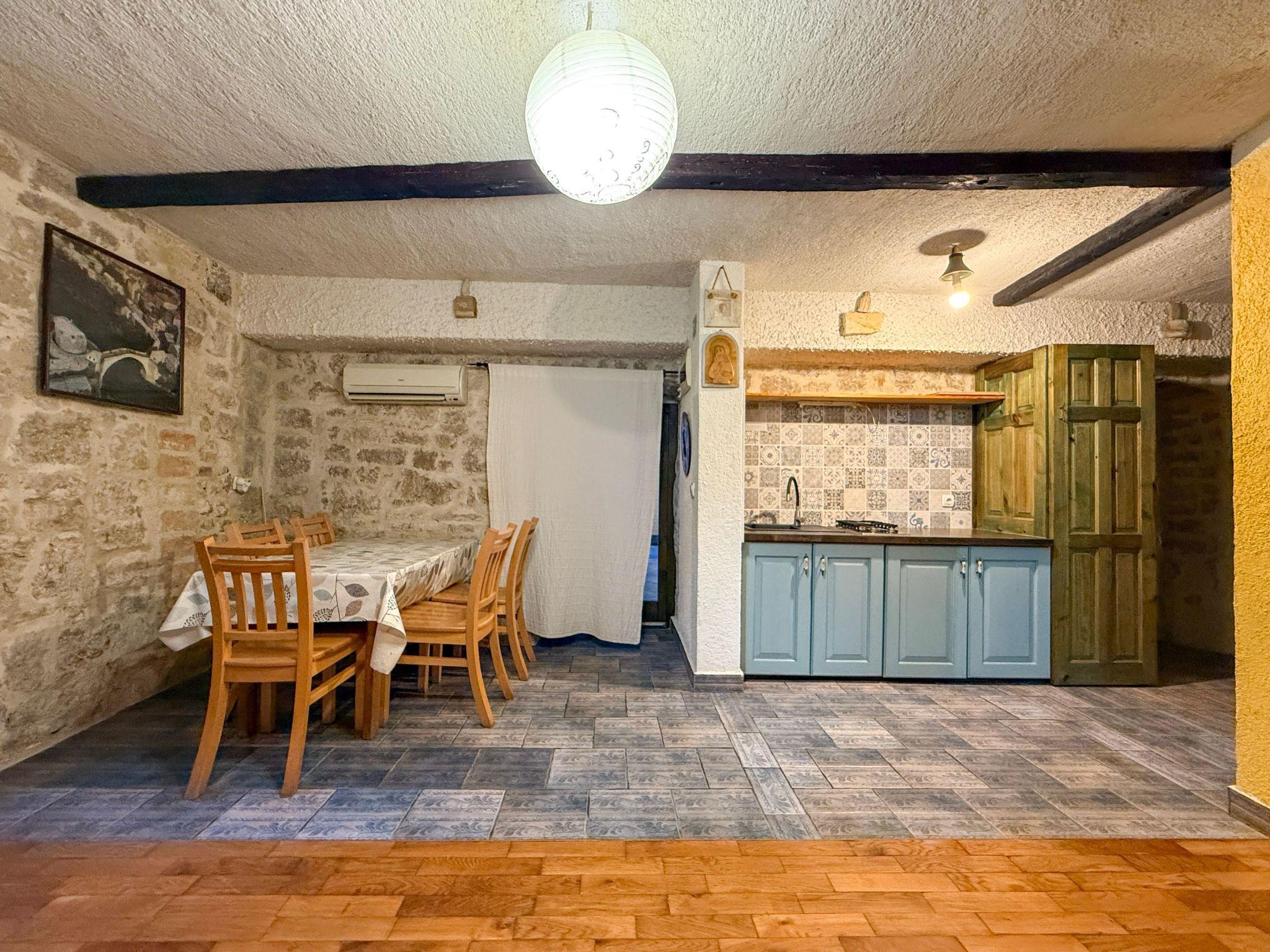 The outside area of the flat offers an inviting terrace at the entrance, which is an ideal setting for relaxing mornings or balmy evenings. In the absence of a balcony, the traditional design and shaded terrace prove that ancient wisdom in terms of construction and climate relief still holds its value today, especially during the summer heatwaves.