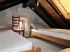Inside, you will find a stylishly furnished ambience that combines both cosiness and functionality. The lower level comprises a living room with an integrated kitchenette equipped with crockery, a fridge with freezer compartment, a cooker and basic cooking spices. An antique wardrobe and a sofa bed (145 cm x 195 cm) add an inviting touch to the room. A separate bedroom with a large, comfortable four-poster bed (160 cm x 200 cm) from the era of the monarchy and a modern bathroom round off the room. Upstairs there is a sleeping gallery with four single beds (90 cm x 200 cm). Amenities such as air conditioning, WLAN and satellite TV are also available.