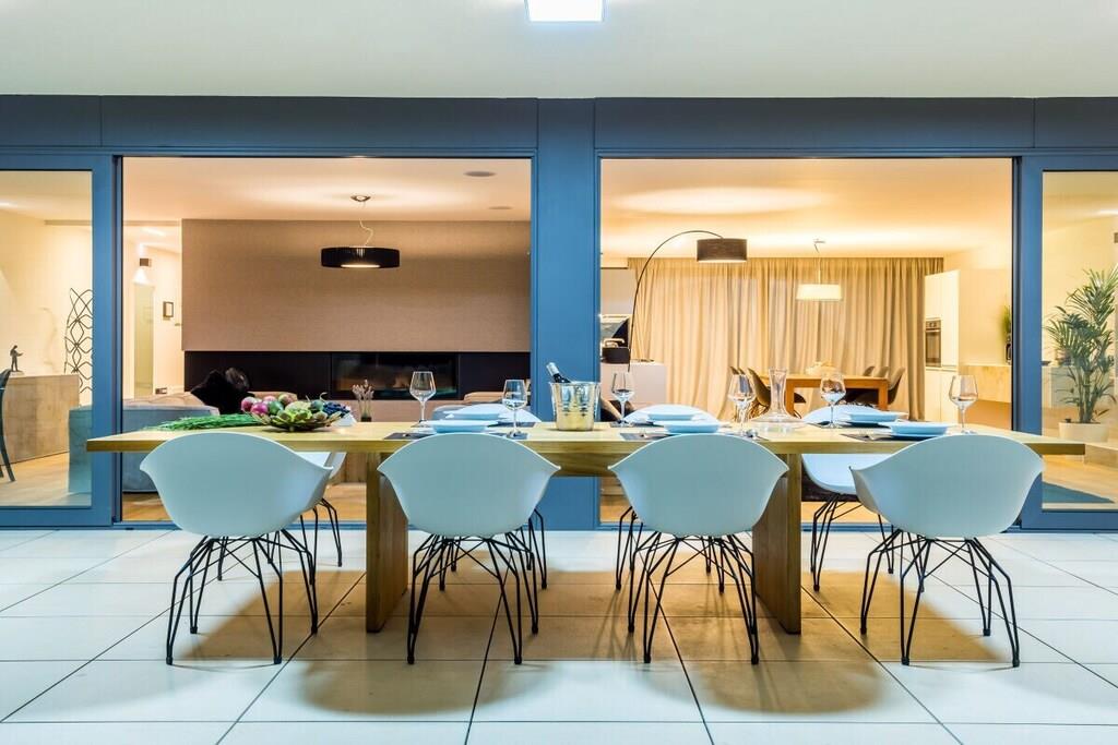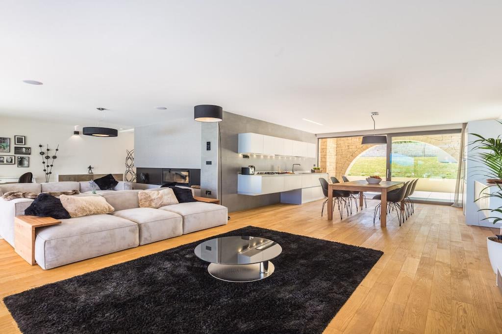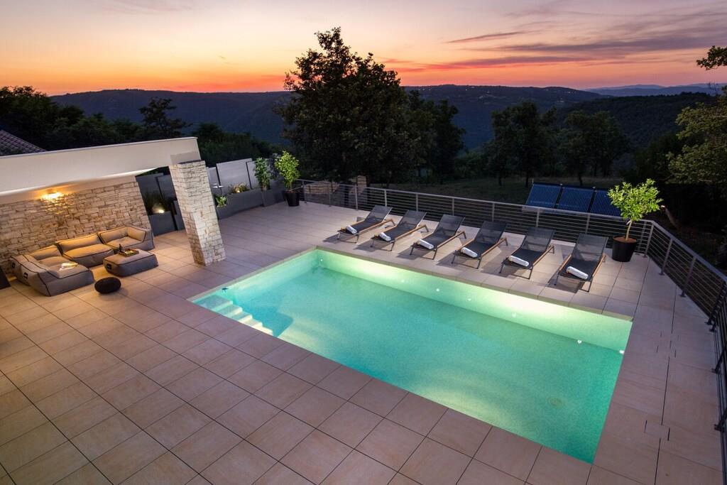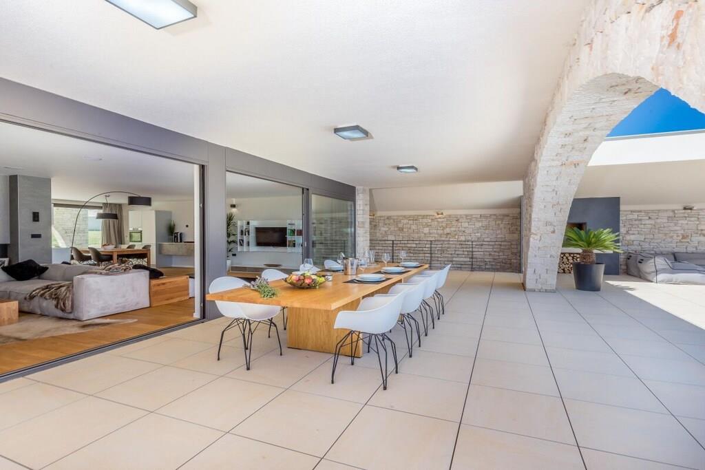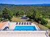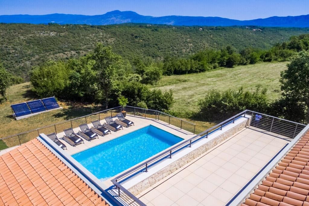 Ovenpå er der tre soveværelser med dobbeltsenge og eget badeværelse. Det ene badeværelse har et smukt badekar, perfekt til afslappende boblebad. Den rummelige, åbne stueetage består af et fuldt udstyret italiensk køkken, en komfortabel spiseplads og en hyggelig stue med direkte adgang til terrassen ved poolen. Store vinduer tilbyder en fantastisk udsigt over den uspolerede natur, der omgiver villaen, hvilket gør stueetagen til et indbydende sted at tilbringe tid med familie og venner. Den storslåede terrasse har en stor opvarmet swimmingpool, liggestole og en trækulsgrill. Villaen inkluderer også to private parkeringspladser.