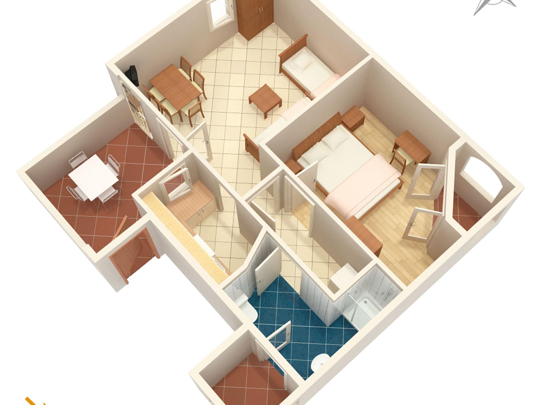 Ferienwohnung bietet Platz für 5 Gäste. Die Betten sind in Schlafzimmern, die es 1 gibt, und in Esszimmer, innerhalb einer Gesamtfläche von 38m2, angeordnet. Die Gäste haben eine eigene Terrasse zur Verfügung, auf der sie in warmen Sommernächten genießen können. Das Apartment bietet Meerblick. Es ist erlaubt, Speisen auf dem Gemeinschafts-Grill vorzubereiten. In der Unterkunftseinheit besteht die Möglichkeit des Mitbringens von Haustieren gegen Aufpreis. IM PREIS INBEGRIFFEN: Kurtaxe, Endreinigung, Klimatisierung, Parkplatz, Internet, Kinderbett, Bügeleisen, Bügelbrett, Föhn. VERBINDLICHE ZUSÄTZLICHE KOSTEN: Aufzahlung für Kurzaufenthalte (prozentualer Zuschlag pro Nächtigungsanzahl: 30% - 1, 20% - 2, 10% - 3). UNVERBINDLICHE ZUSÄTZLICHE KOSTEN: Haustiere (5,00 € pro Nacht). Die Verfügbarkeit zusätzlicher Dienstleistungen in Ihrem reservierten Termin und die Preise derselben (falls nicht aufgeführt) müssen im Voraus überprüft werden. Zusätzliche Dienstleistungen die in der Zahlungsaufforderung nicht aufgeführt sind werden direkt beim Vermieter bezahlt, angenommen der Gast nutzt auch diese. Ermäßigung auf den Grundpreis: Gratistag 28=25 (bei einem Aufenthalt von 28 oder mehr Tagen erhalten Sie 3 kostenlose Tage für den Aufenthalt bis 31.12.26).