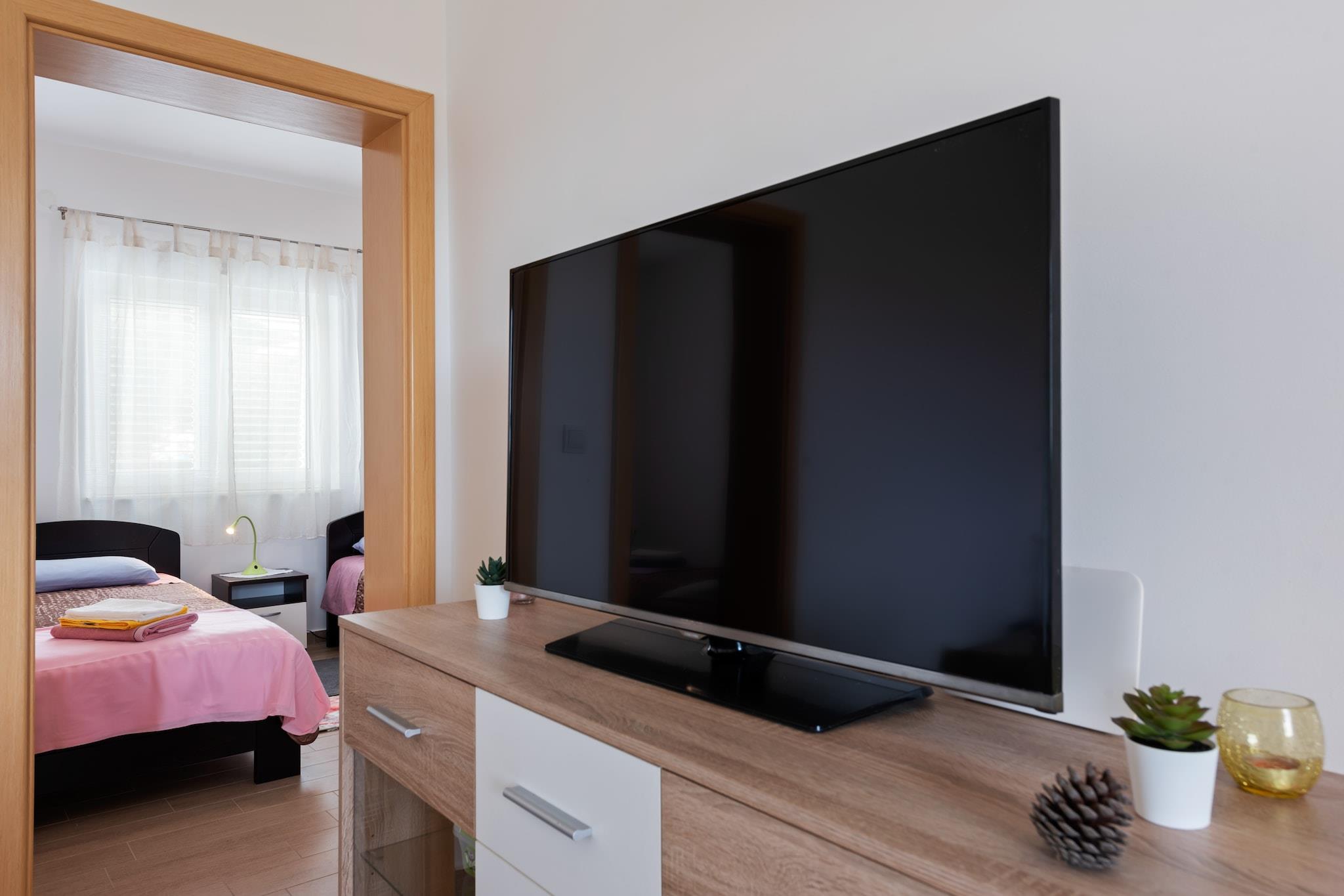 Beliggende i Nevidane har denne enkle lejlighed en balkon, hvorfra du får den fortryllende udsigt over de hvide bjerge på tværs af havets fredfyldte vand. Denne lokkende lejlighed har 2 soveværelser, der kan rumme op til 6 personer. Huset er ideelt til en familie eller en gruppe på en foryngende ferie. Fra huset er der kun 450 m til stranden, hvor I kan sole jer på en solskinsdag. Der ligger en restaurant kun 5 minutters gang fra huset, hvor du kan nyde lækre lokale retter. Det vil ikke være besværligt at skaffe dine forsyninger i dette hus, kun et minuts gang fra købmanden. Dette børnevenlige hus tillader et kæledyr gratis, og for at holde dig godt tilpas har stedet også en vaskemaskine. Parkering er tilgængelig på husets område for din bekvemmelighed. Du kan også forbrænde de ekstra kalorier i fitnesscentret, der er tilgængeligt her! Zadar Lufthavn ligger 33,9 km fra dette sted.