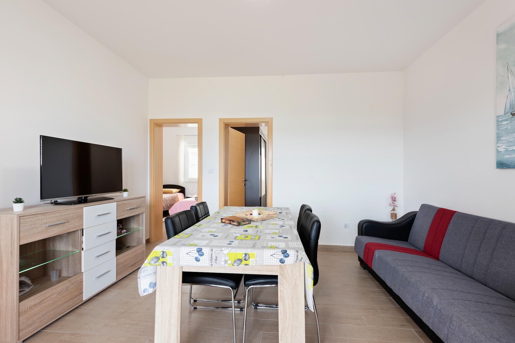 Beliggende i Nevidane har denne enkle lejlighed en balkon, hvorfra du får den fortryllende udsigt over de hvide bjerge på tværs af havets fredfyldte vand. Denne lokkende lejlighed har 2 soveværelser, der kan rumme op til 6 personer. Huset er ideelt til en familie eller en gruppe på en foryngende ferie. Fra huset er der kun 450 m til stranden, hvor I kan sole jer på en solskinsdag. Der ligger en restaurant kun 5 minutters gang fra huset, hvor du kan nyde lækre lokale retter. Det vil ikke være besværligt at skaffe dine forsyninger i dette hus, kun et minuts gang fra købmanden. Dette børnevenlige hus tillader et kæledyr gratis, og for at holde dig godt tilpas har stedet også en vaskemaskine. Parkering er tilgængelig på husets område for din bekvemmelighed. Du kan også forbrænde de ekstra kalorier i fitnesscentret, der er tilgængeligt her! Zadar Lufthavn ligger 33,9 km fra dette sted.