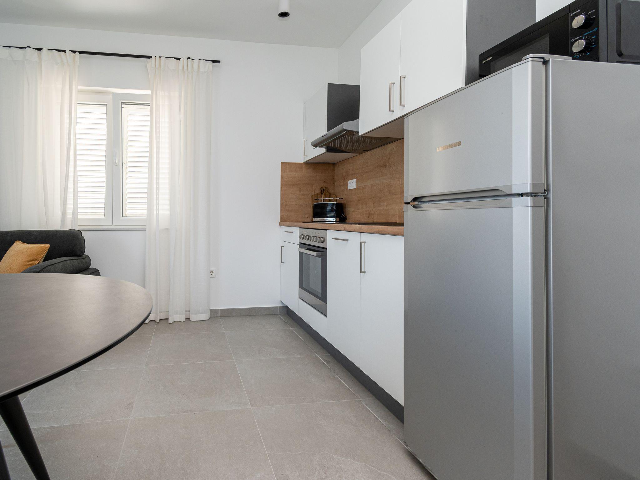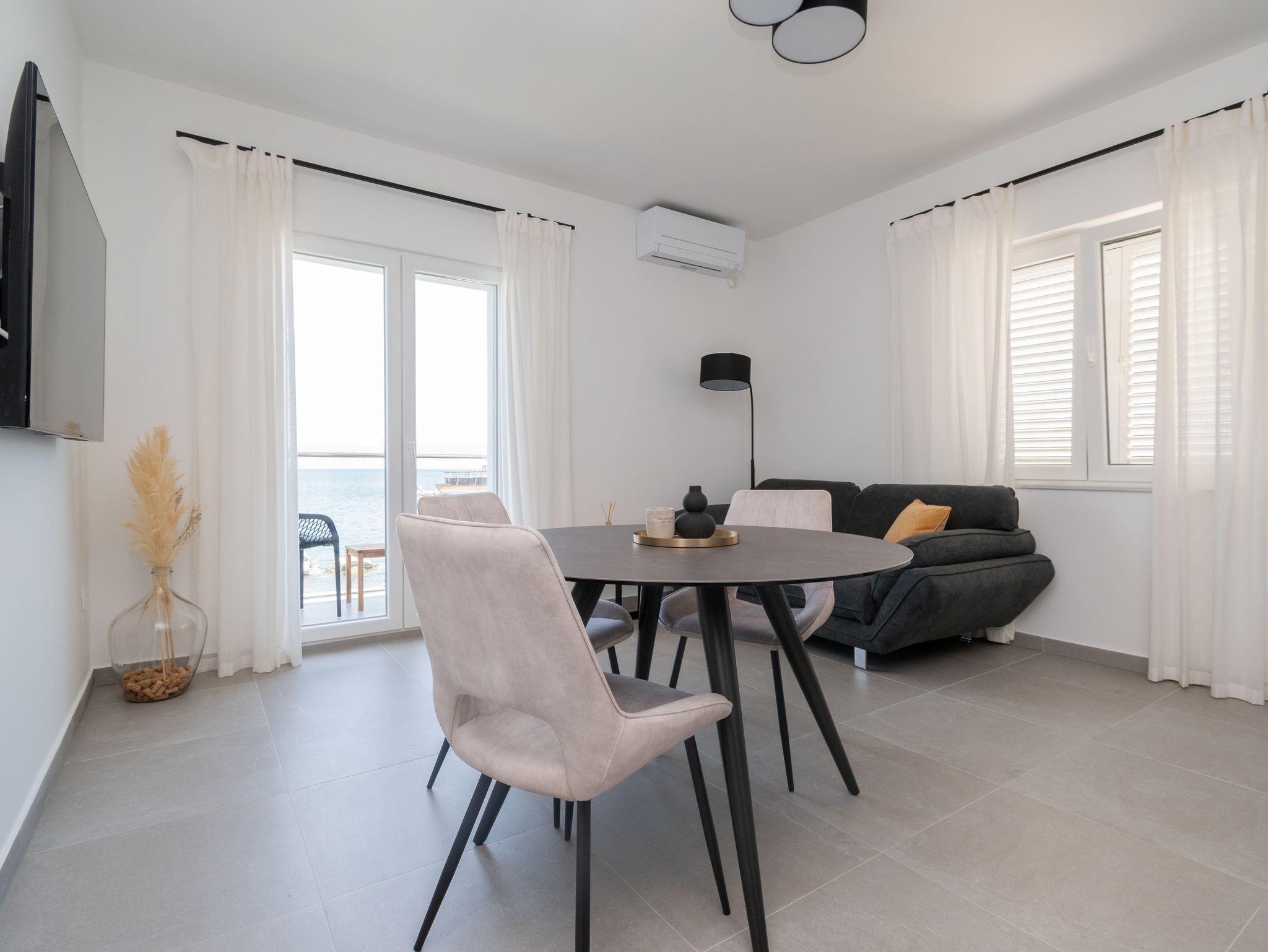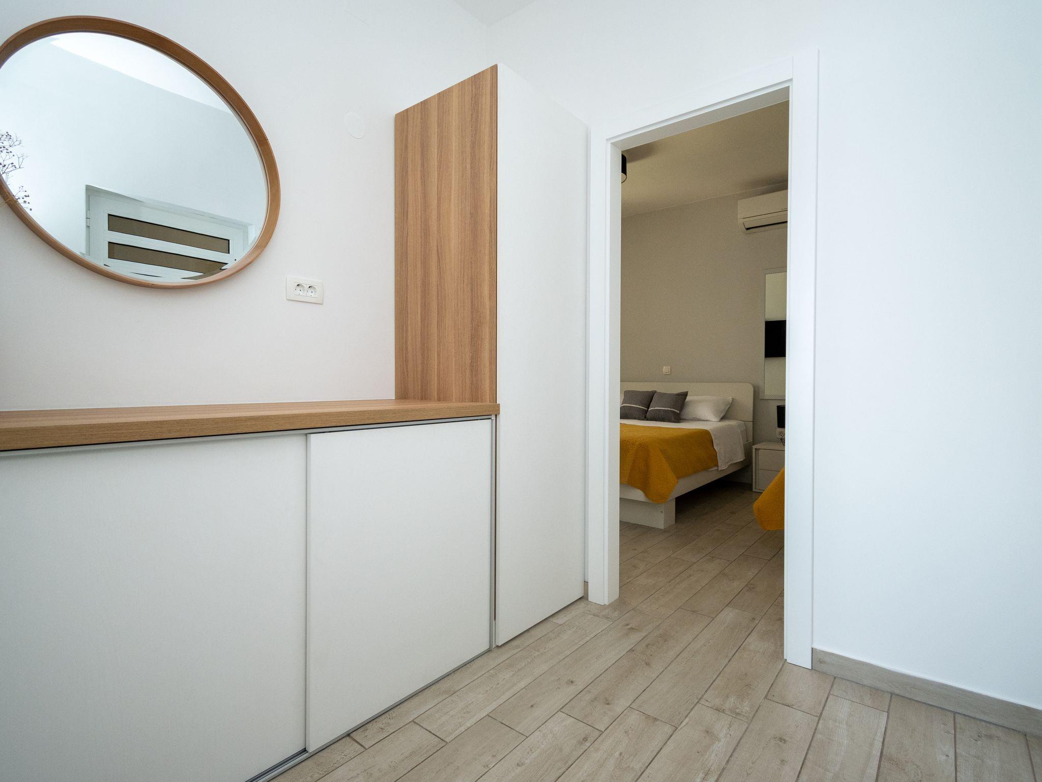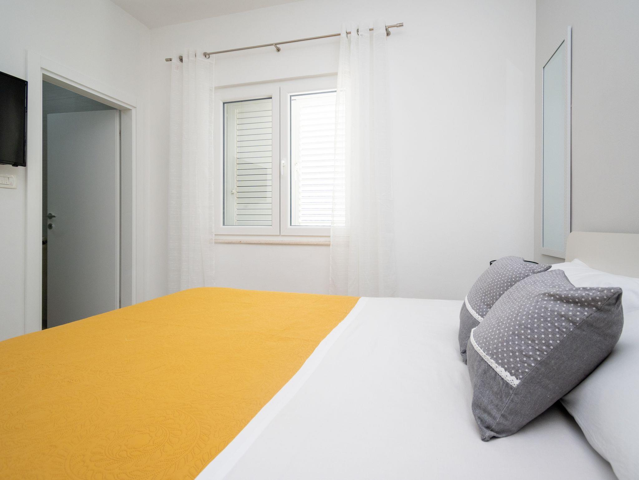 Ferienwohnung bietet Platz für 3 Gäste. Die Betten sind in Schlafzimmern, die es 1 gibt, innerhalb einer Gesamtfläche von 39m2, angeordnet. Die Gäste haben einen eigenen Balkon zur Verfügung, auf der sie in warmen Sommernächten genießen können. Das Apartment bietet Meerblick. Für vollen Genuss und Entspannung gibt es einen privaten Grill für Gäste dieser Unterkunft. IM PREIS INBEGRIFFEN: Kurtaxe, Endreinigung, Klimatisierung, Parkplatz, Internet, Bootsanlegeplatz, tragbarer Grill. VERBINDLICHE ZUSÄTZLICHE KOSTEN: Aufzahlung für Kurzaufenthalte (prozentualer Zuschlag pro Nächtigungsanzahl: 30% - 1, 20% - 2, 10% - 3). Die Verfügbarkeit zusätzlicher Dienstleistungen in Ihrem reservierten Termin und die Preise derselben (falls nicht aufgeführt) müssen im Voraus überprüft werden. Zusätzliche Dienstleistungen die in der Zahlungsaufforderung nicht aufgeführt sind werden direkt beim Vermieter bezahlt, angenommen der Gast nutzt auch diese.
