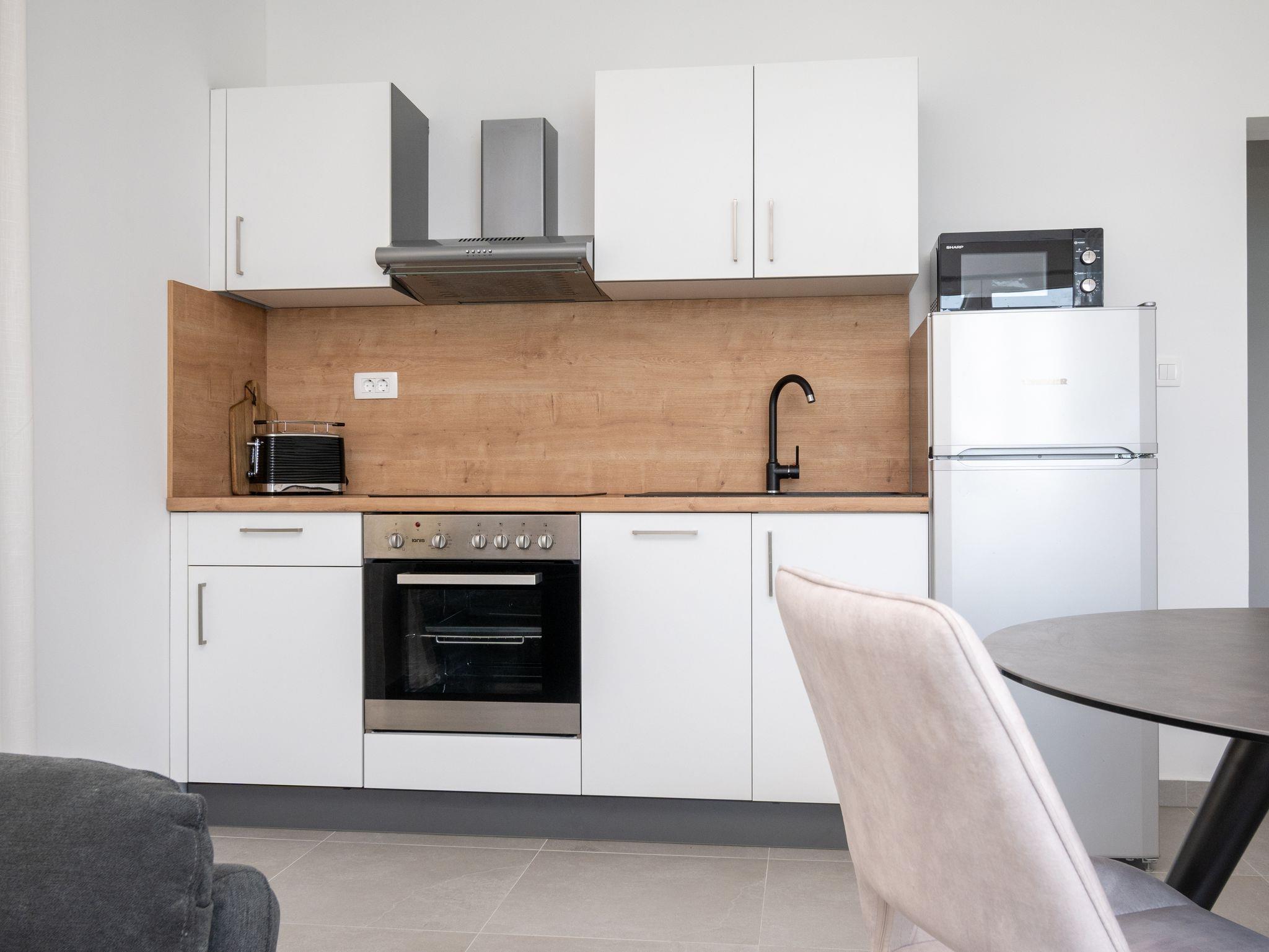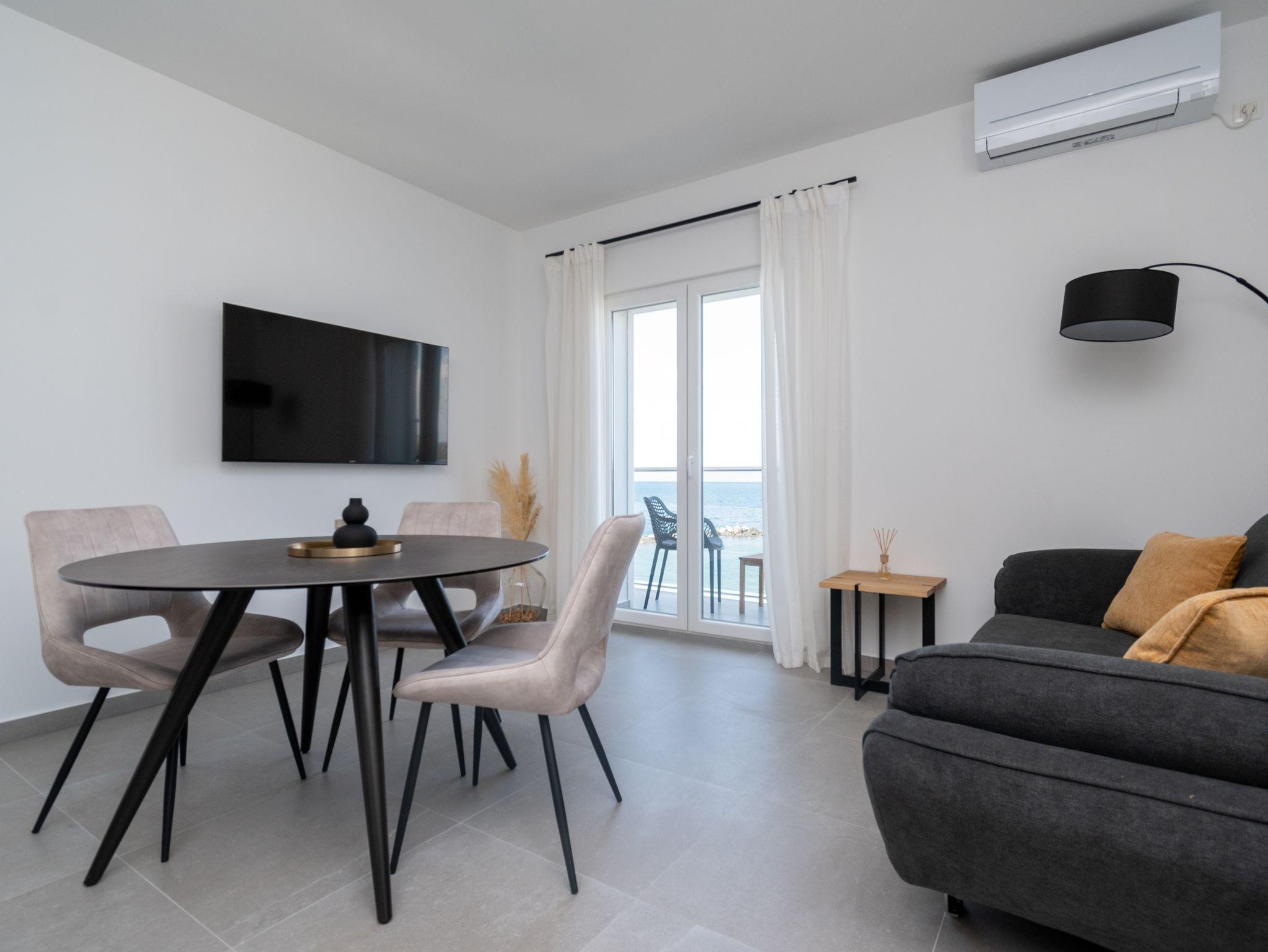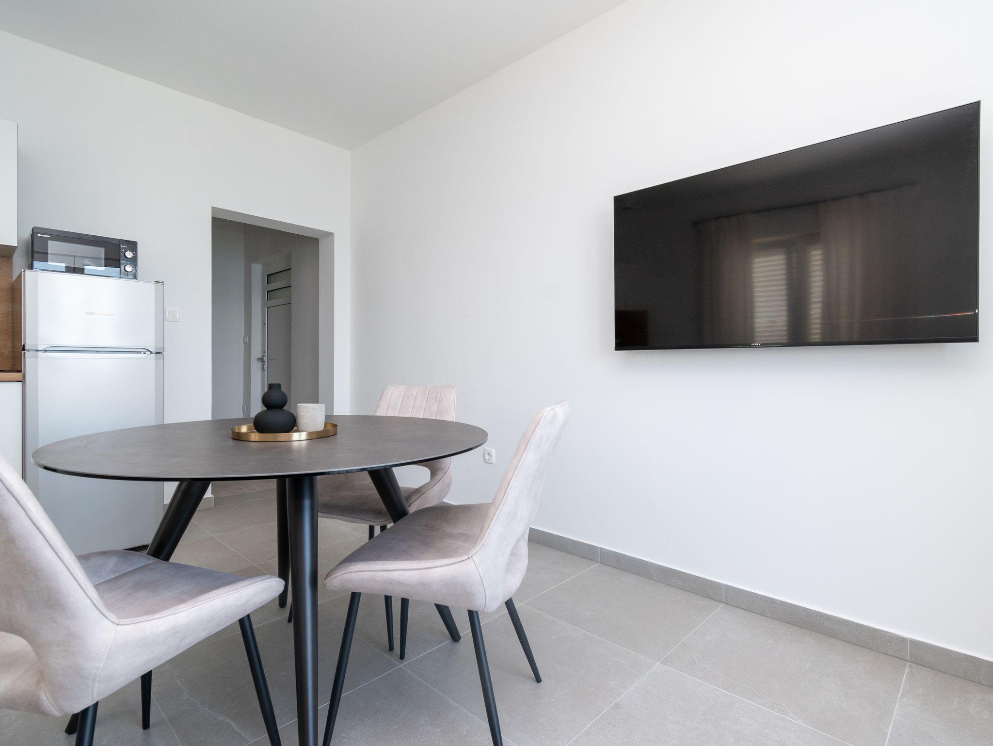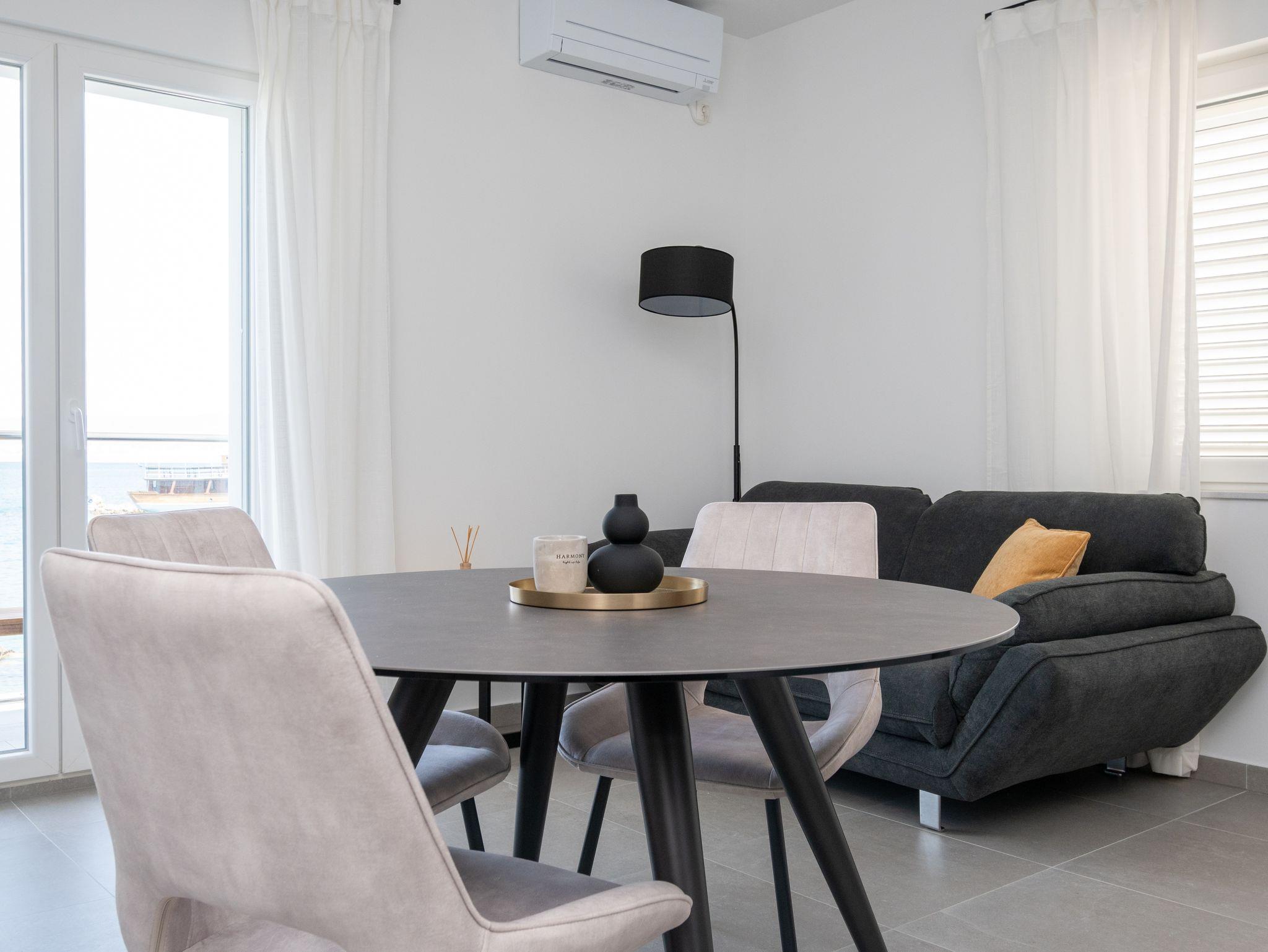 Ferienwohnung bietet Platz für 3 Gäste. Die Betten sind in Schlafzimmern, die es 1 gibt, innerhalb einer Gesamtfläche von 39m2, angeordnet. Die Gäste haben einen eigenen Balkon zur Verfügung, auf der sie in warmen Sommernächten genießen können. Das Apartment bietet Meerblick. Für vollen Genuss und Entspannung gibt es einen privaten Grill für Gäste dieser Unterkunft. IM PREIS INBEGRIFFEN: Kurtaxe, Endreinigung, Klimatisierung, Parkplatz, Internet, Bootsanlegeplatz, tragbarer Grill. VERBINDLICHE ZUSÄTZLICHE KOSTEN: Aufzahlung für Kurzaufenthalte (prozentualer Zuschlag pro Nächtigungsanzahl: 30% - 1, 20% - 2, 10% - 3). Die Verfügbarkeit zusätzlicher Dienstleistungen in Ihrem reservierten Termin und die Preise derselben (falls nicht aufgeführt) müssen im Voraus überprüft werden. Zusätzliche Dienstleistungen die in der Zahlungsaufforderung nicht aufgeführt sind werden direkt beim Vermieter bezahlt, angenommen der Gast nutzt auch diese.
