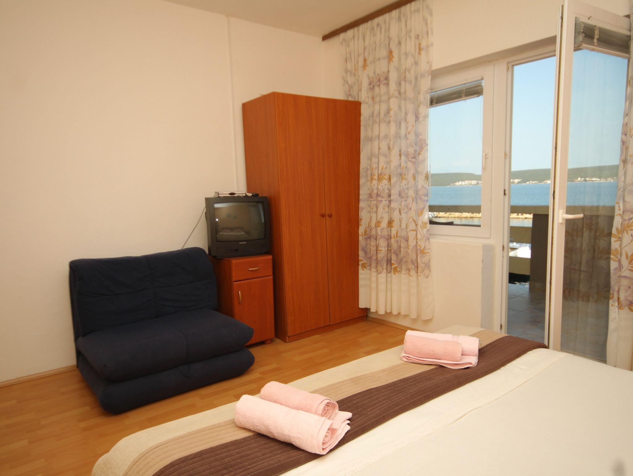 Ferienwohnung bietet Platz für 4 Gäste. Die Betten sind in Schlafzimmern, die es 2 gibt, innerhalb einer Gesamtfläche von 37m2, angeordnet. Die Gäste haben eine eigene Terrasse zur Verfügung, auf der sie in warmen Sommernächten genießen können. Das Apartment bietet Meerblick. Es ist erlaubt, Speisen auf dem Gemeinschafts-Grill vorzubereiten. In der Unterkunftseinheit besteht die Möglichkeit des Mitbringens von Haustieren gegen Aufpreis. IM PREIS INBEGRIFFEN: Kurtaxe, Endreinigung, Klimatisierung, Parkplatz, Internet, Bootsanlegeplatz, Kinderbett, Bügeleisen, Föhn, Liegestühle. VERBINDLICHE ZUSÄTZLICHE KOSTEN: Aufzahlung für Kurzaufenthalte (prozentualer Zuschlag pro Nächtigungsanzahl: 30% - 1, 20% - 2, 10% - 3). UNVERBINDLICHE ZUSÄTZLICHE KOSTEN: Haustiere (5,00 € pro Nacht). Die Verfügbarkeit zusätzlicher Dienstleistungen in Ihrem reservierten Termin und die Preise derselben (falls nicht aufgeführt) müssen im Voraus überprüft werden. Zusätzliche Dienstleistungen die in der Zahlungsaufforderung nicht aufgeführt sind werden direkt beim Vermieter bezahlt, angenommen der Gast nutzt auch diese.