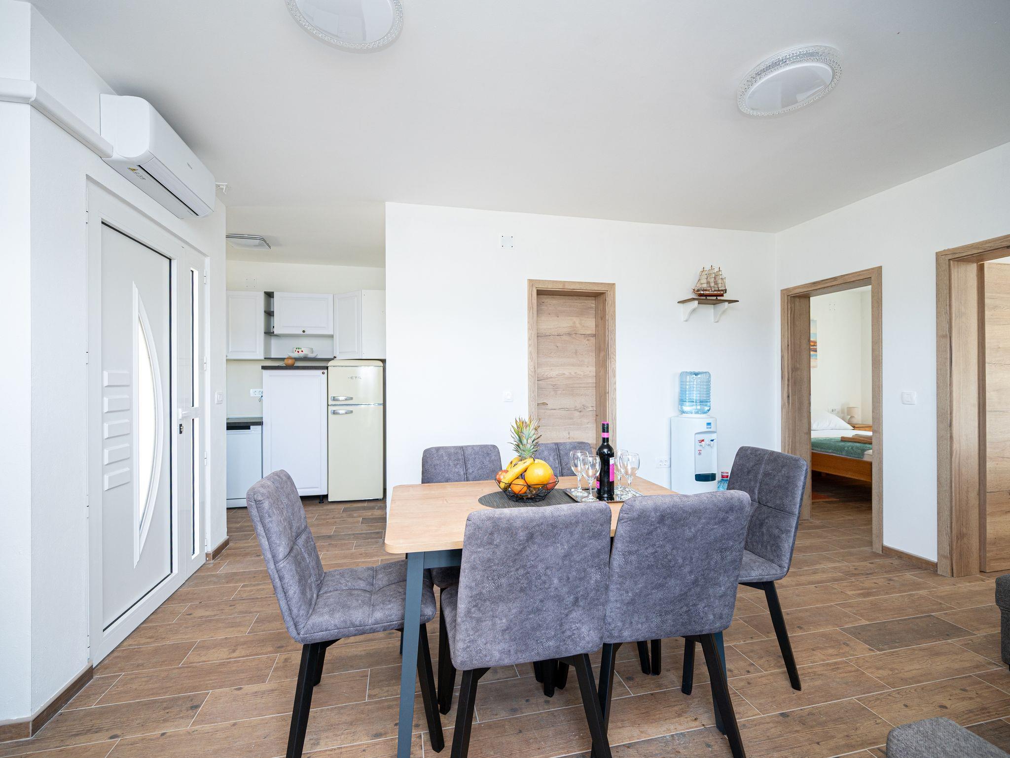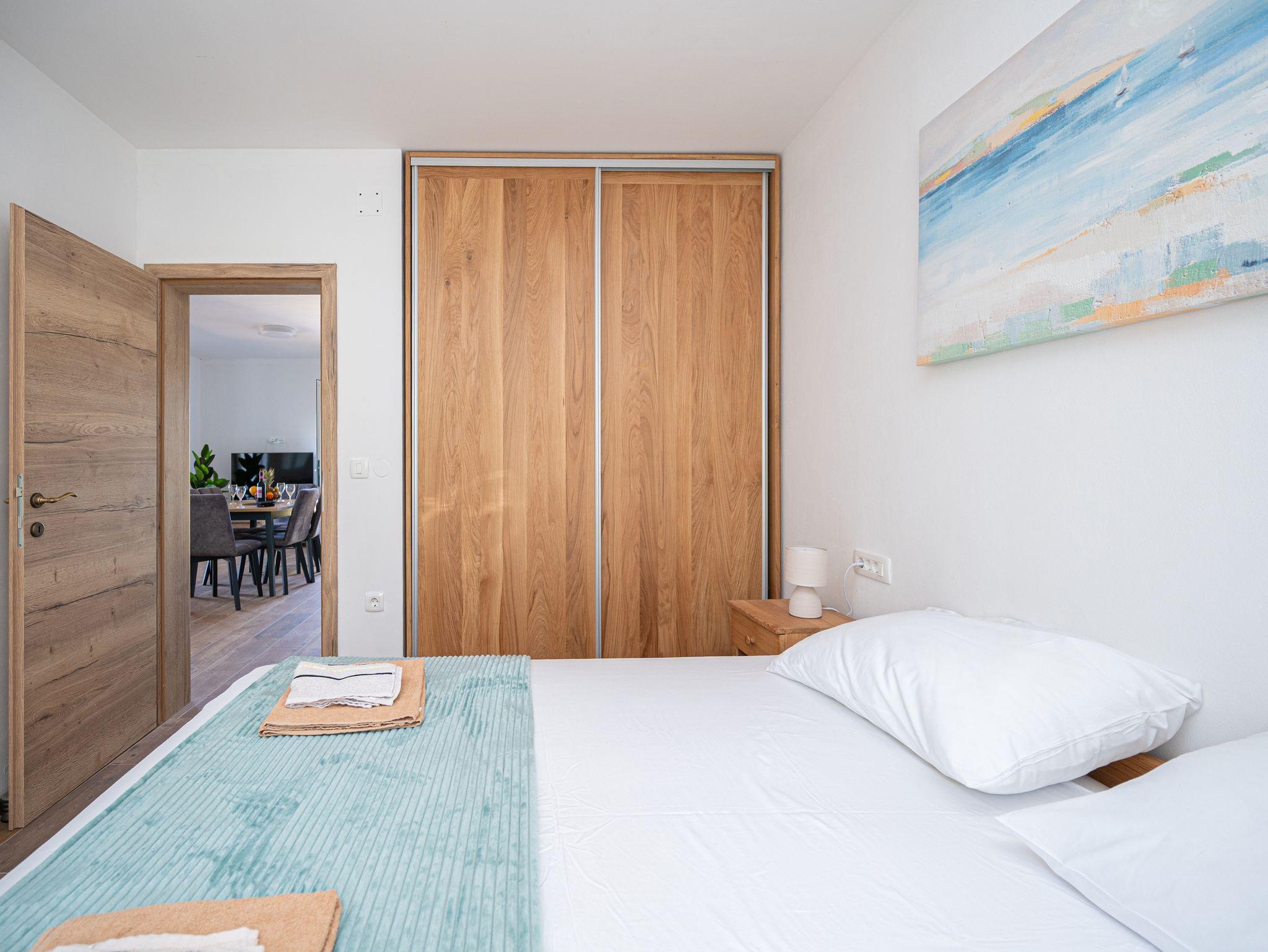 Haus bietet Platz für 8 Gäste. Die Betten sind in Schlafzimmern, die es 3 gibt, und in Wohnzimmer und Esszimmer, innerhalb einer Gesamtfläche von 76m2, angeordnet. Die Gäste haben eine eigene Terrasse zur Verfügung, auf der sie in warmen Sommernächten genießen können. Das Haus bietet Meerblick. Für vollen Genuss und Entspannung gibt es einen privaten Grill für Gäste dieser Unterkunft. In der Unterkunftseinheit besteht die Möglichkeit des Mitbringens von Haustieren gegen Aufpreis. Räume der gebuchten Unterkunftseinheit werden nicht in eine Ganze verbunden. IM PREIS INBEGRIFFEN: Kurtaxe, Endreinigung, Klimatisierung, Parkplatz, Internet, Bootsanlegeplatz, Föhn, Liegestühle. UNVERBINDLICHE ZUSÄTZLICHE KOSTEN: Boot (50,00 € pro Nacht), Haustiere (10,00 € pro Nacht). Die Verfügbarkeit zusätzlicher Dienstleistungen in Ihrem reservierten Termin und die Preise derselben (falls nicht aufgeführt) müssen im Voraus überprüft werden. Zusätzliche Dienstleistungen die in der Zahlungsaufforderung nicht aufgeführt sind werden direkt beim Vermieter bezahlt, angenommen der Gast nutzt auch diese.