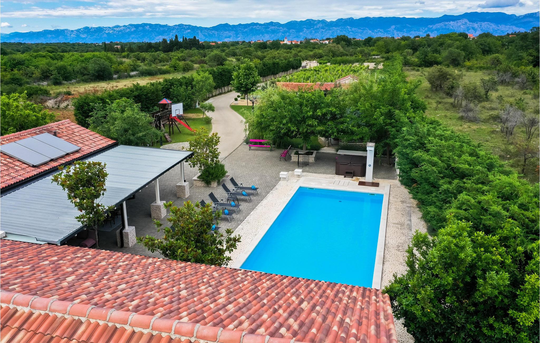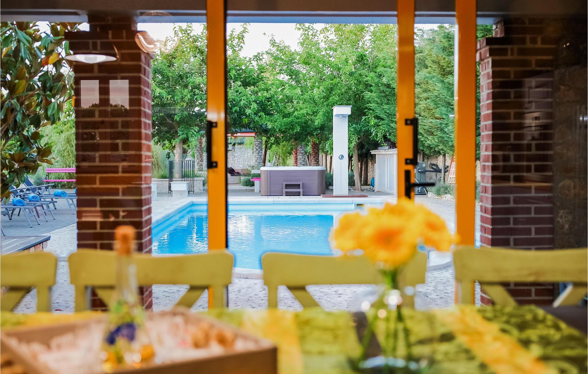 Tilbring en uforglemmelig ferie i dette rummelige feriehus med pool og spabad. Villa Pequena Perla ligger i den magiske dalmatiske landsby Poljica og tilbyder rigelig plads til en hyggelig ferie med venner eller familie. Den rustikke og hyggelige atmosfære skjuler luksuriøse, moderne faciliteter. Fremtryll lækre måltider i det rummelige køkken med venner og nyd dem i en hyggelig atmosfære. Saml jer til harmoniske spilleaftener eller fordyb jer i en spændende bog på jeres yndlingssted. Takket være den rolige beliggenhed væk fra travlheden kan I også nyde absolut privatliv i det atmosfæriske udendørsområde. Tag en afslappende svømmetur i den store pool om morgenen, genoplad batterierne på liggestolen, og lad børnene have det sjovt med de dejlige legeområder. Snak i den hyggelige lounge over en dalmatisk vin fra vinkælderen, slap af i spabadet, og forfin jeres grillretter med friske grøntsager fra haven. Gå gennem de charmerende gamle gader i Nin, besøg verdens mindste katedral, og prøv dalmatiske specialiteter i en traditionel taverna. Svøm på familievenlige sandstrande eller slap af i det berømte helbredende mudder. Bliv fortryllet af Havorglet og "Hilsen til solen" i Zadar, tag en bådtur til Kornatiøerne, vandre gennem spektakulære kløfter i Paklenica Nationalpark eller se vandfaldene i Krka Nationalpark.