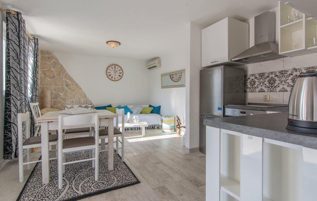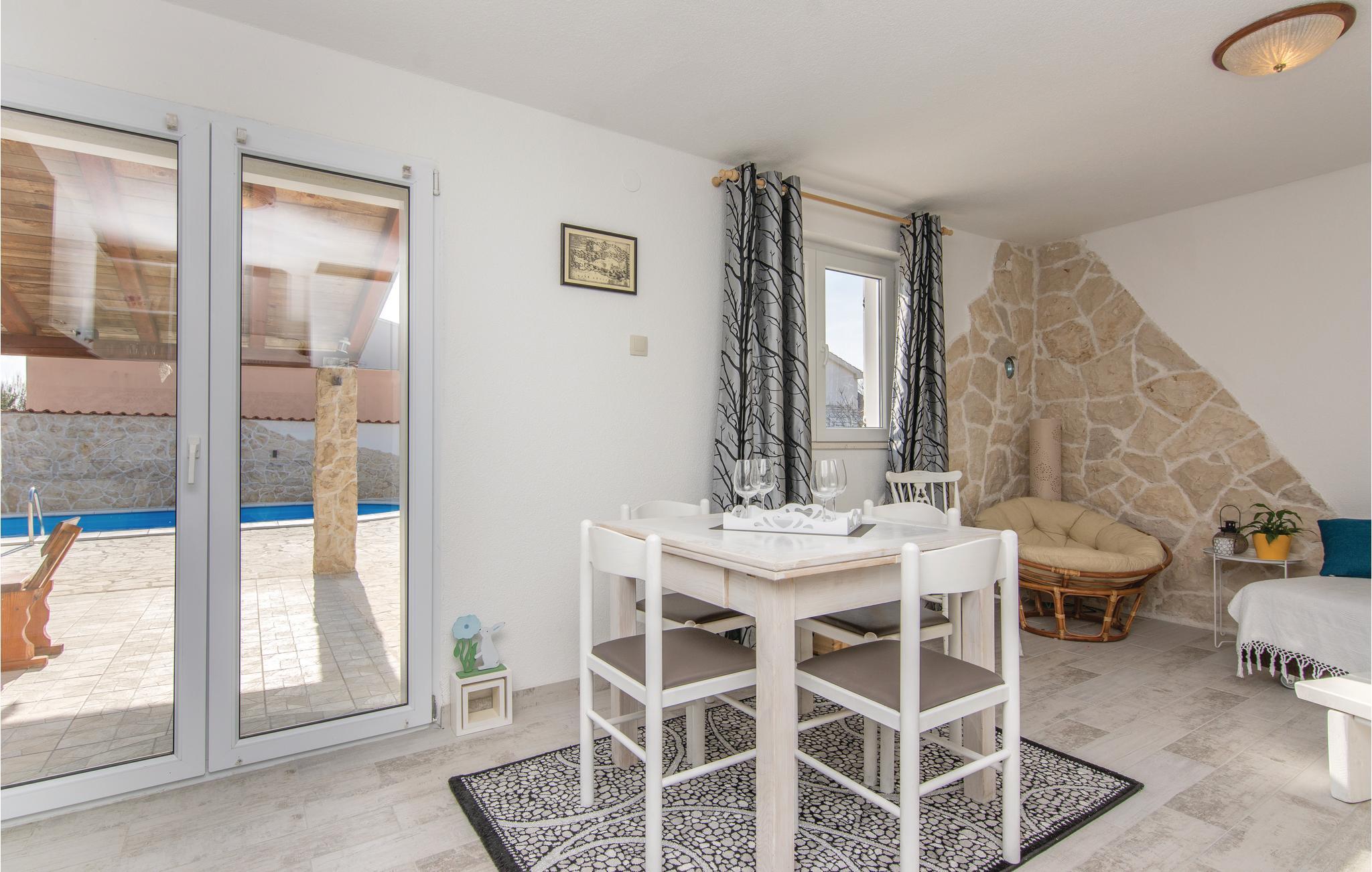 Denne lille og attraktive ferieby, er som skabt til familieferie som I kan holde i dette smukke og praktisk indrettede feriehus. I stueetagen er der en stue, et køkken og et badeværelse, mens der på første sal er to soveværelser. På den store terrasse med udsigt over poolen er det godt at nyde morgenmaden eller bare slappe af med en god bog, i løbet af dagen. Poolen indbyder til vandsjov og forfriskende svømmeture. Ved Sabunika og Privlaka ligger der mange flade sandstrande ud til lavt vand, mest for foden af en bakke. For dem, der søger uberørt natur og ro, anbefaler vi øen Vir med sine afsondrede bugter forbundet med en bro til fastlandet. Besøg også den eventyrlige by Zadar, 22 km væk, som er kendt for sin rige kulturarv og fantastiske solnedgange.