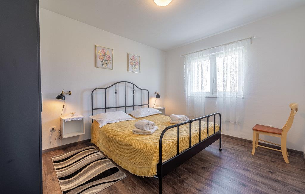 Velkommen til denne ferielejlighed, som har plads til en lille familie, da der er soveværelse, badeværelse og en stue med køkken. To af sengene står i stuen, de to andre i soveværelset, hvor der er dobbeltseng.