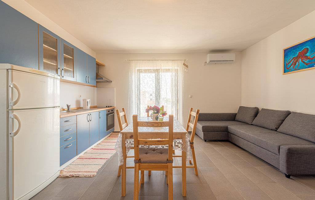 Lejligheden har en ideel beliggenhed, hvis I vil holde en ferie med sol, sand og vand, da der kun er 150 m til sandstranden og havet. Butikker og en restaurant kan også nemt nås til fods. At sidde på terrassen om aftenen, spise sammen og nyde det ideelle klima, det er indbegrebet af ferie!