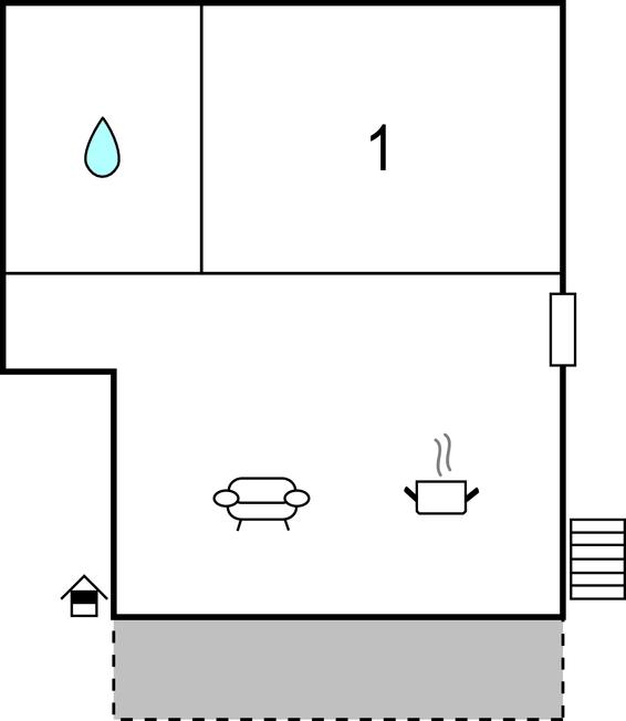 Opholdsstue/køkken 20m2 - 2 Sovepladser. (Sofa, madras eller lignende).
